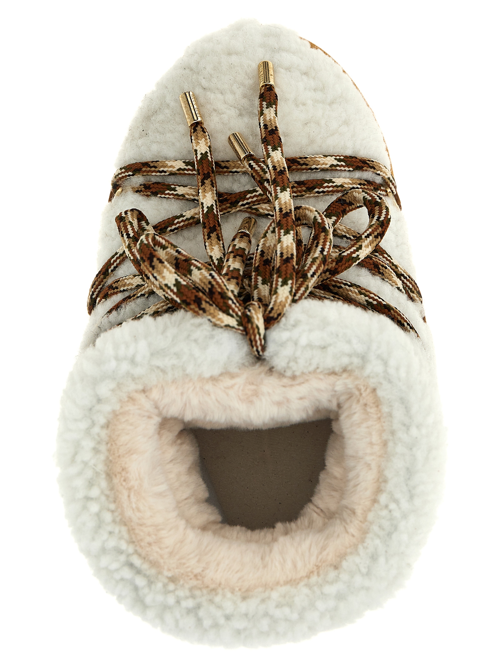 'Lab69 Icon' suede and shearling ankle boots, ambidextrous model, multicolored tubular crossed laces, non-slip rubber tread.