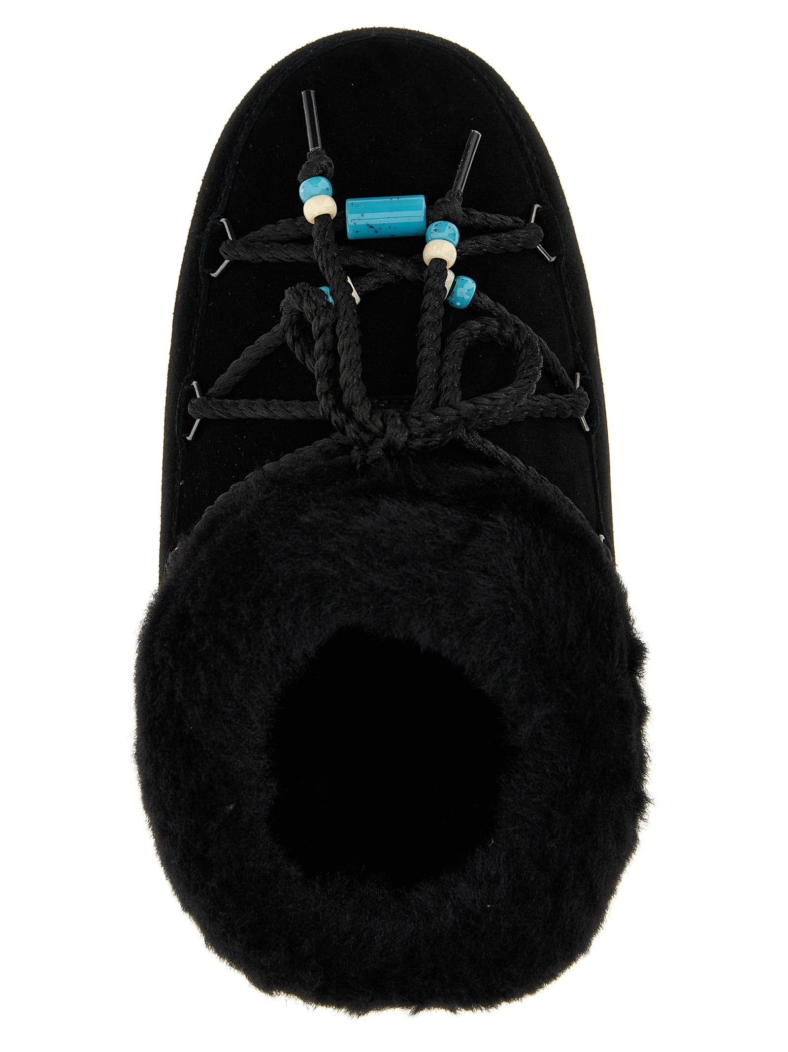 'Mule suede beads' suede ankle boots with fur insert, ambidextrous model, overlapping tubular laces with beads, non-slip rubber tread.Характеристики товара