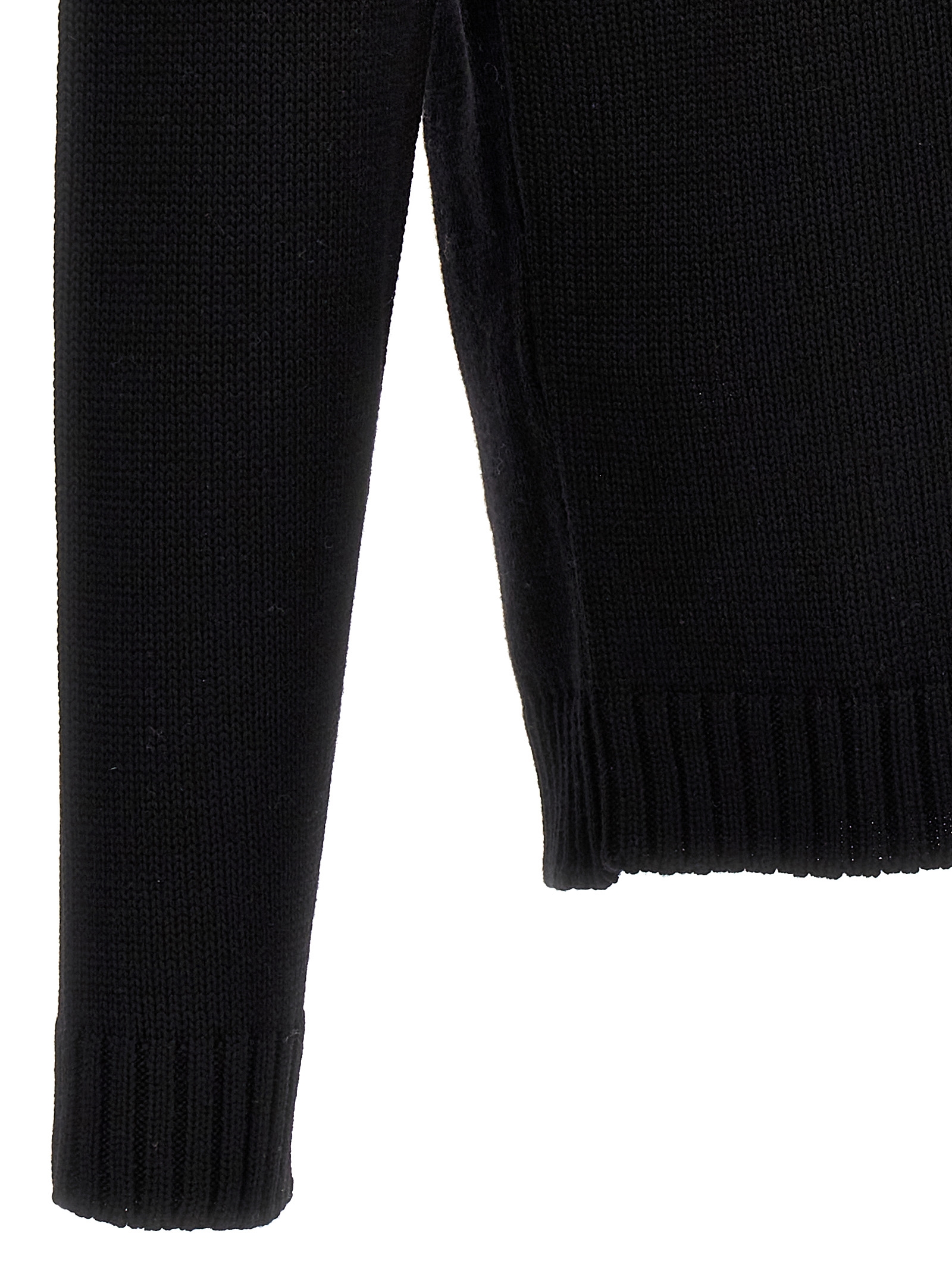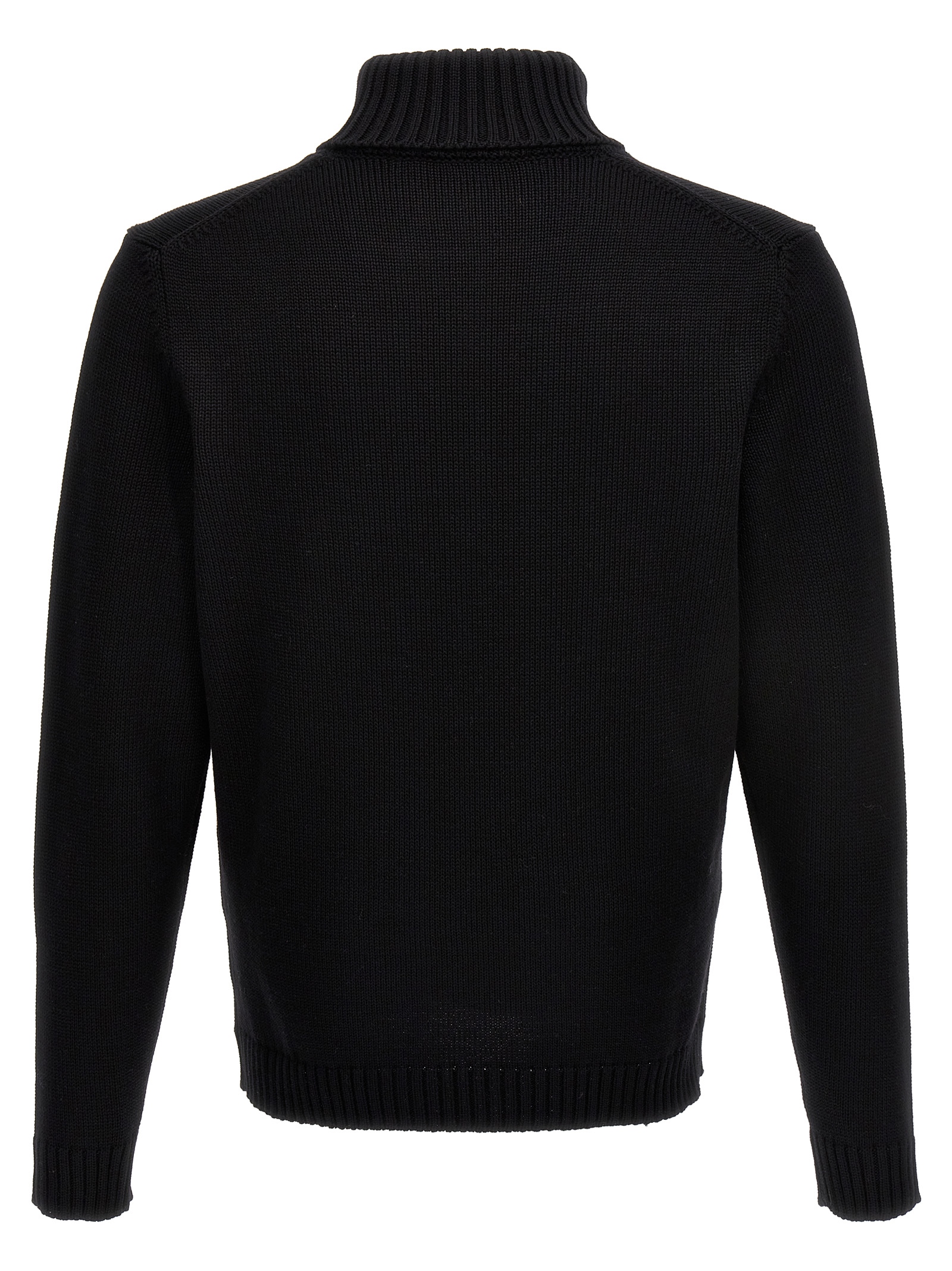 Wool sweater with turtleneck turned-up, long sleeves with cuffs.