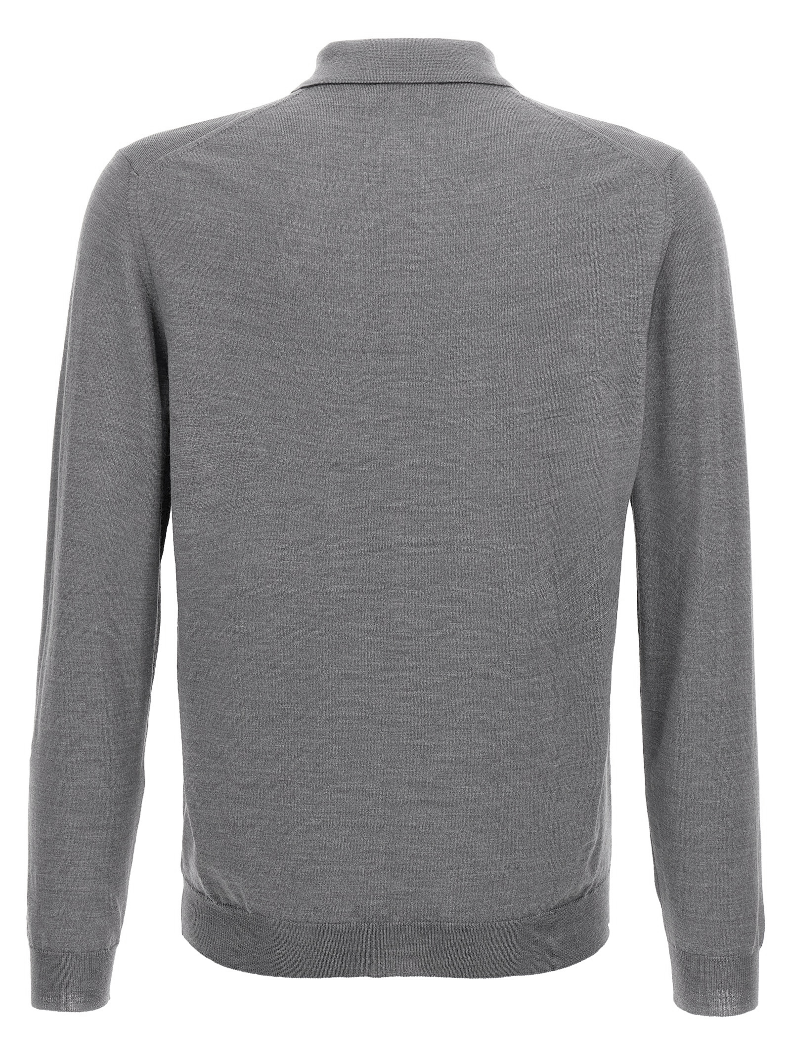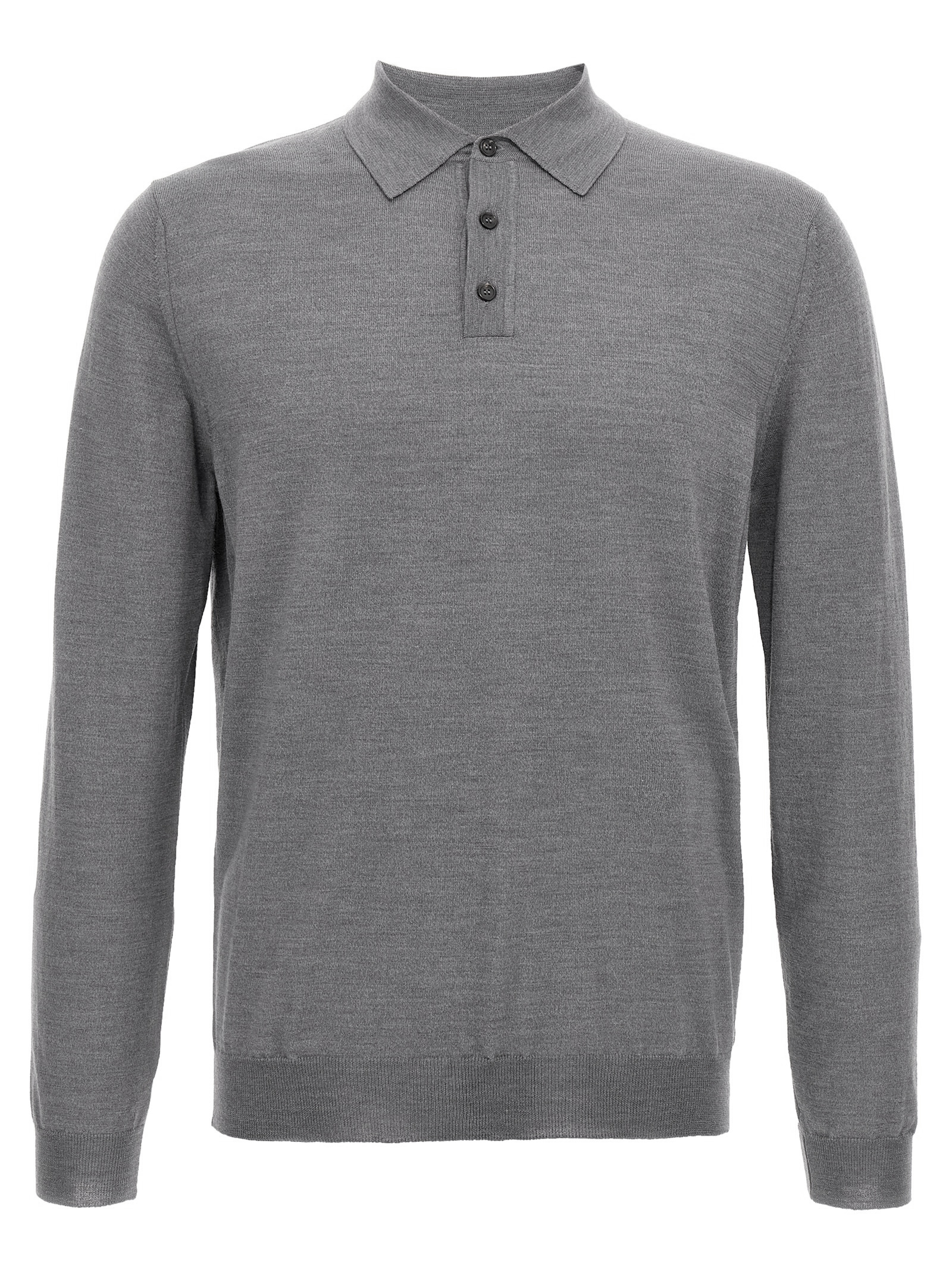Flexwool wool polo shirt with collar and buttons, long cuffed sleeves.