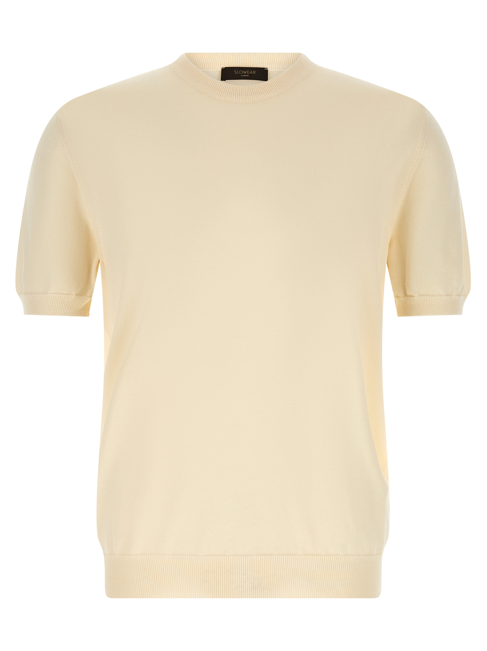 Cotton sweater, crew neck, short sleeves with cuffs, band on the hem.