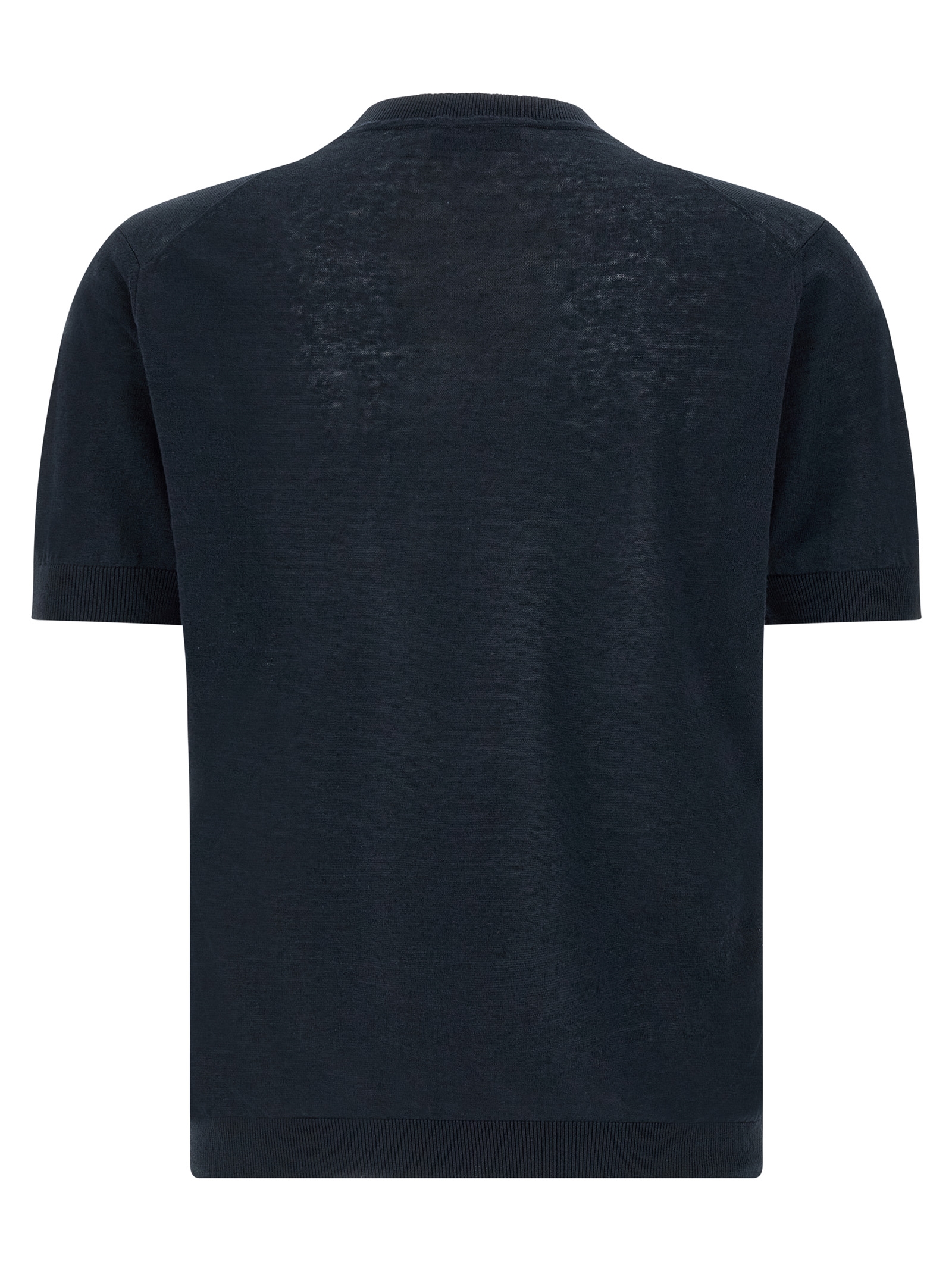 Linen and cotton blend 'Ice Lino' sweater, with crewneck, short cuffed sleeves, and headband on the hem.