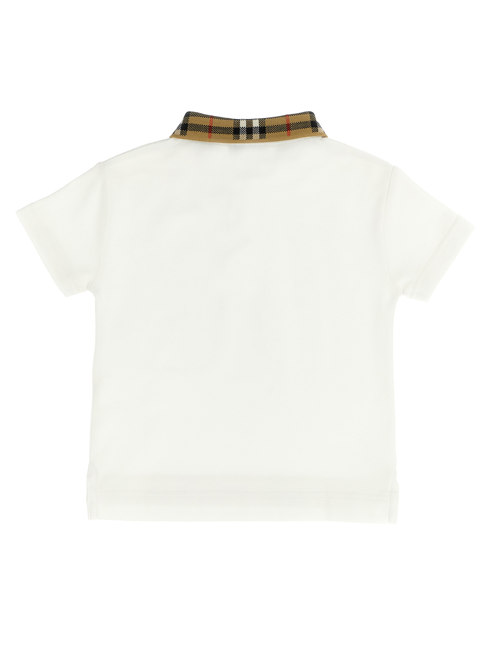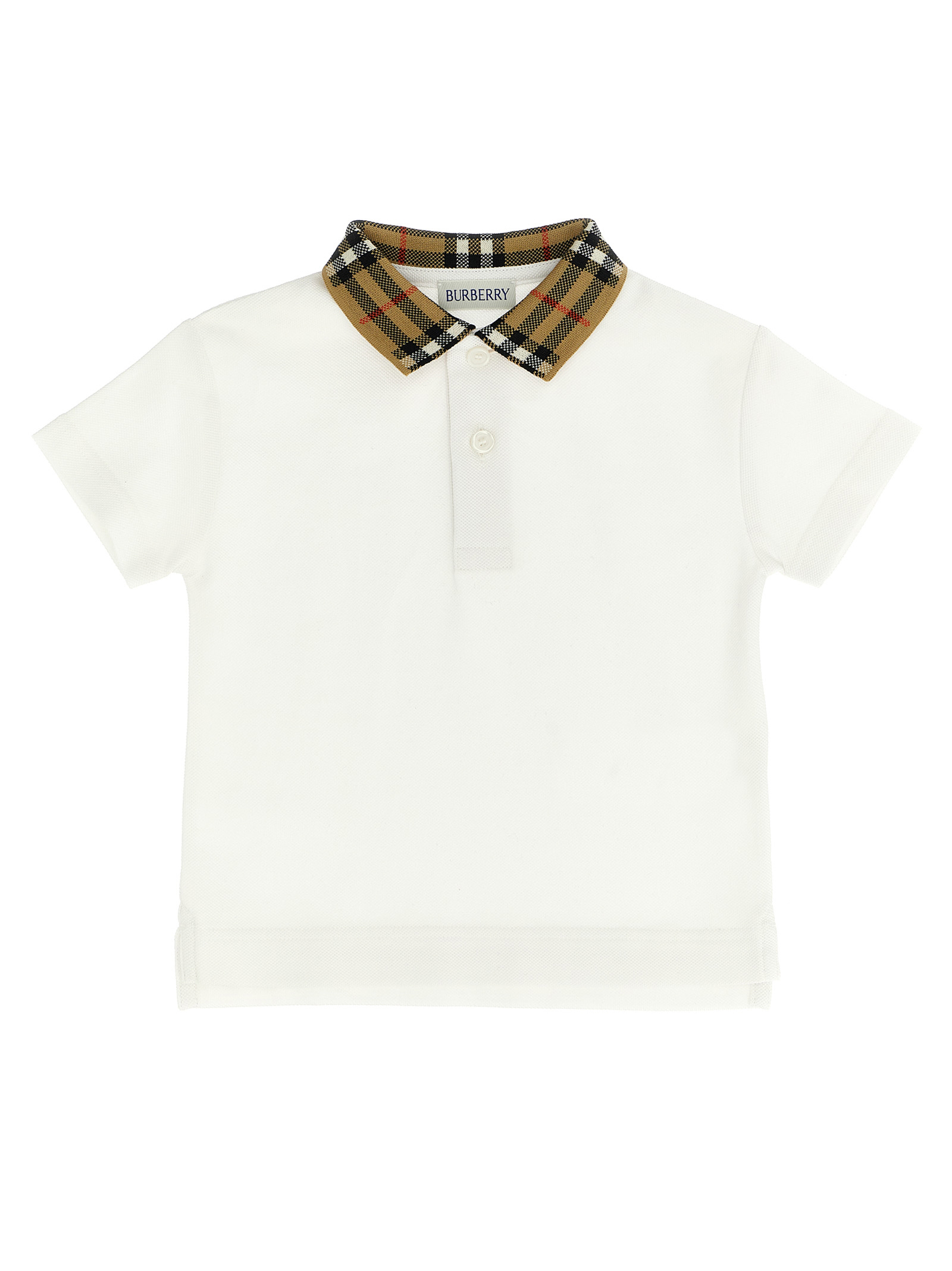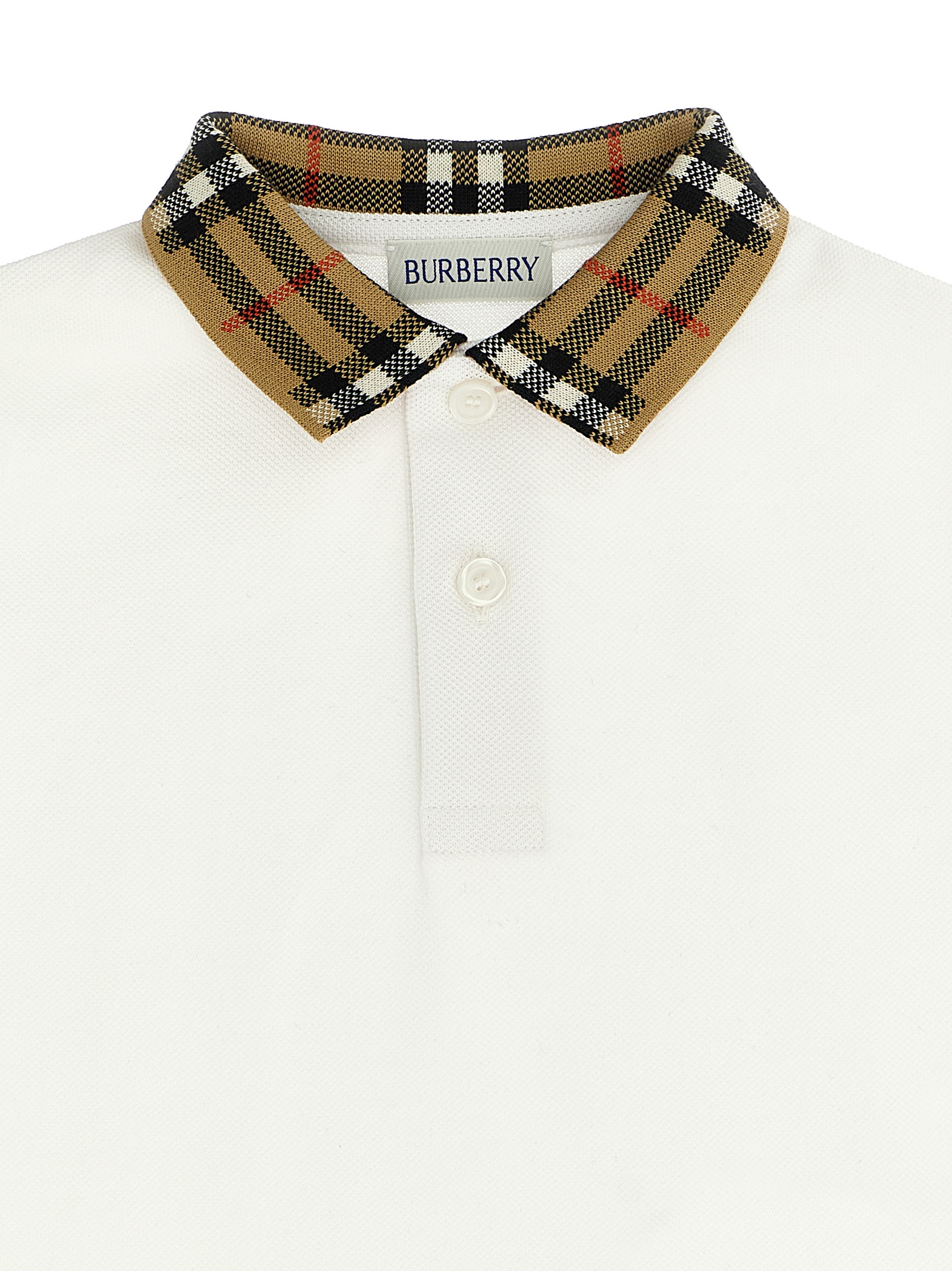 KIDS 'Johane' cotton piqué polo shirt with Burberry Check collar and buttons, short sleeves, asymmetrical hem, side slits.