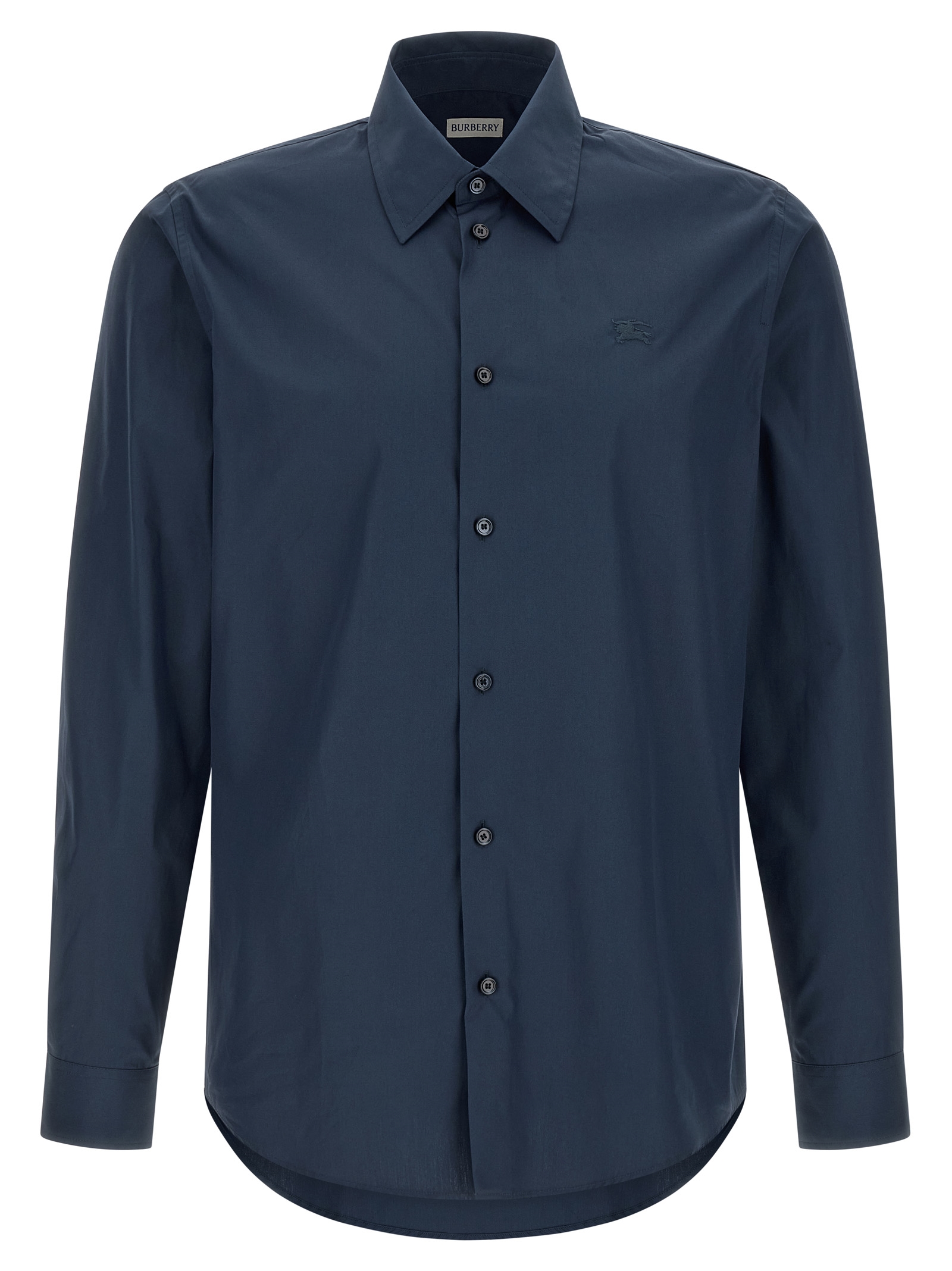 'Sam' cotton poplin shirt with Burberry Check inner details, tone-on-tone 'Equestrian Knight Design' logo embroidery and front button closure, long cuffed sleeves and rounded hem.