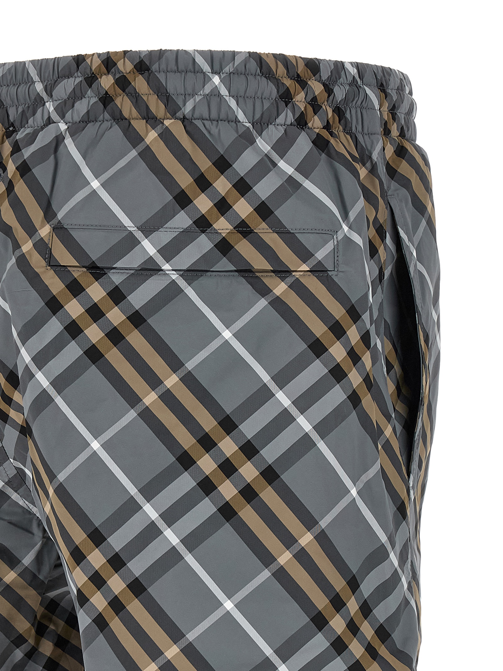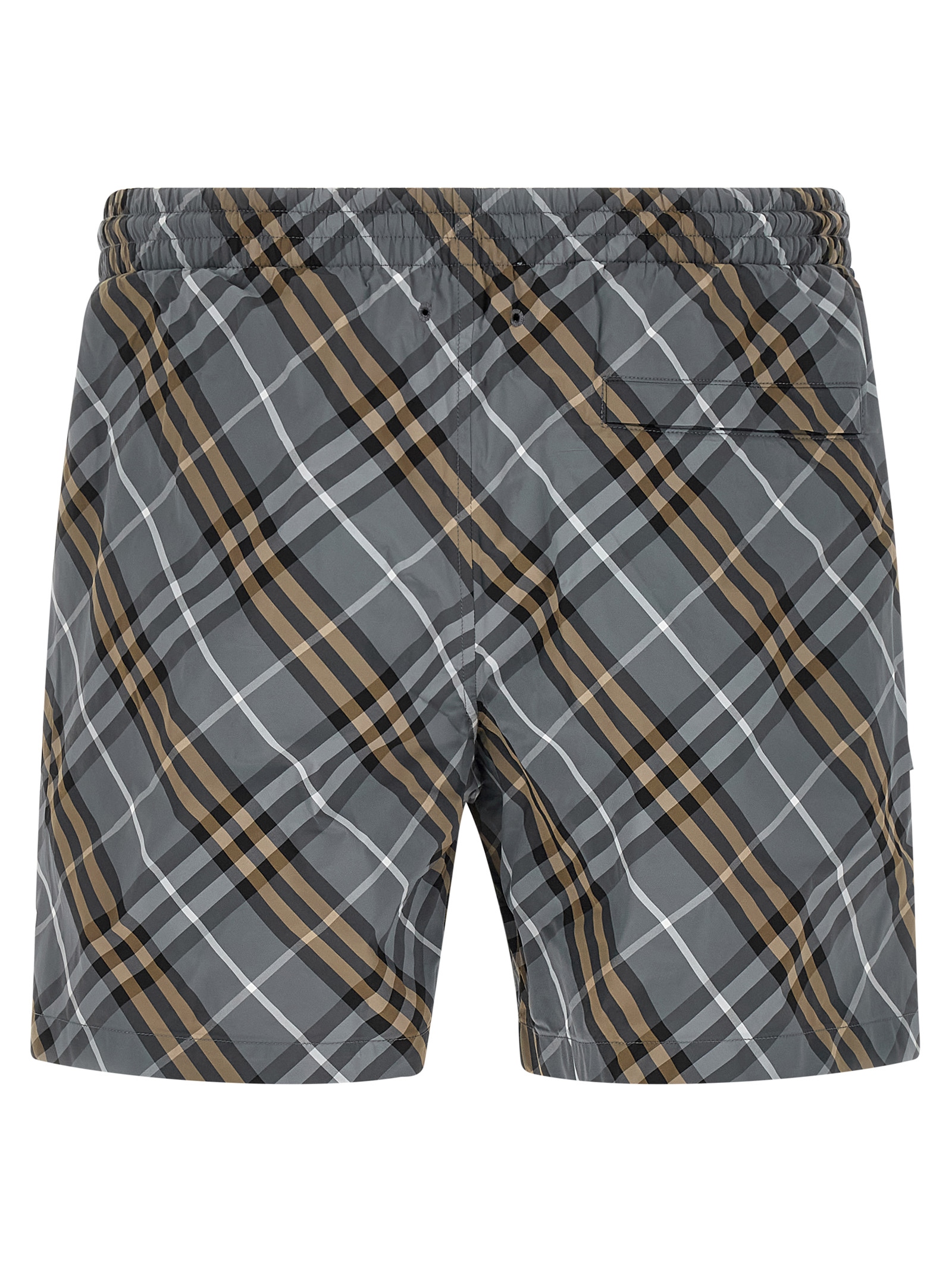 Check-print nylon swimsuit, elastic waistband with adjustable drawstring, logo, side pockets and back zipped pocket, mesh lining.Характеристики товара