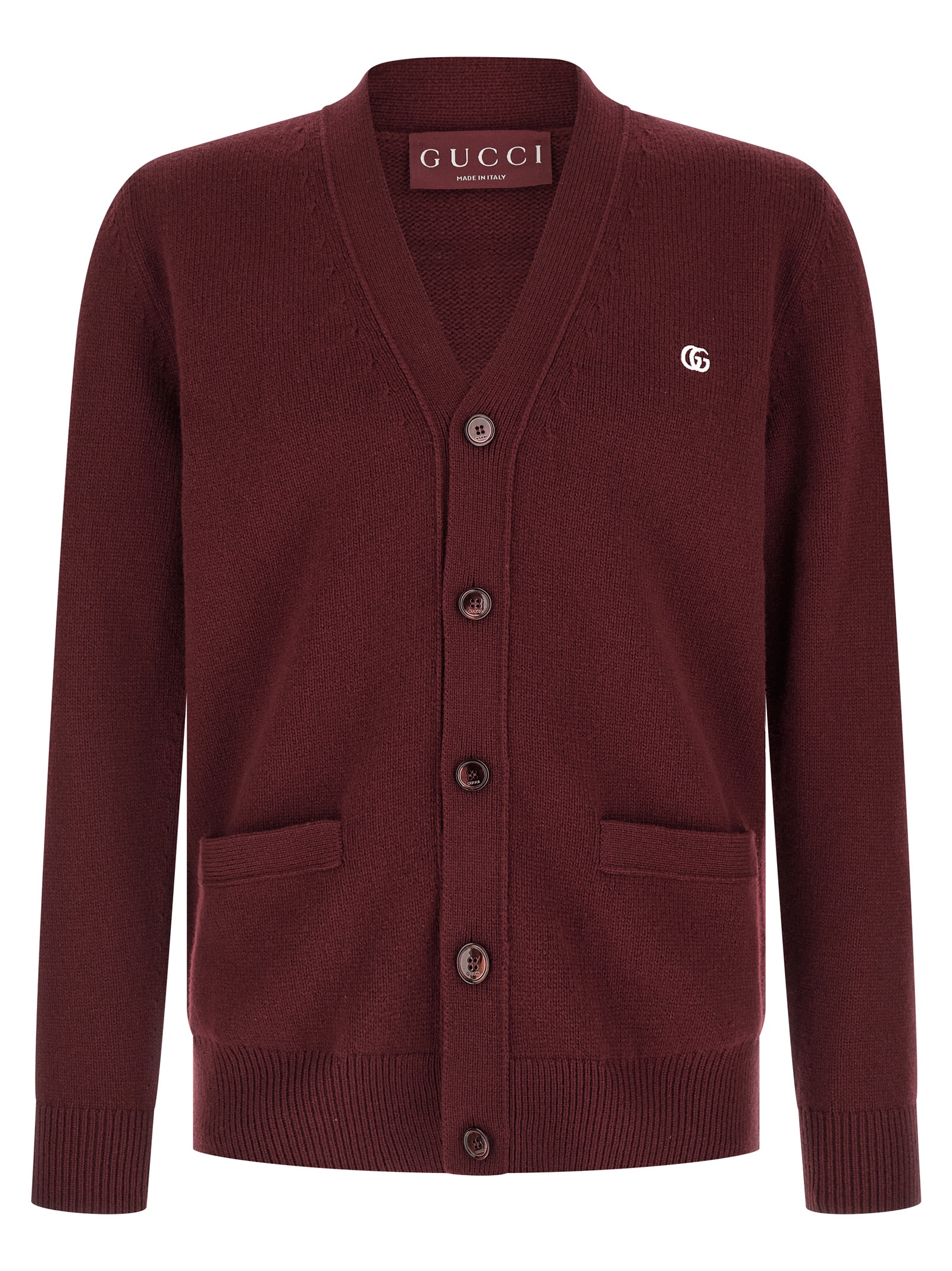 Knitted cashmere sweater with contrast 'Doppia G' embroidery and front button closure, V-neck, pockets, long cuffed sleeves and dropped shoulders.