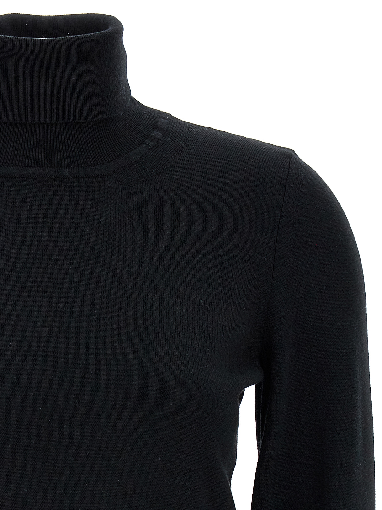 'Enriette' merino wool turtleneck sweater with high neck, long cuffed sleeves.