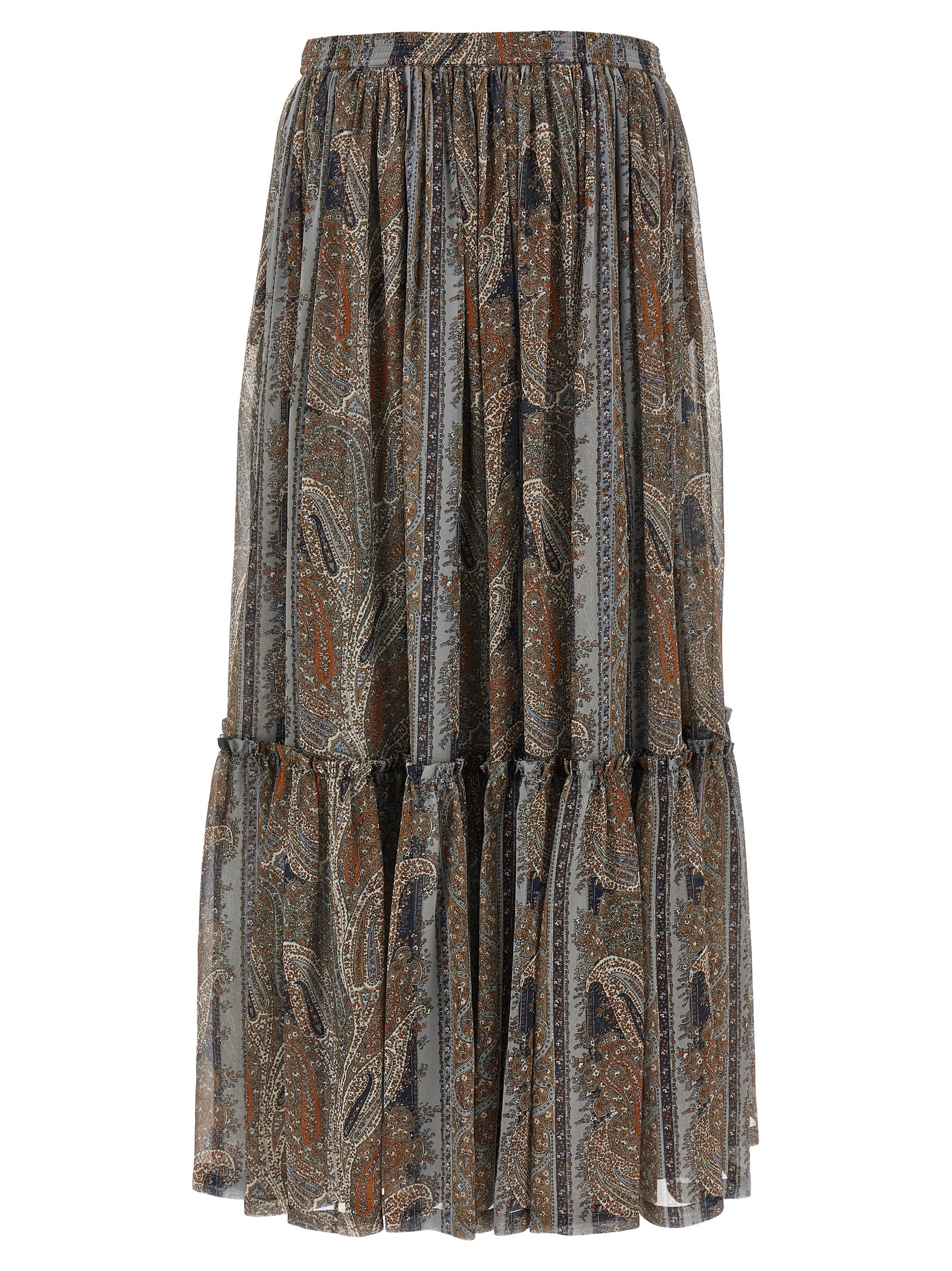Paisley print long skirt in silk, silk georgette underskirt, elastic waistband, pockets.Характеристики товара