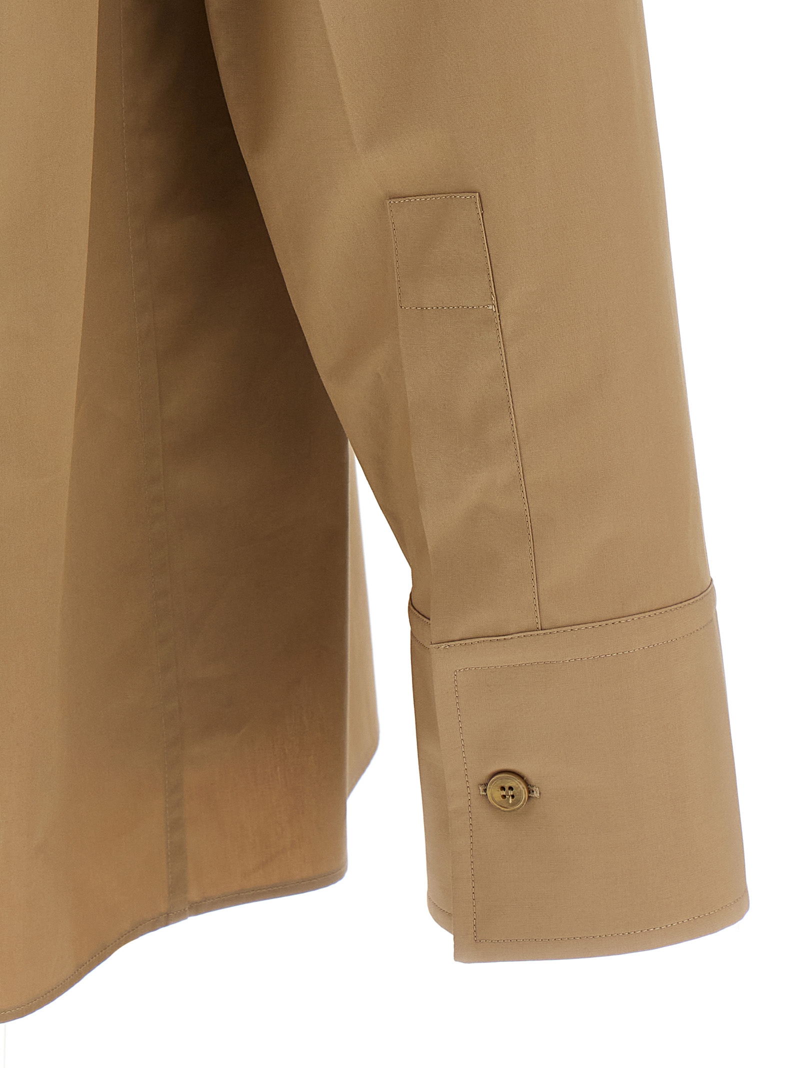 Cotton poplin shirt with embossed front logo, button closure, long cuffed sleeves and dropped shoulders.