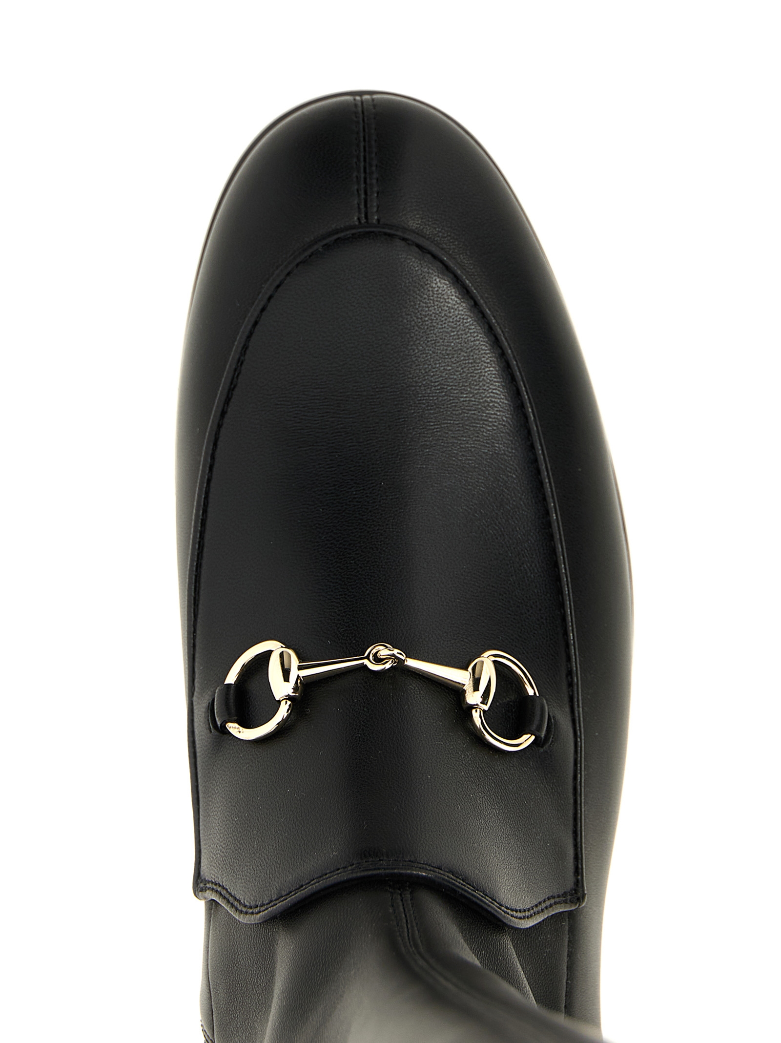 'Gucci Jordaan' stretch leather boots, front metal clamp, side zip closure, leather sole.