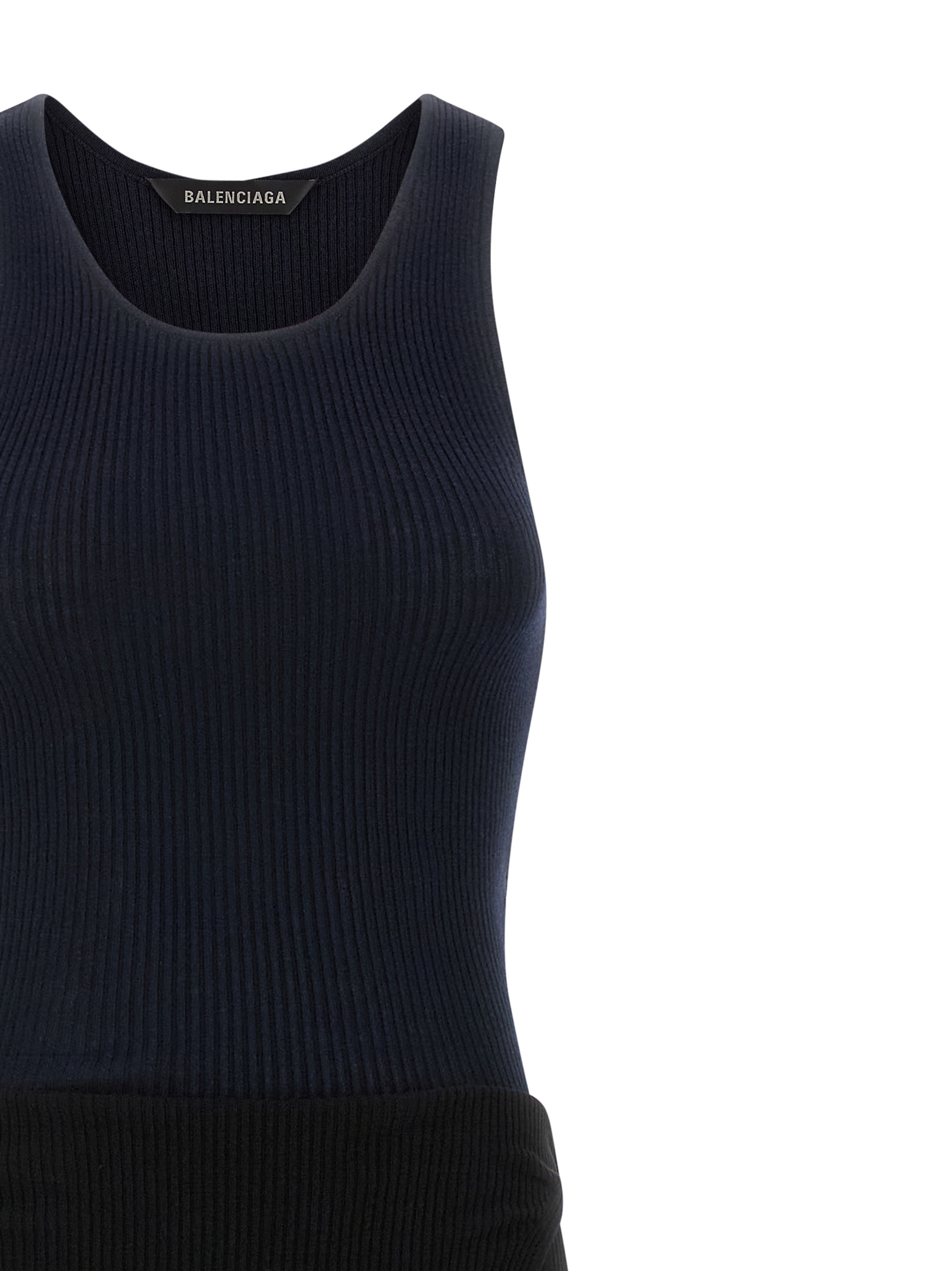 Long 'Upside Down' dress in ribbed stretch cotton knit with layered construction, sleeveless, round neckline.Характеристики товара