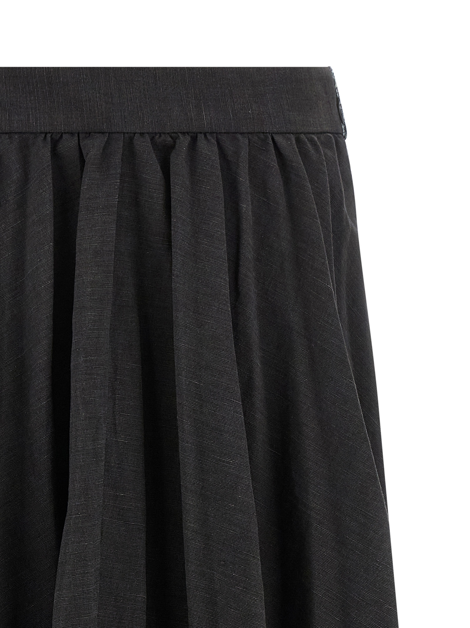 Hybrid Pleated' midi skirt in solid linen with stonewashed pleats and cotton denim, side zip closure, pockets and back logo tag.