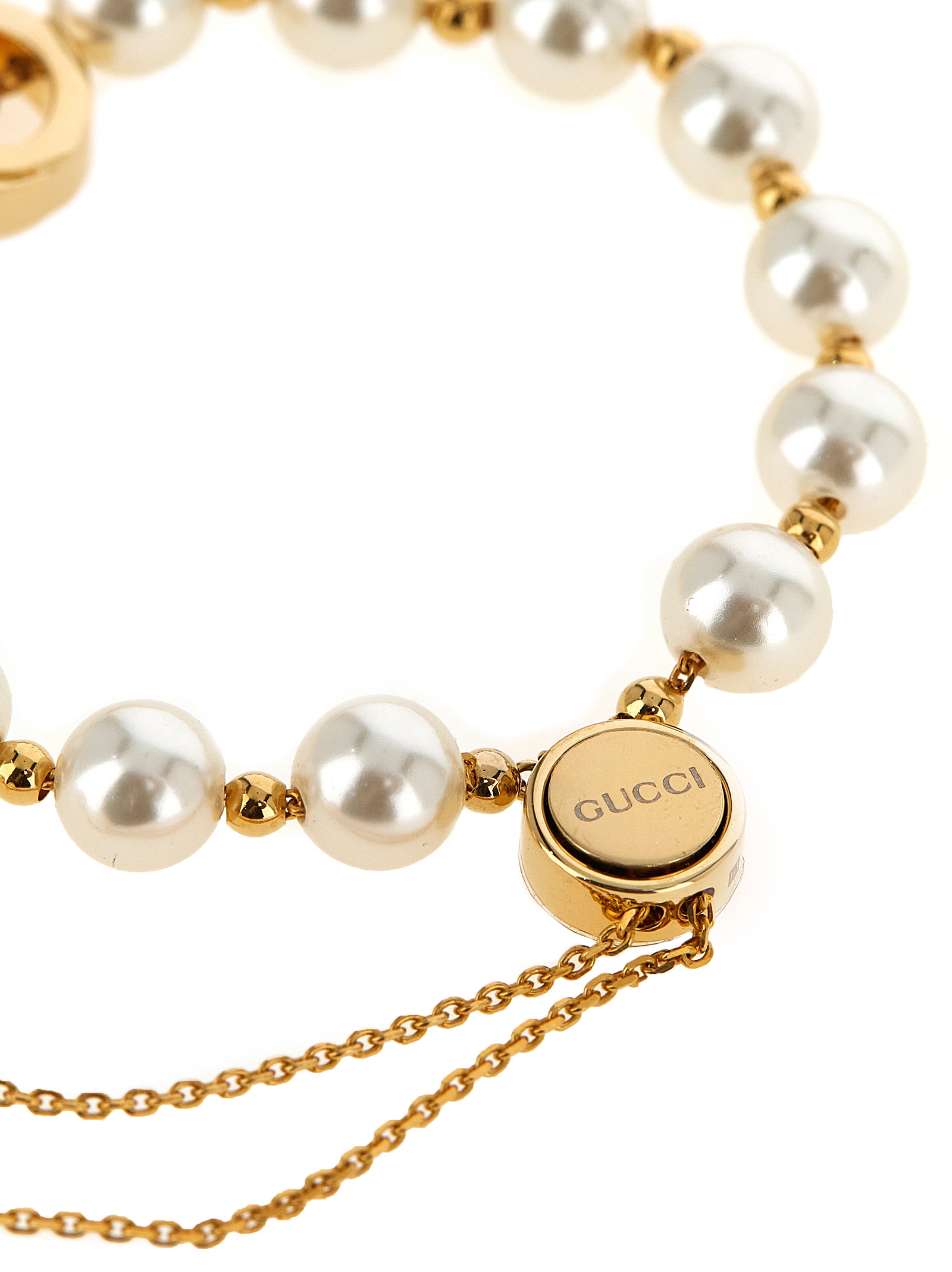 Boule chain 'Gucci Interlocking' bracelet with resin beads and metal cut-out 'Incrocio GG Tondo' bracelet, adjustable sliding closure.