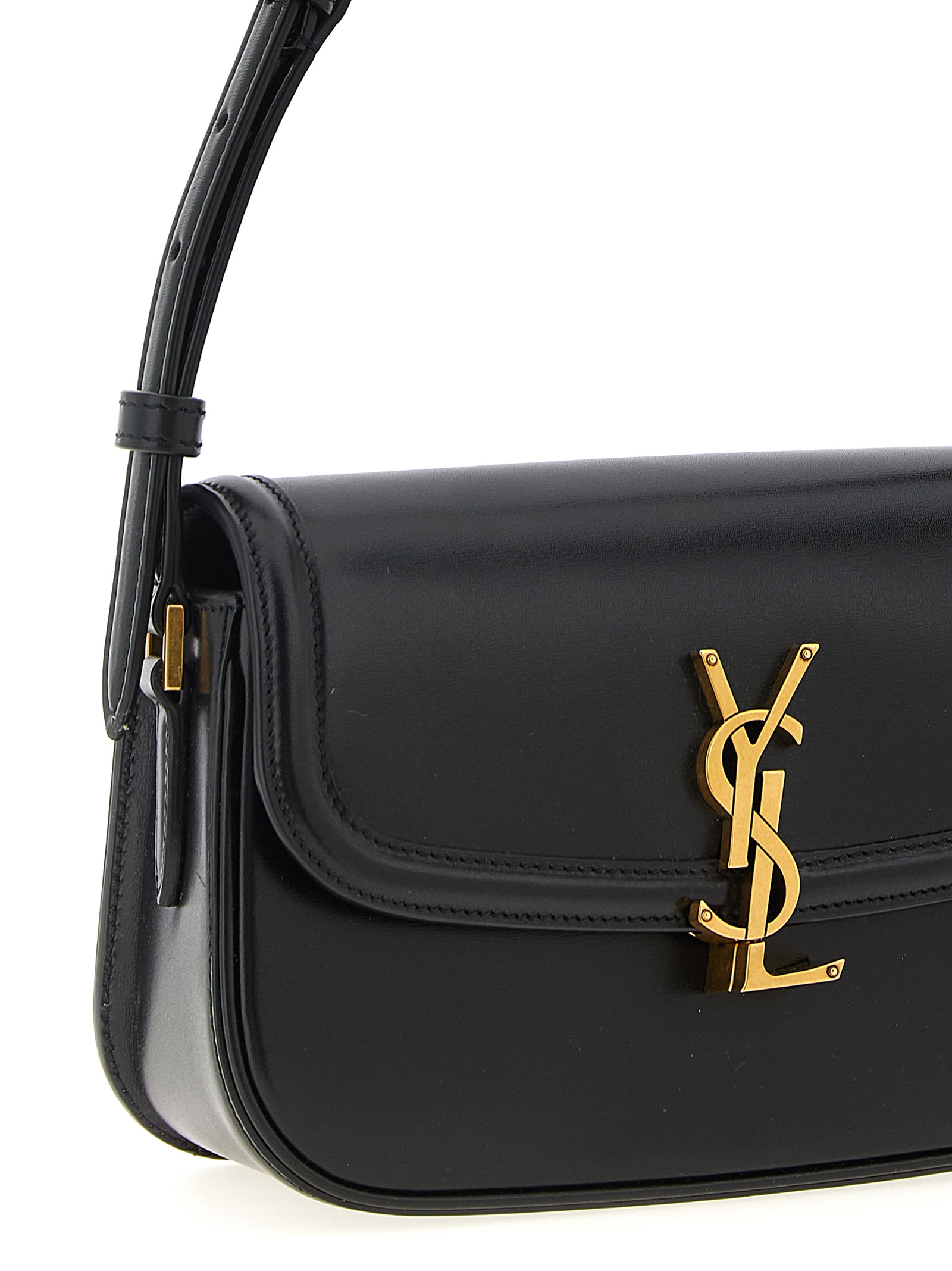 'Solferino' mini leather Box shoulder bag, magnetic flap closure with antiqued effect metallic Cassandre logo, adjustable shoulder strap, back pocket.