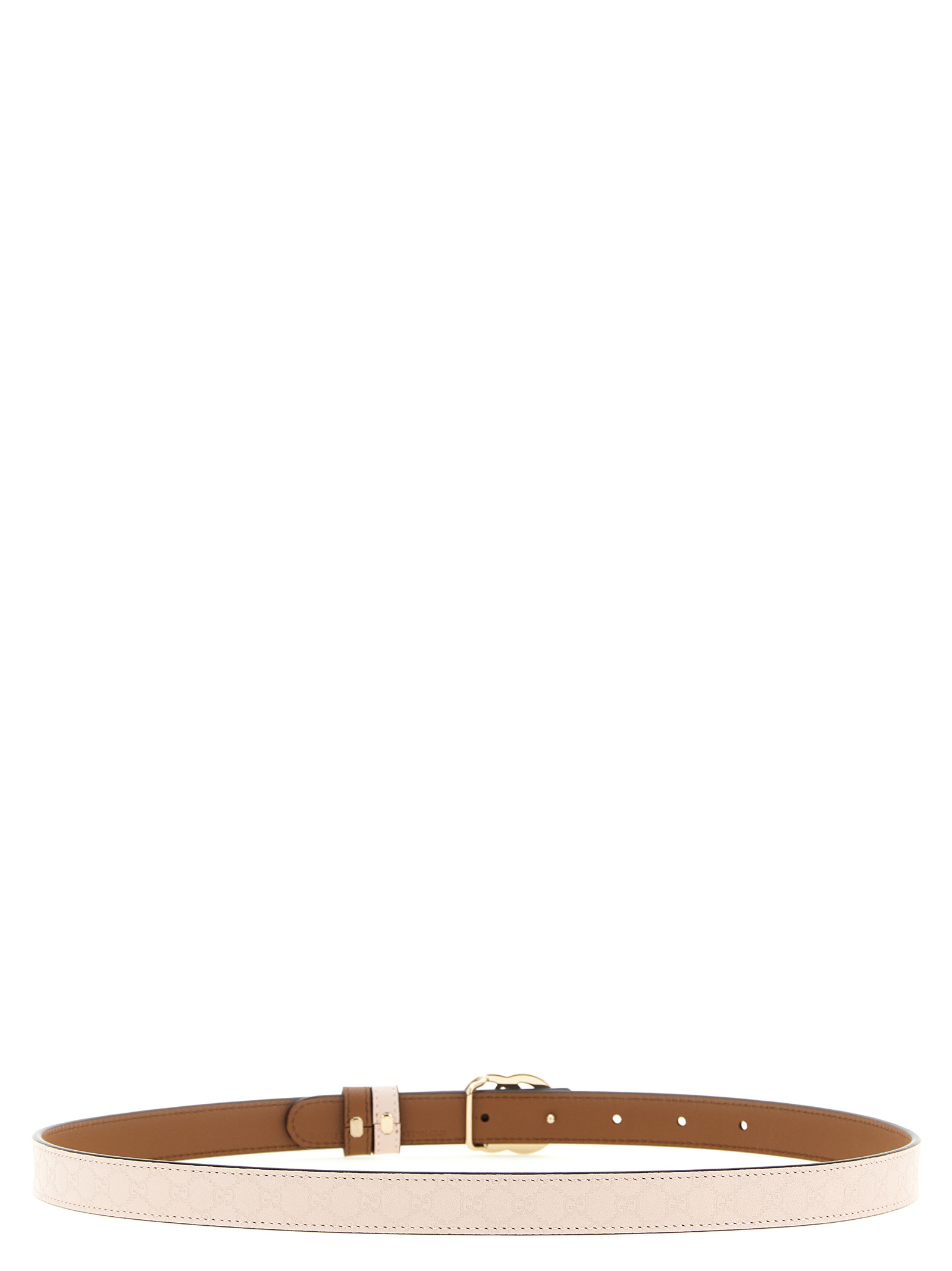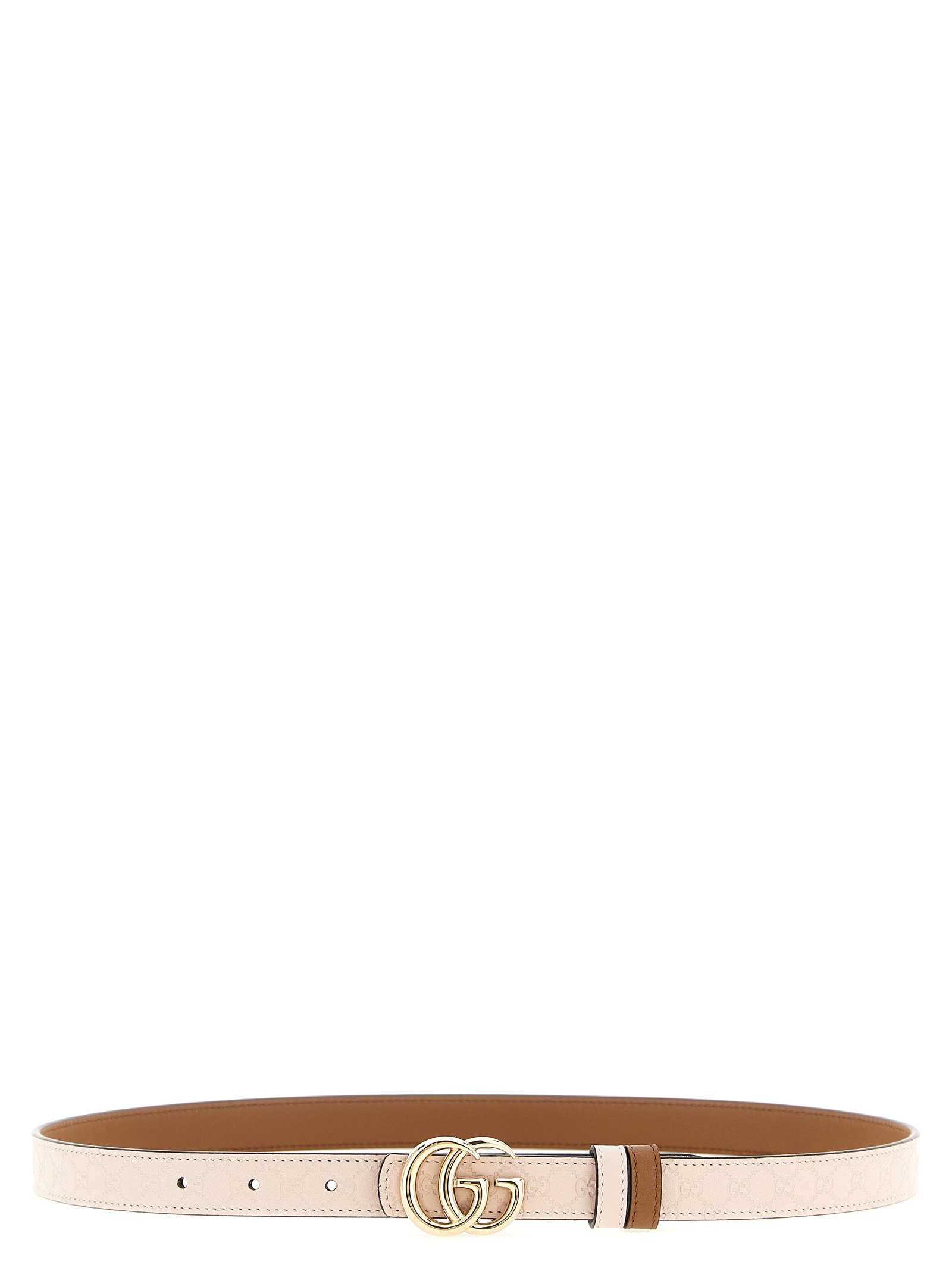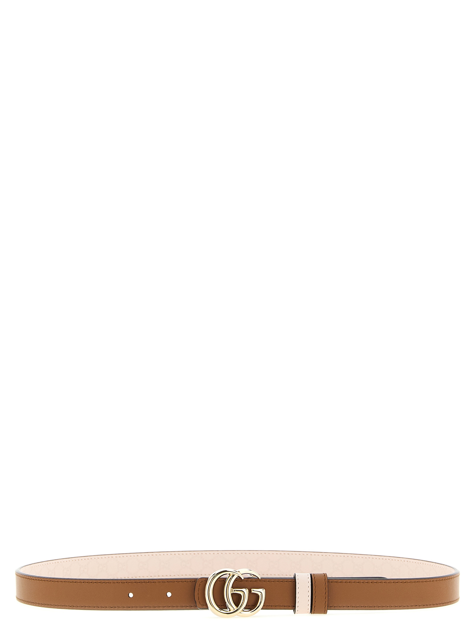 Thin reversible smooth leather belt with embossed GG and smooth lambskin and metal 'GG Marmont' buckle. Side A: smooth leather Side B: smooth leather with embossed GG