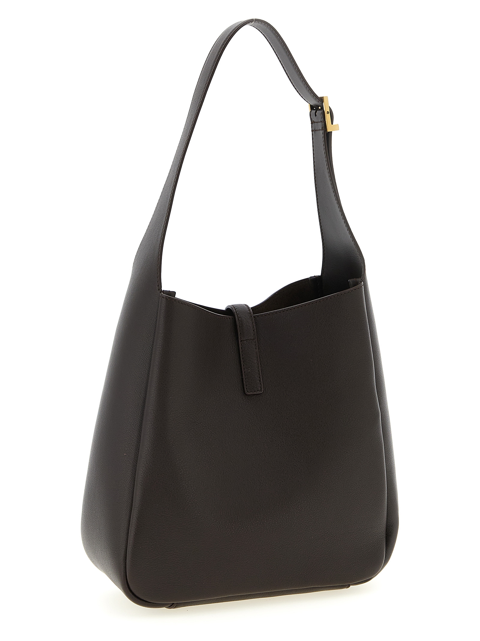 Micro 'Le 5 à 7' shoulder bag in hammered leather, suede lining, adjustable handle, Cassandre metallic logo closure with antique effect interlocking, removable clutch.