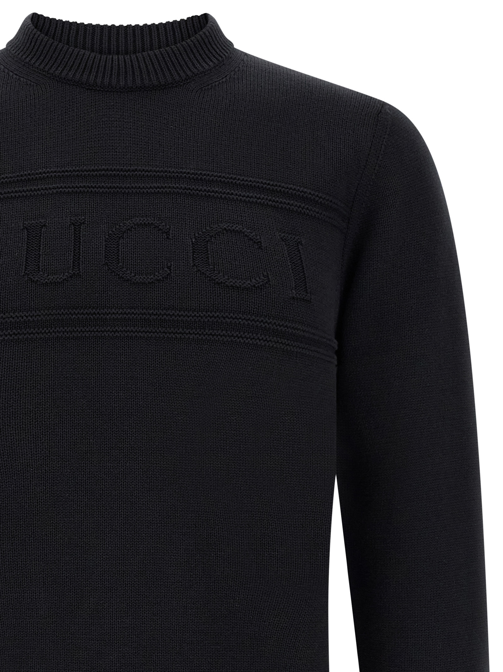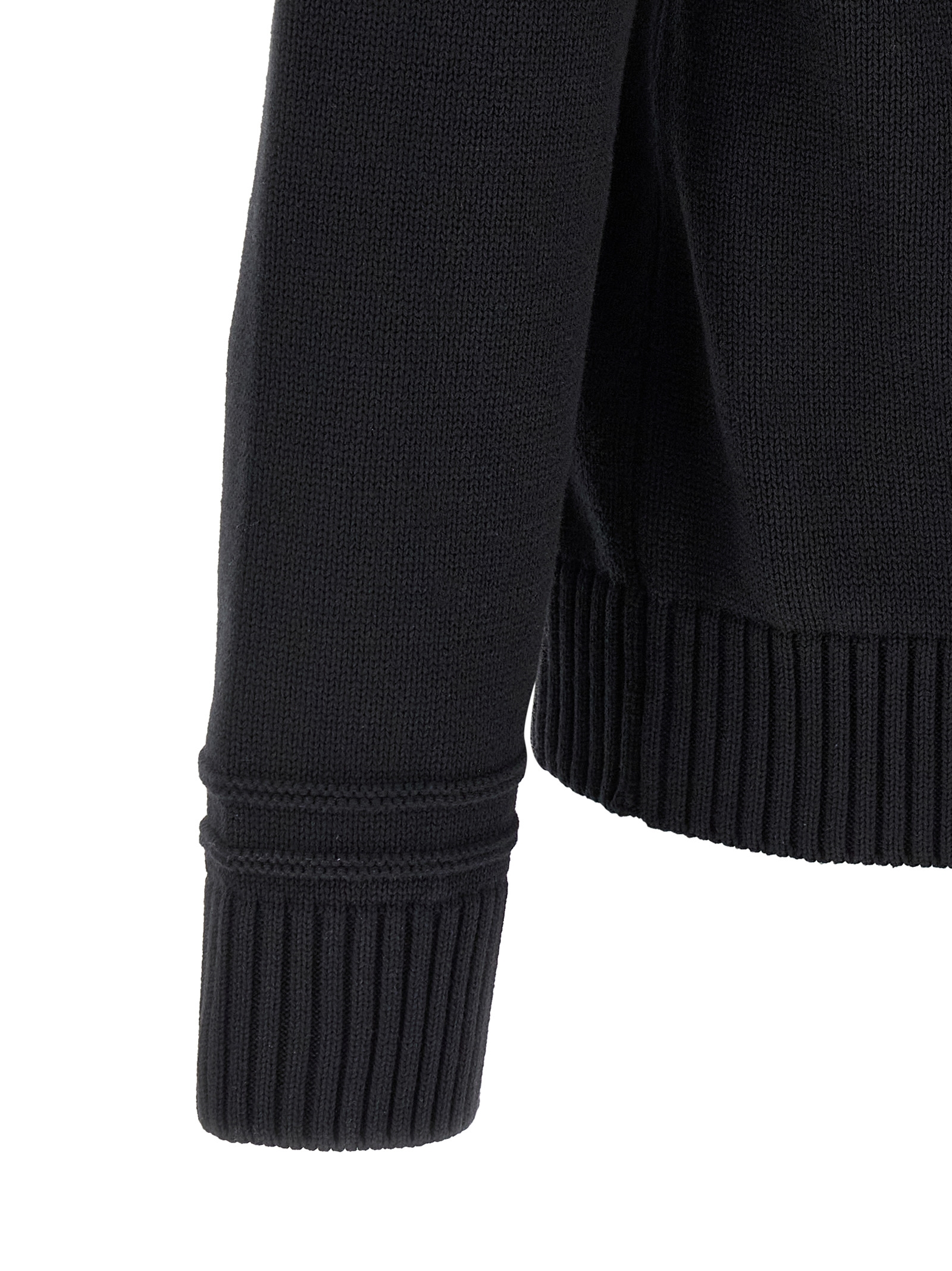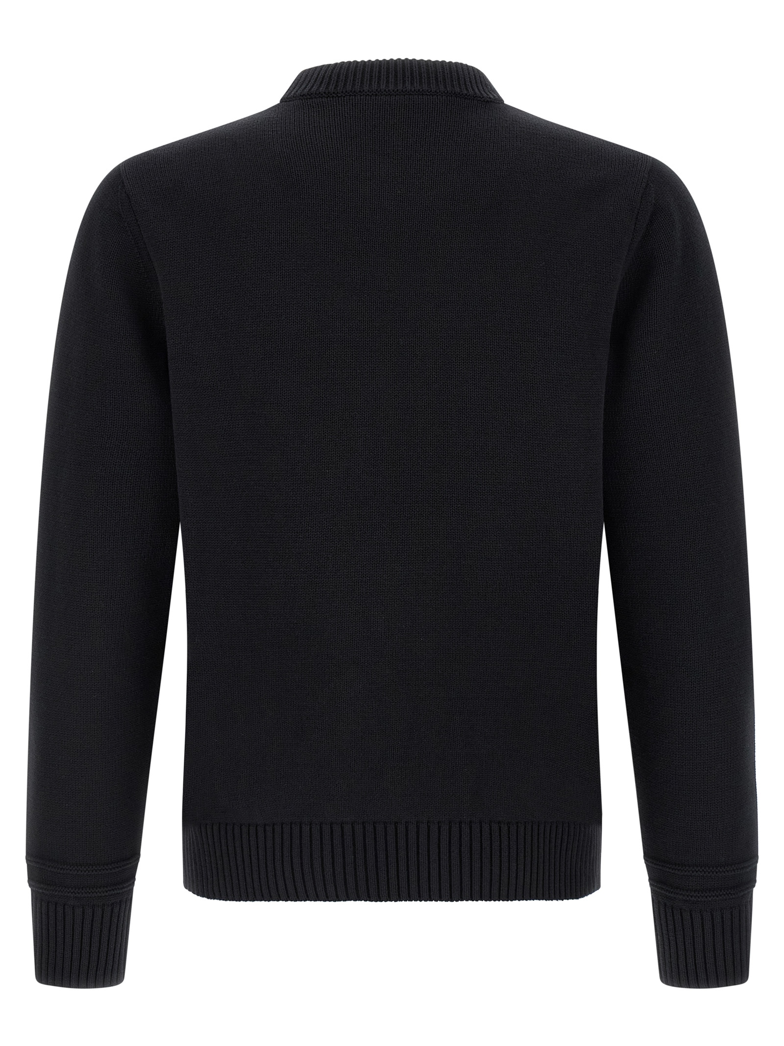 Gucci cotton and wool knit sweater with front knitted intarsia, crew neck, long cuffed sleeves.