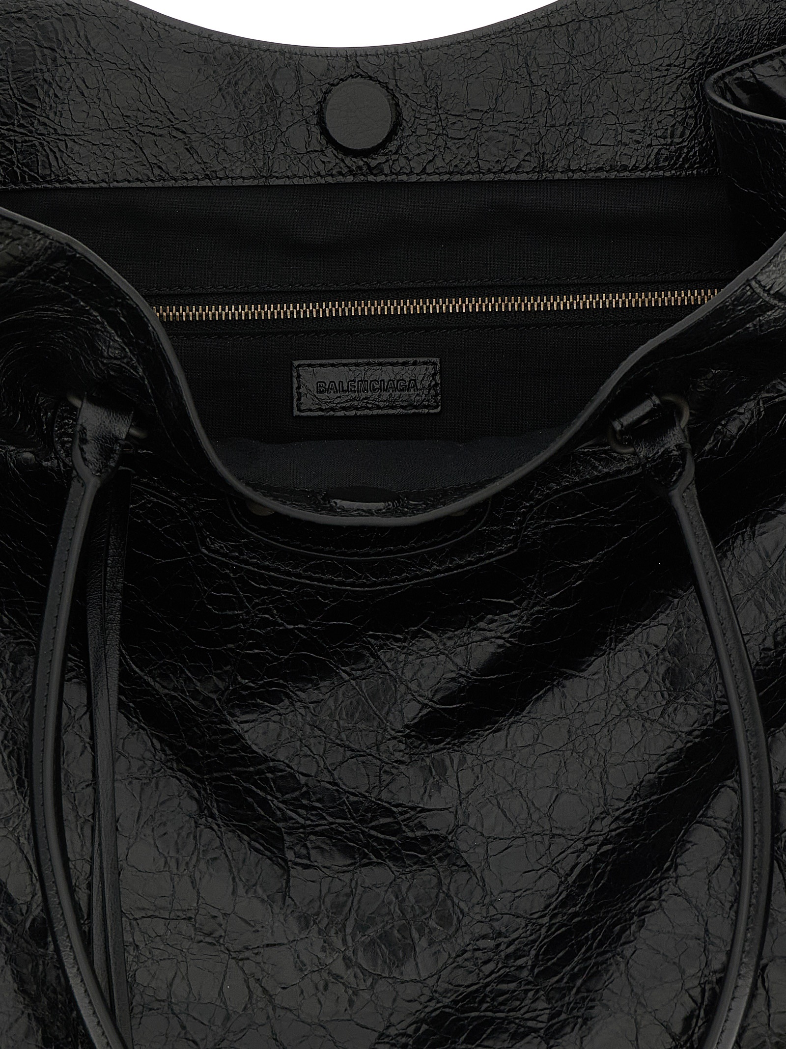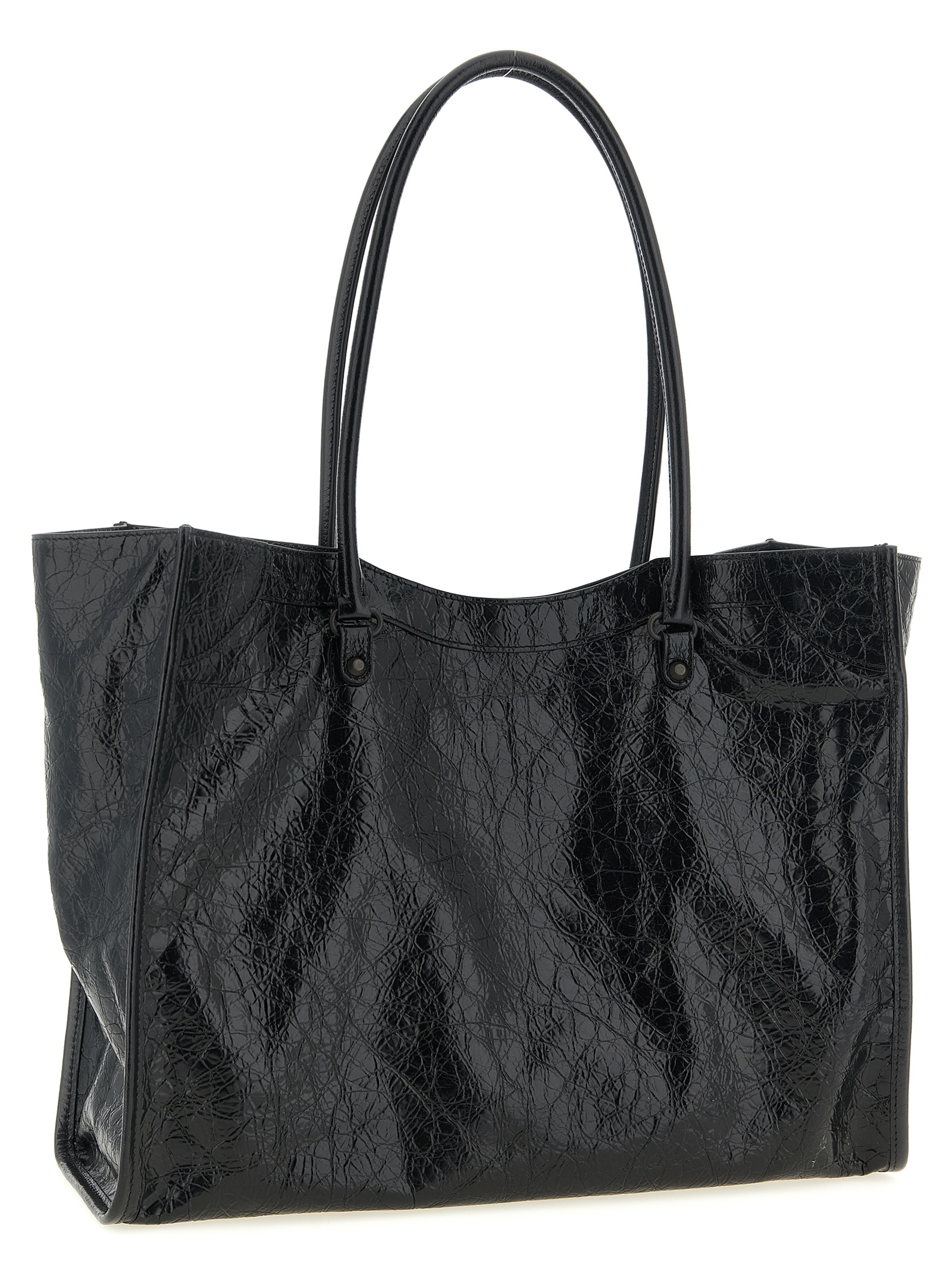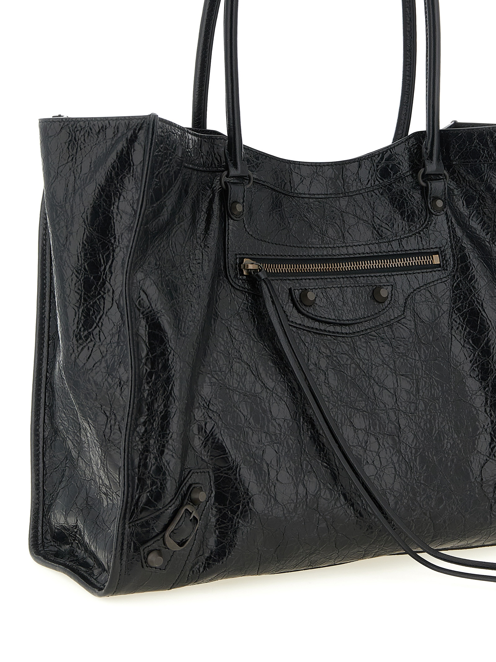 Arena Storico 'Le City' lambskin midi shopping, double fixed handle, magnetic closure, brass finish studs and front zip pocket.