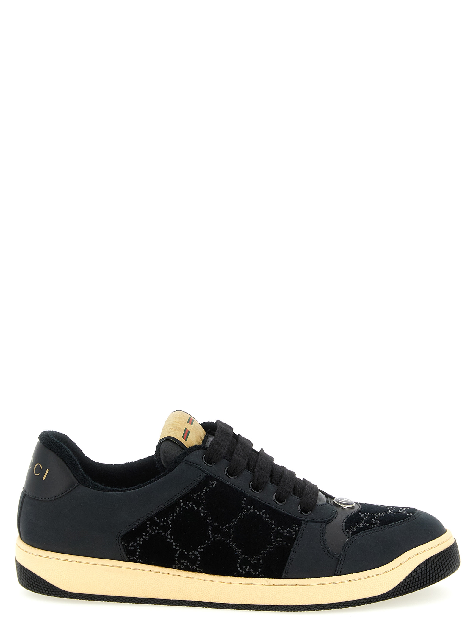 'Screener' velvet sneakers with GG crystal and tone-on-tone leather appliqué, enamelled oval detail with Double G metal on the front, back embossed logo, lace-up closure, rubber sole.