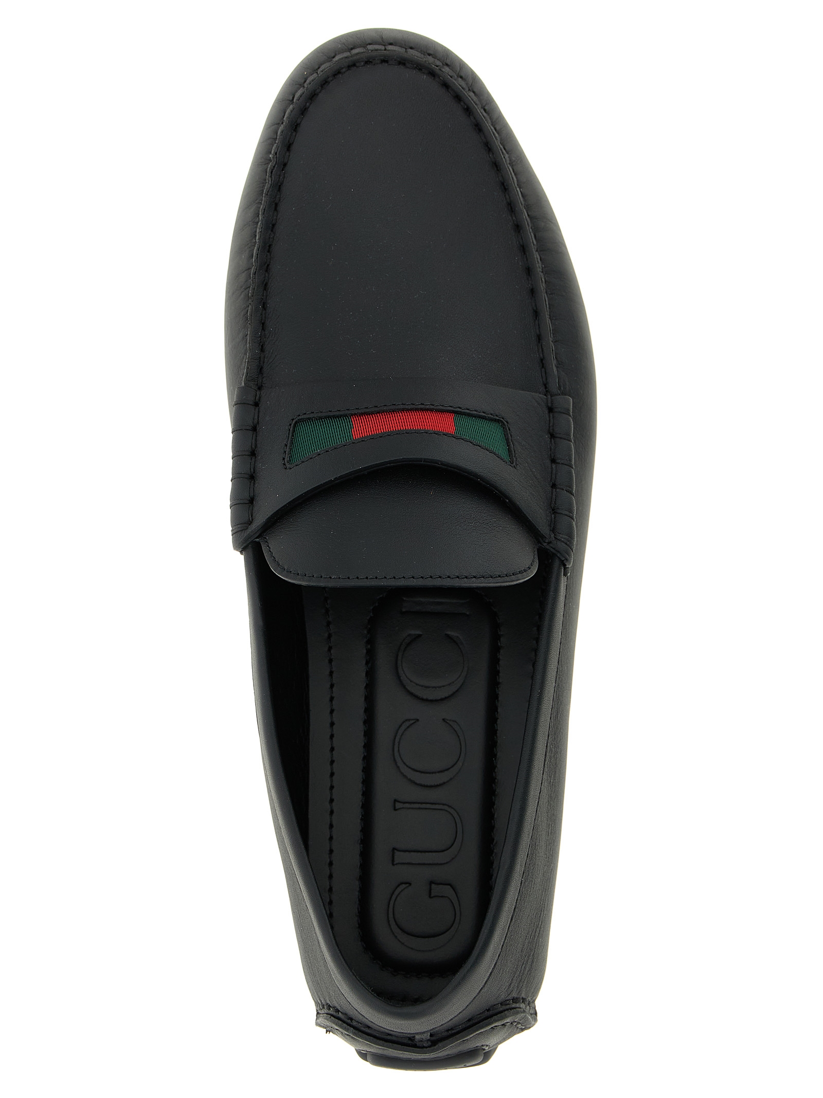 Leather loafers, driver model, front grosgrain 'Nastro Web' detail, padded insole, rubber sole with embossed rubber pads.