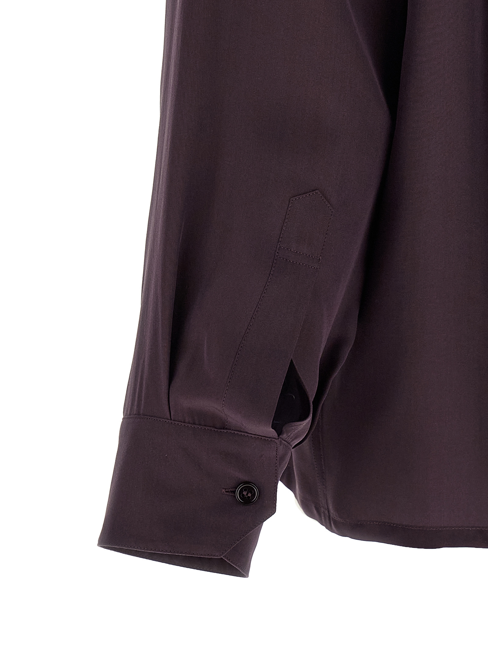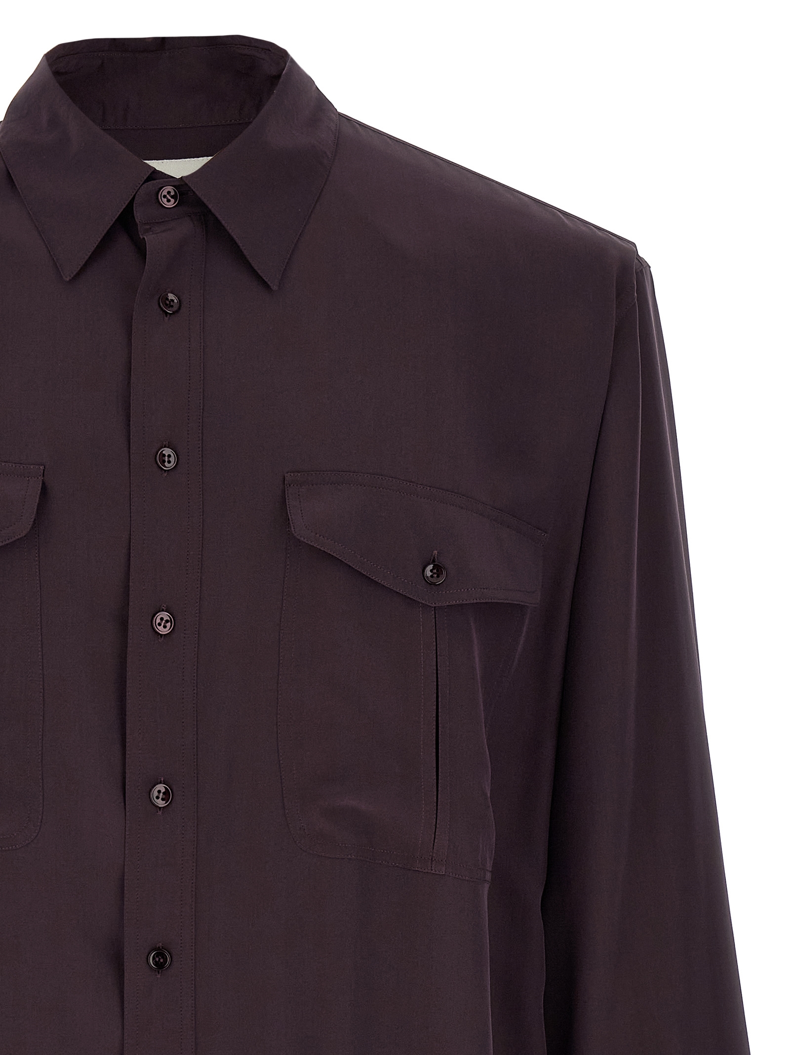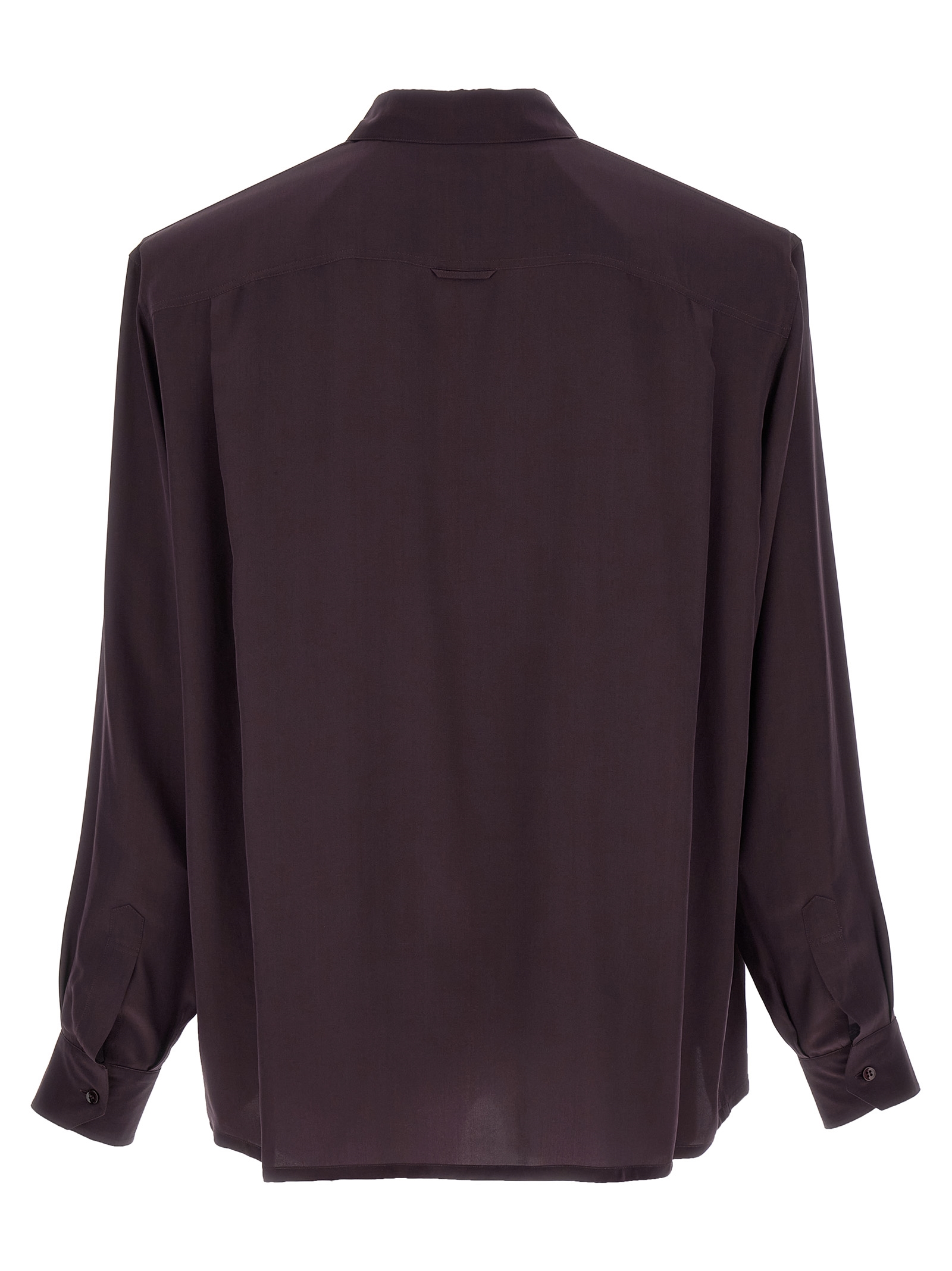Рубашка из вискозы и шелка, отложной воротник, карманы, застежка на пуговицы спереди, полужесткая съемная конструкция на плечах, длинные рукава с манжетами.Характеристики товара