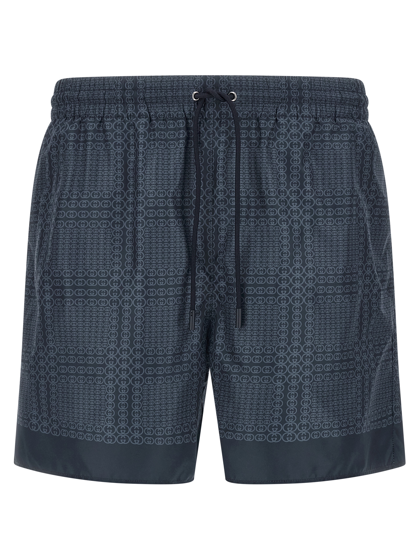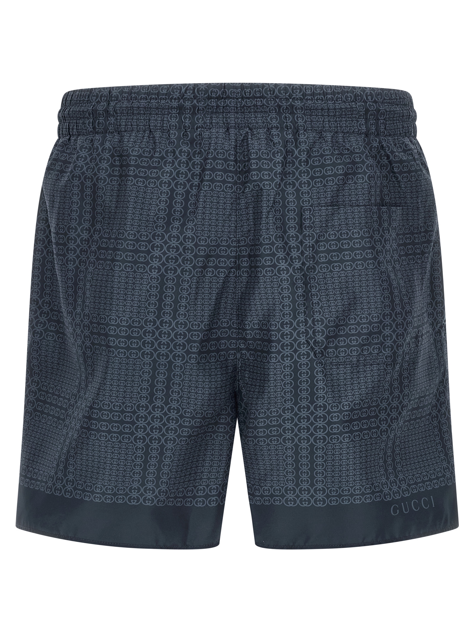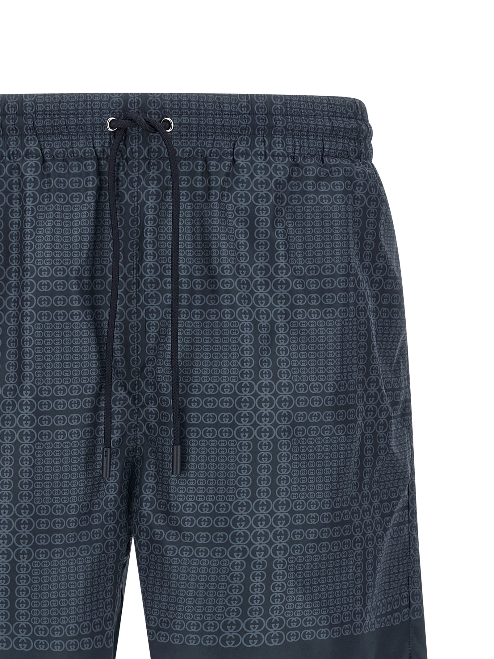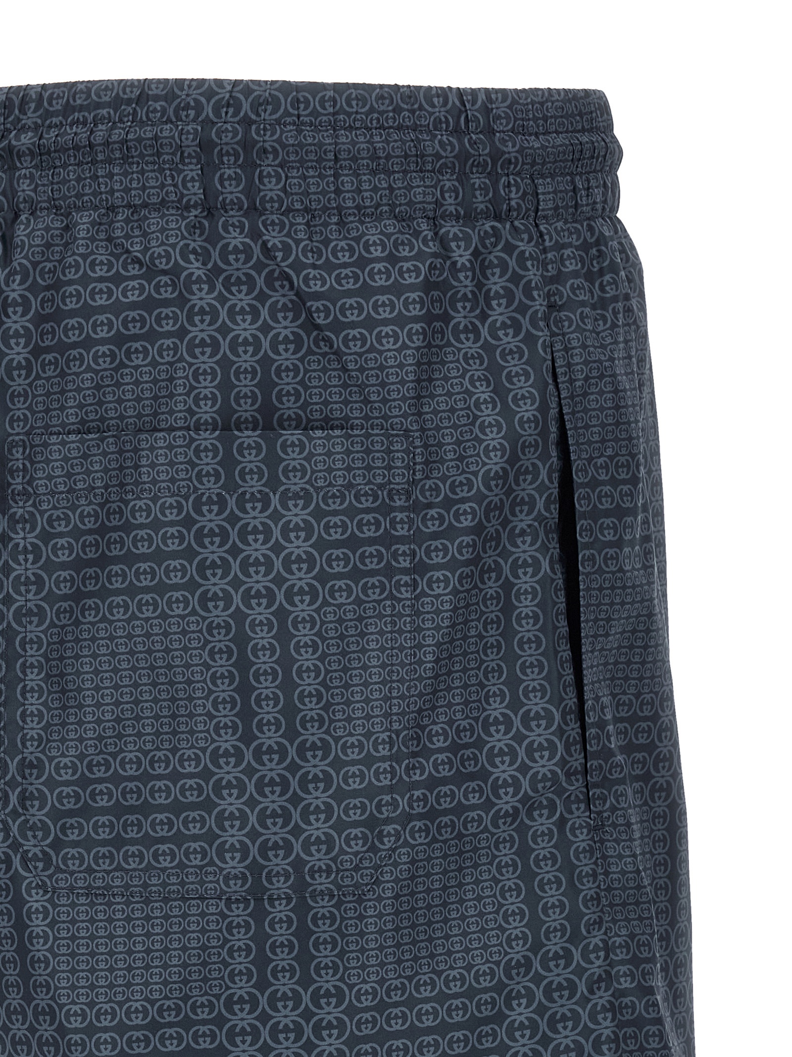 All-over 'Gucci Incrocio GG' print technical poplin swimsuit, drawstring elastic waistband, pockets, inner mesh briefs.