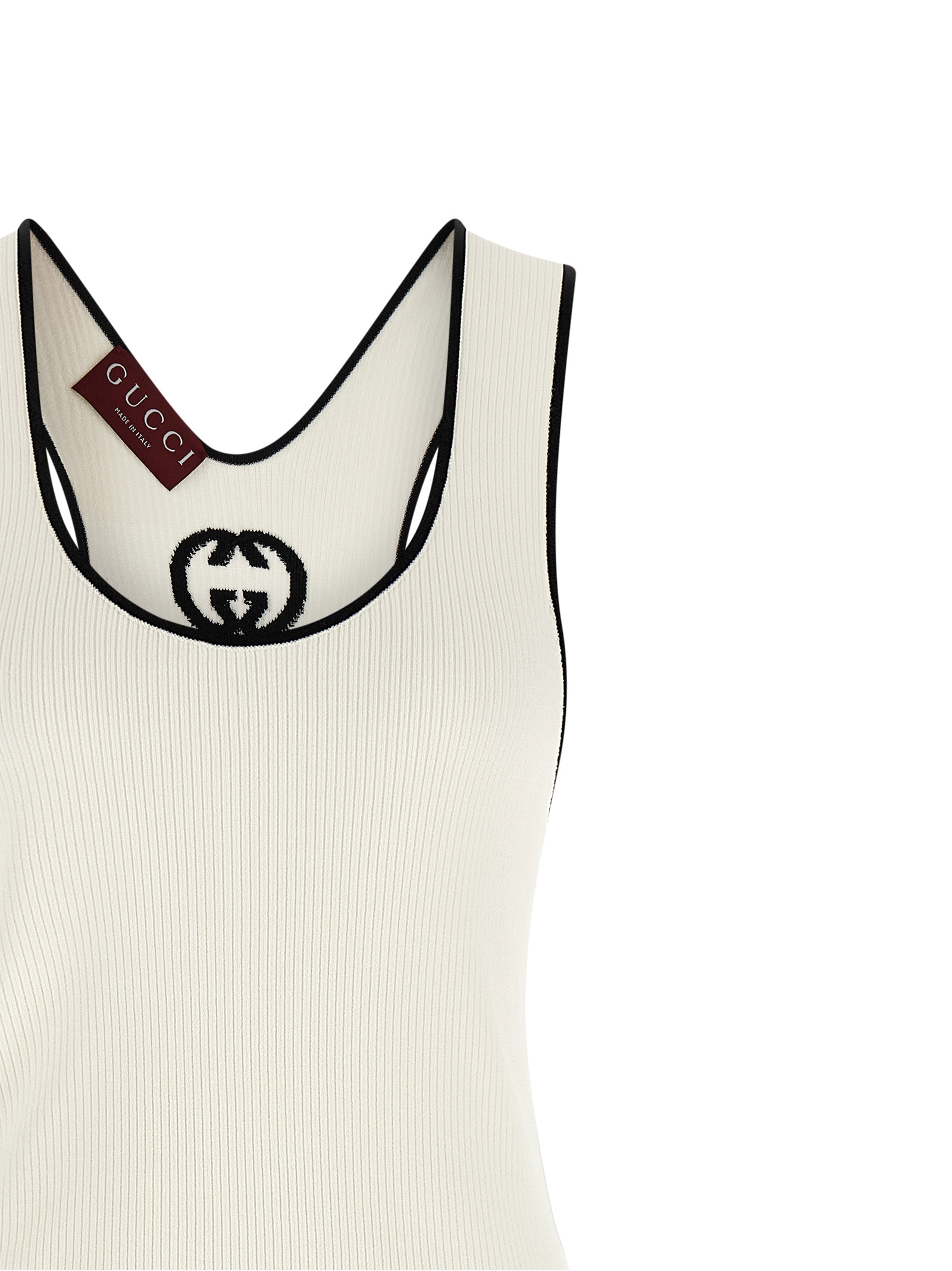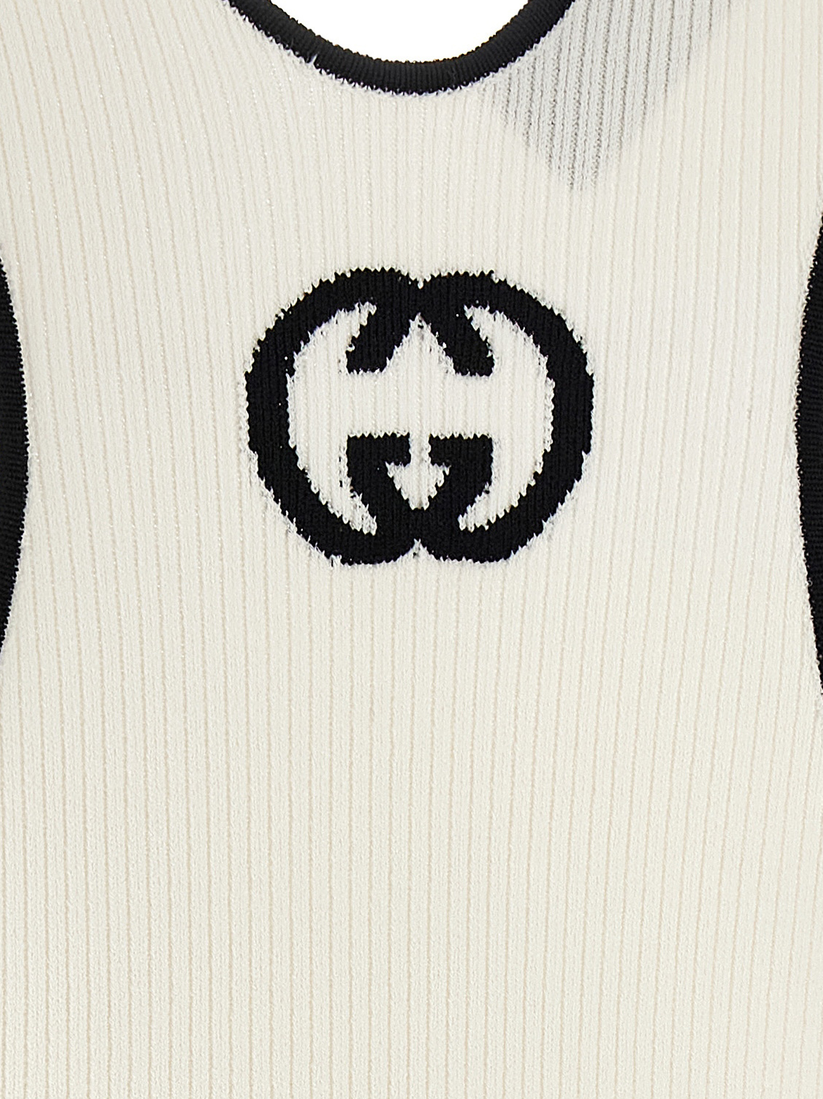 Платье без рукавов из эластичной вискозы с интарсией «Doppia G» на спине, модель без рукавов с контрастной окантовкой и широким круглым вырезом.