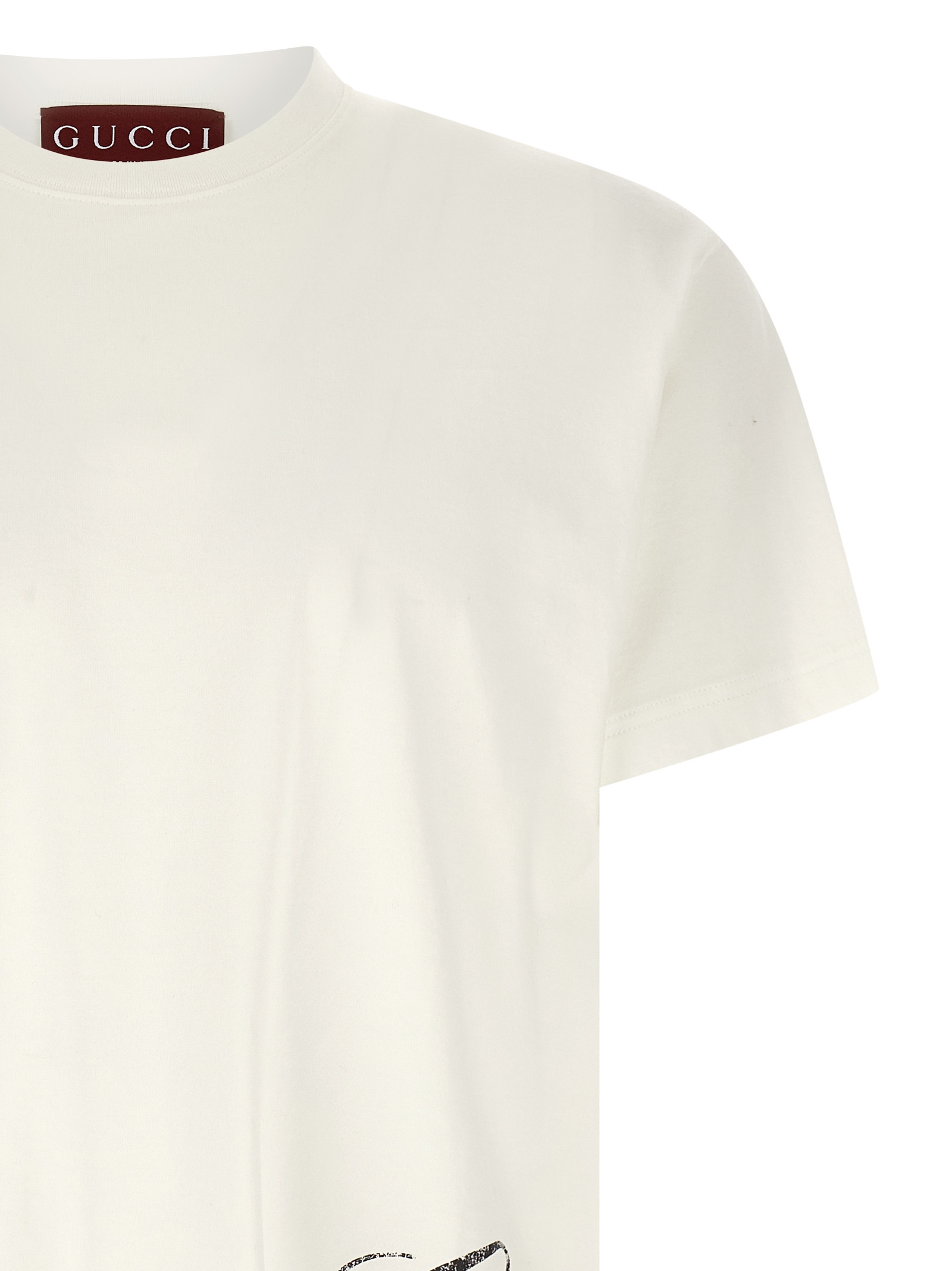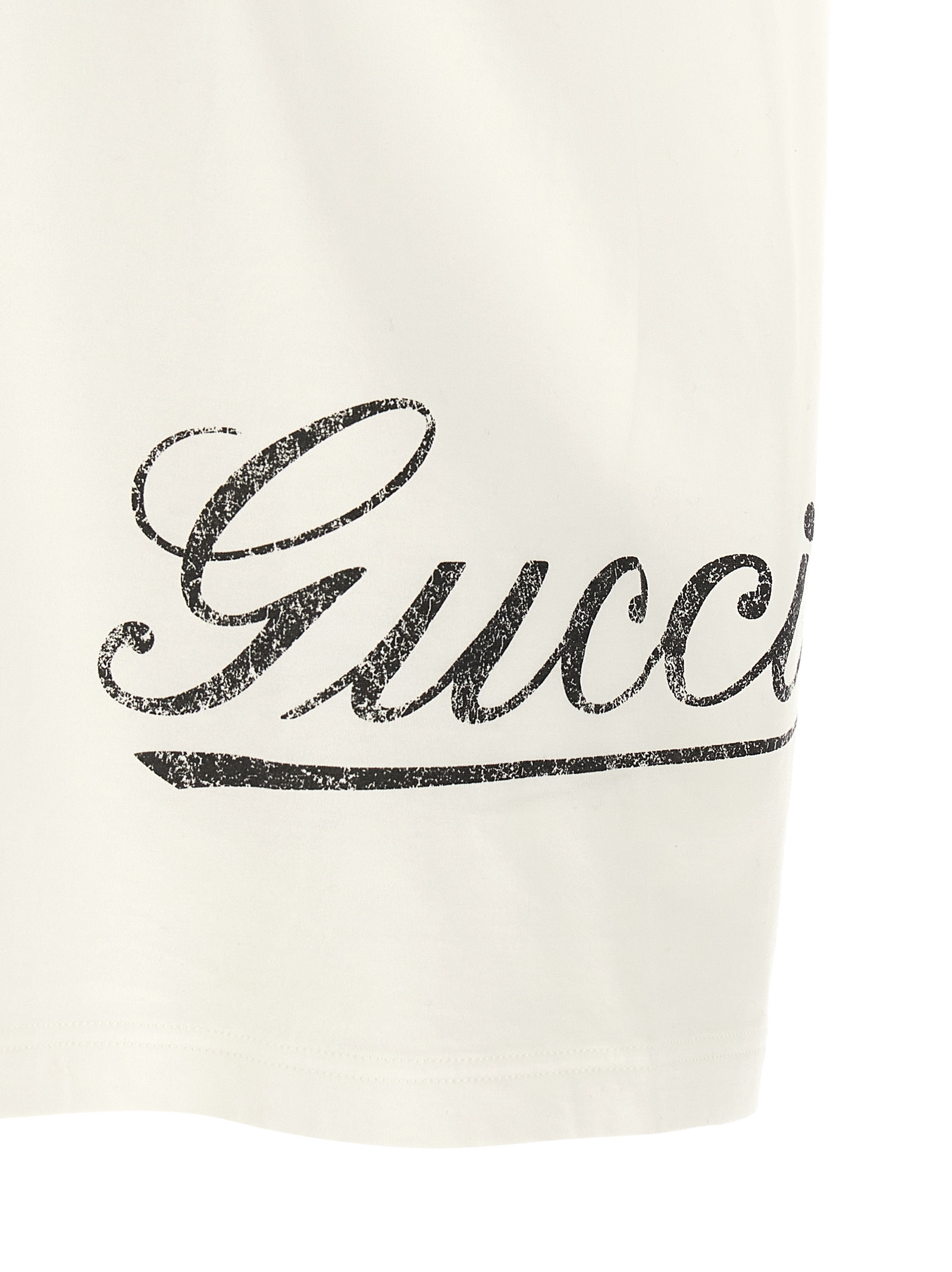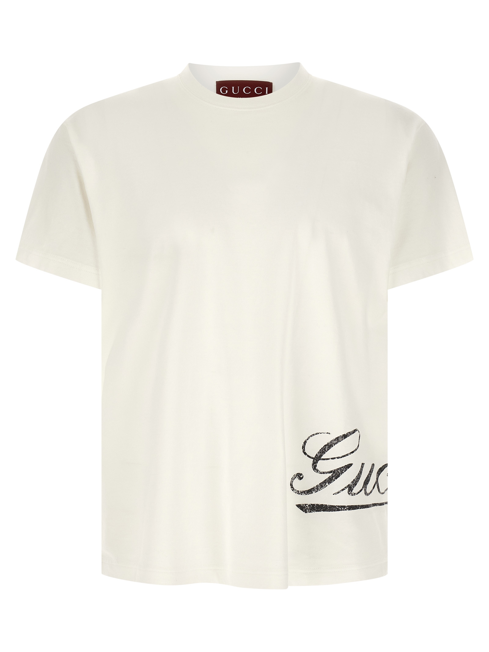 Light cotton jersey t-shirt, 'Gucci' vintage-effect logo print, crew neck, short sleeves with dropped shoulders.