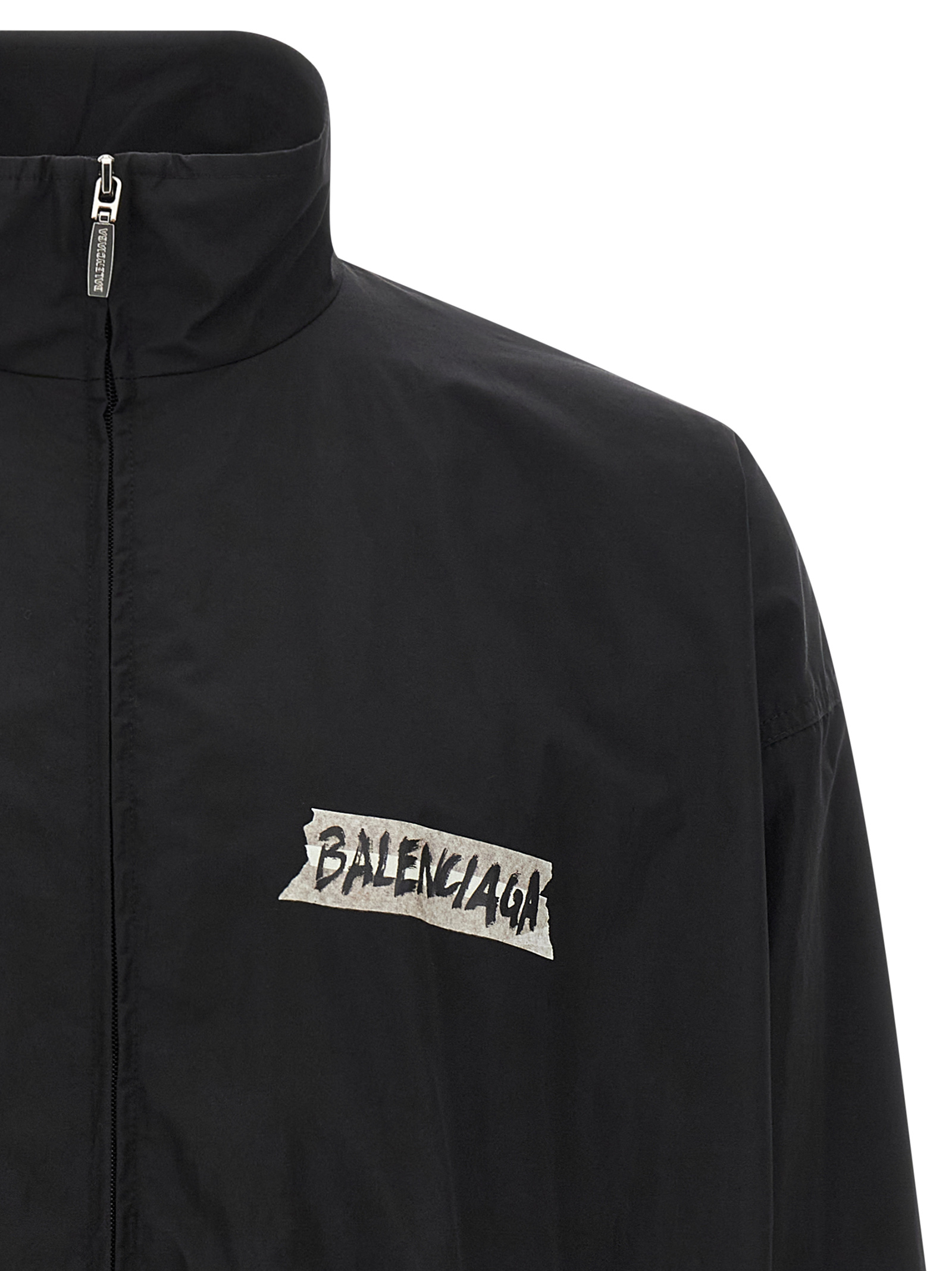 Tech cotton poplin sweatshirt, mesh lining, 'Masking Tape' print on the front and back, high neck, front zip closure, pockets, long sleeves with elastic cuffs and dropped shoulders, elastic hem.