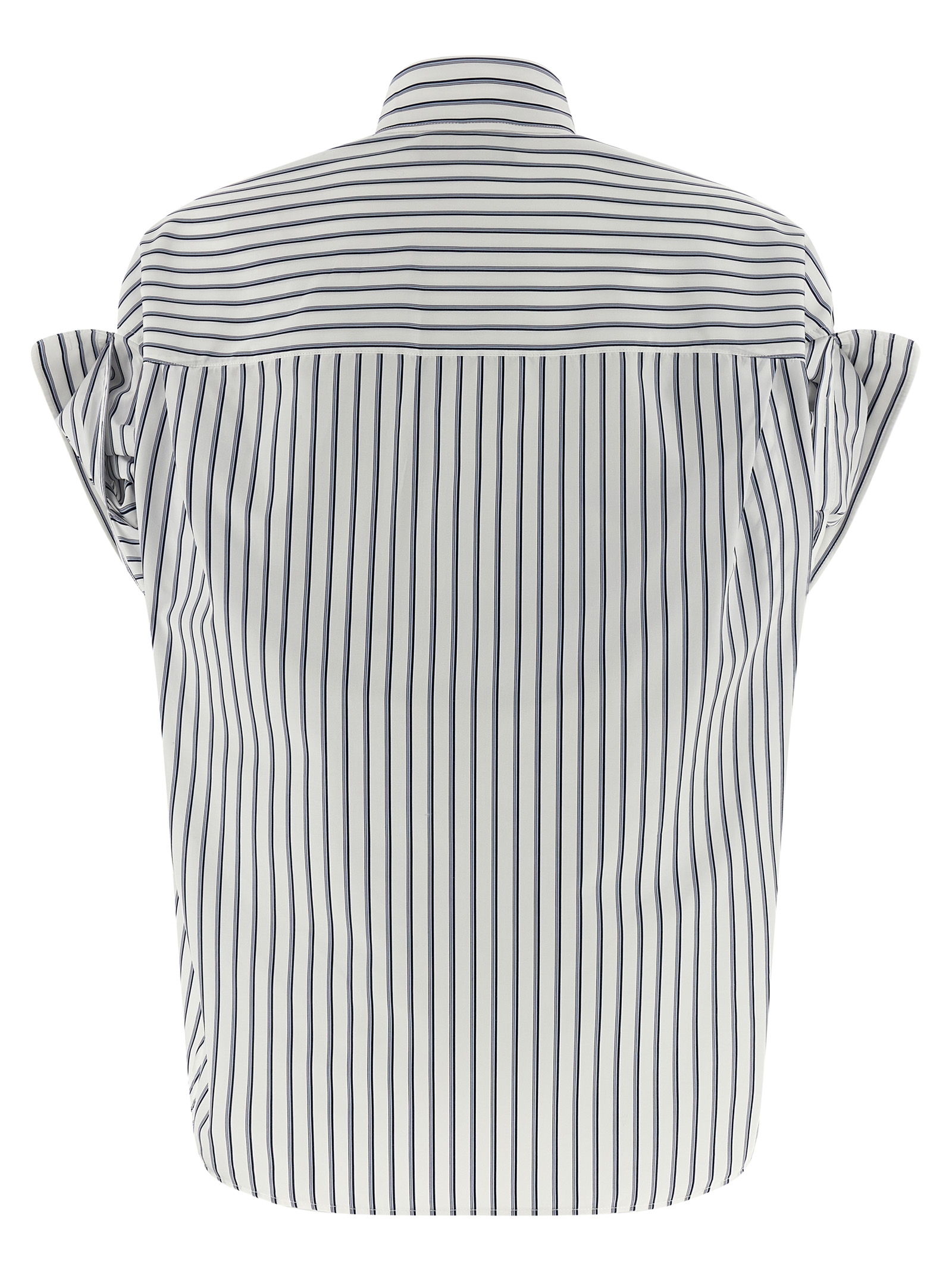 Striped cotton poplin shirt, button-down model, chest pocket with tone-on-tone embroidered logo, front button closure, short flap sleeves with turned-up cuffs, rounded hem.