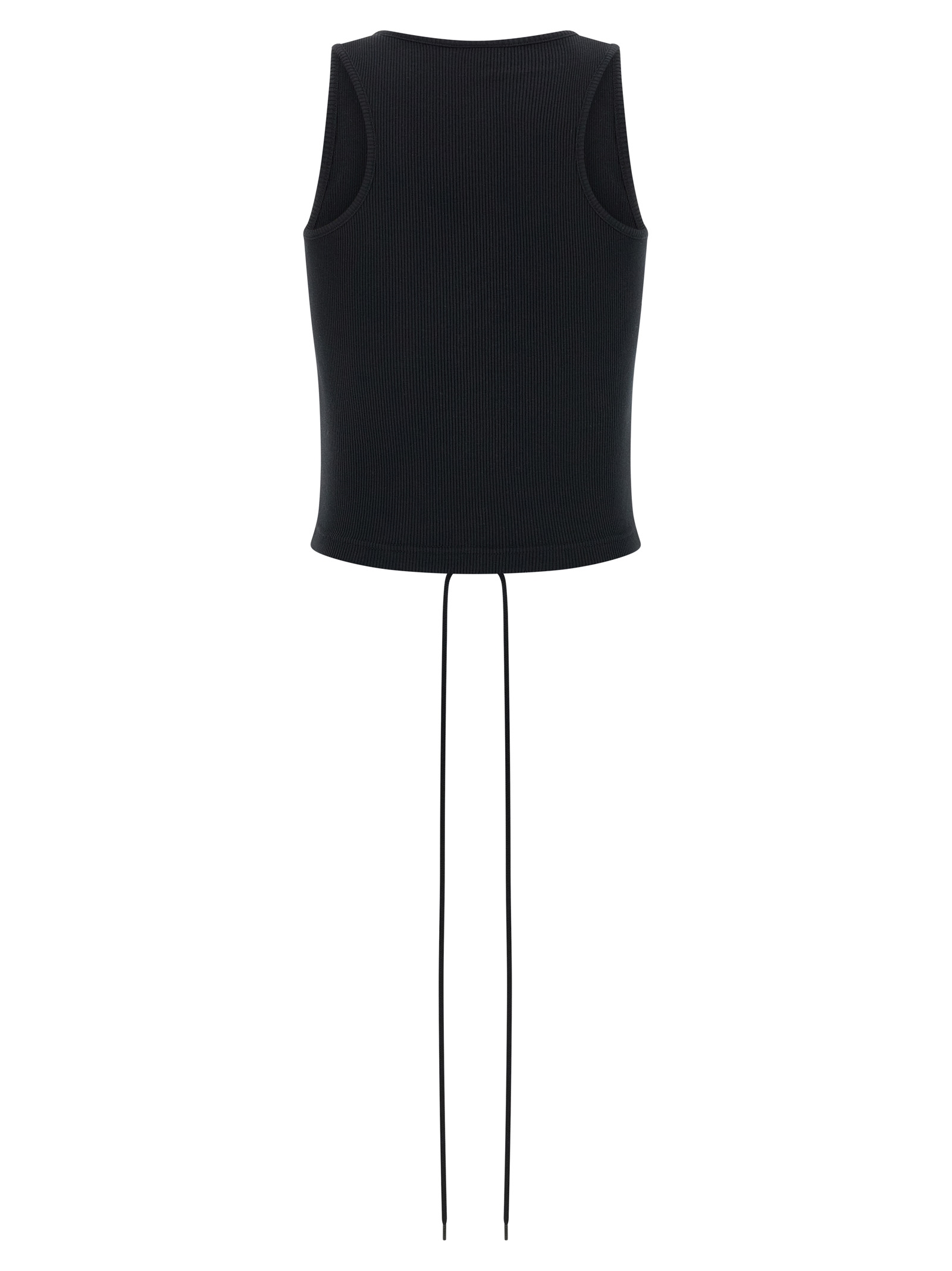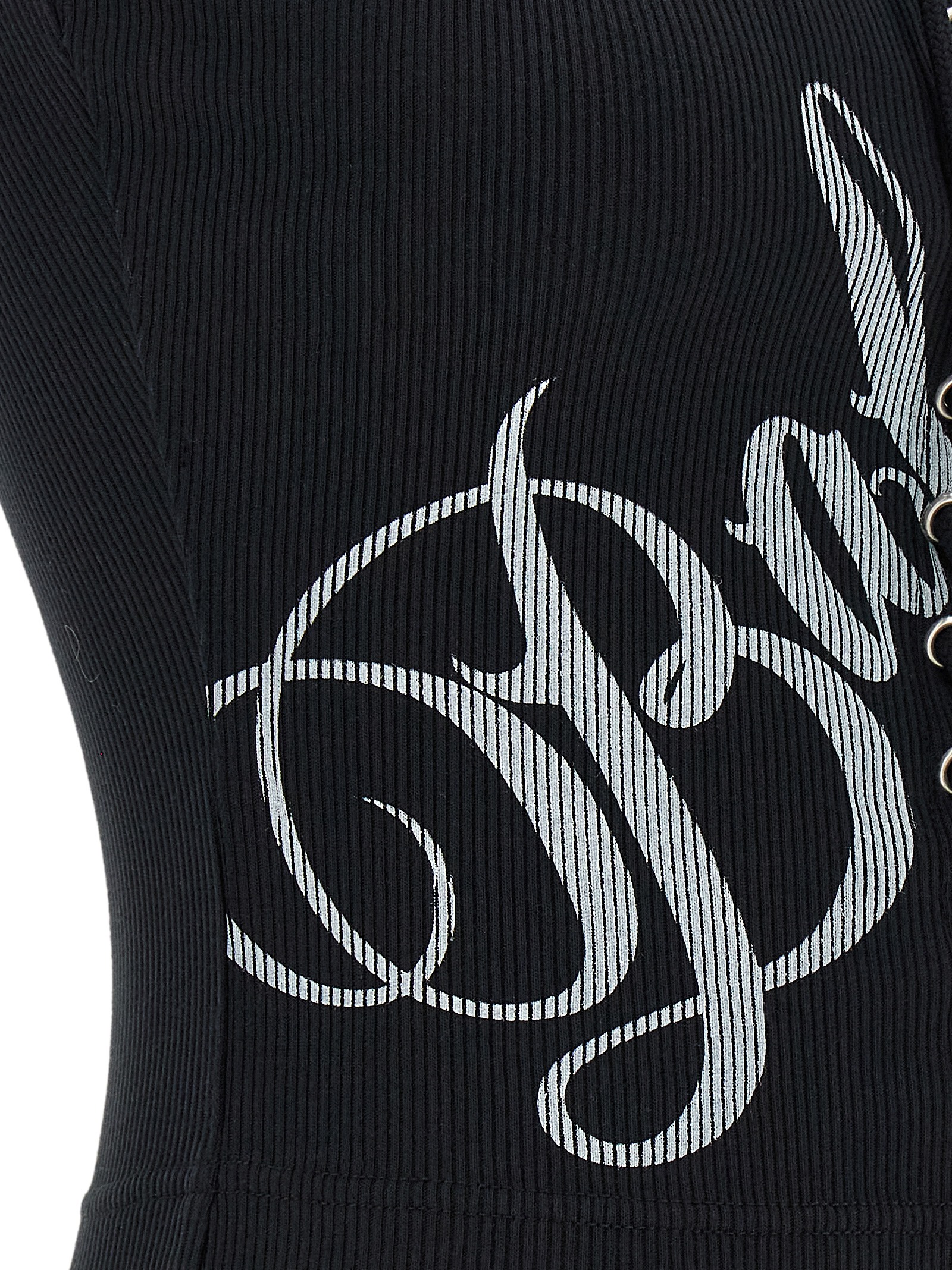 Ribbed stretch cotton top with logo print and 'Lace-Up' detail with front closure and wide round neckline.