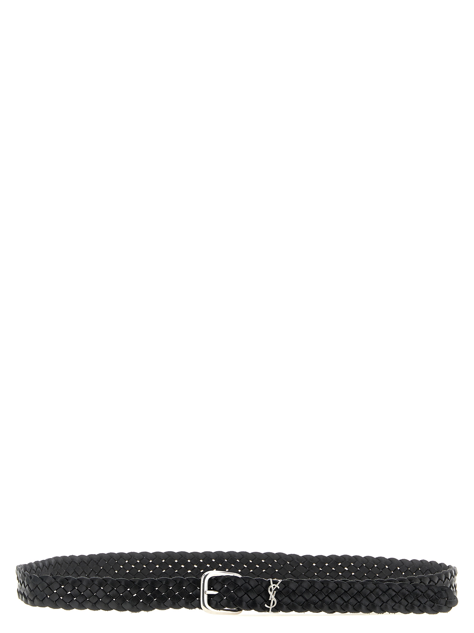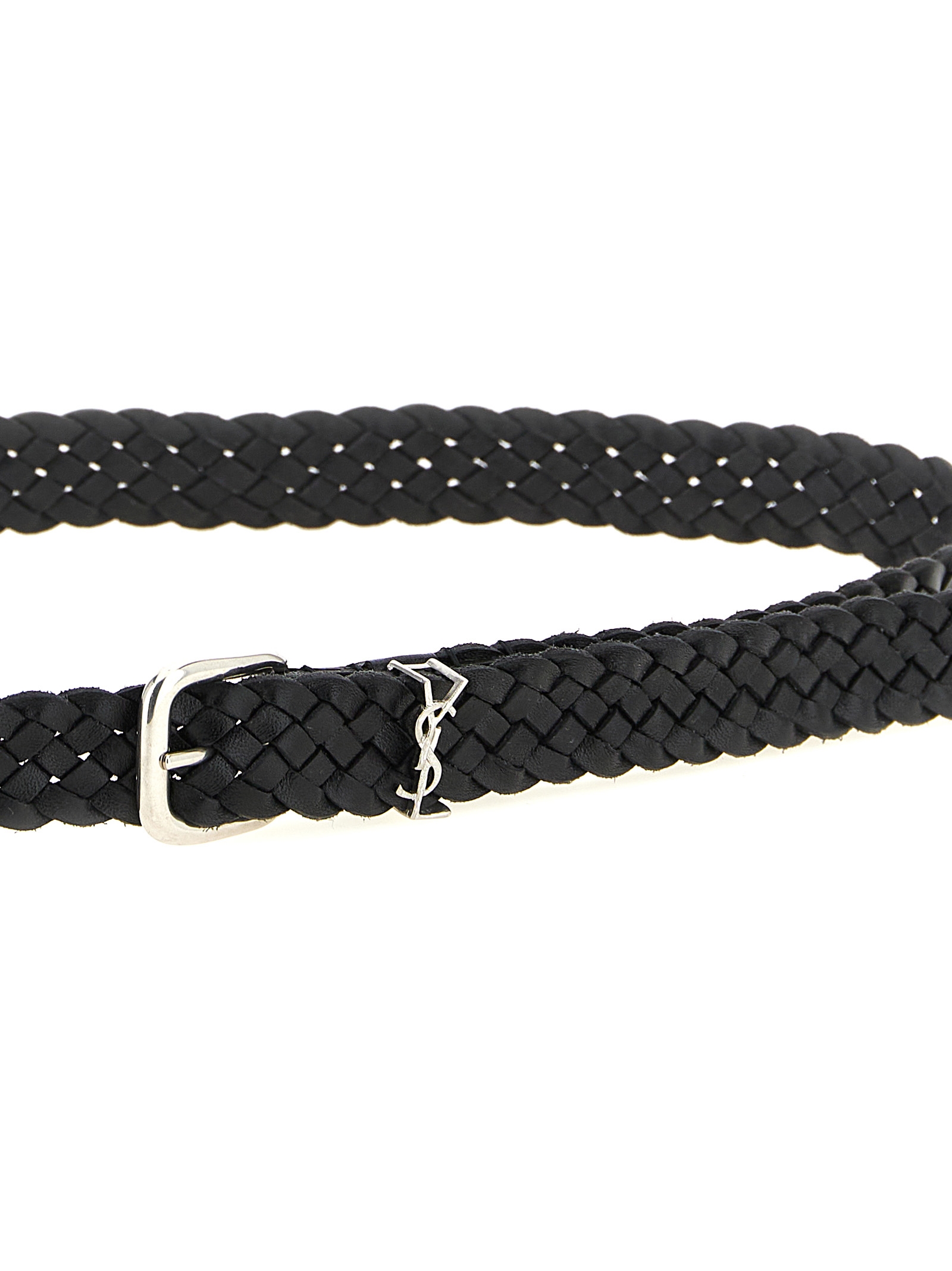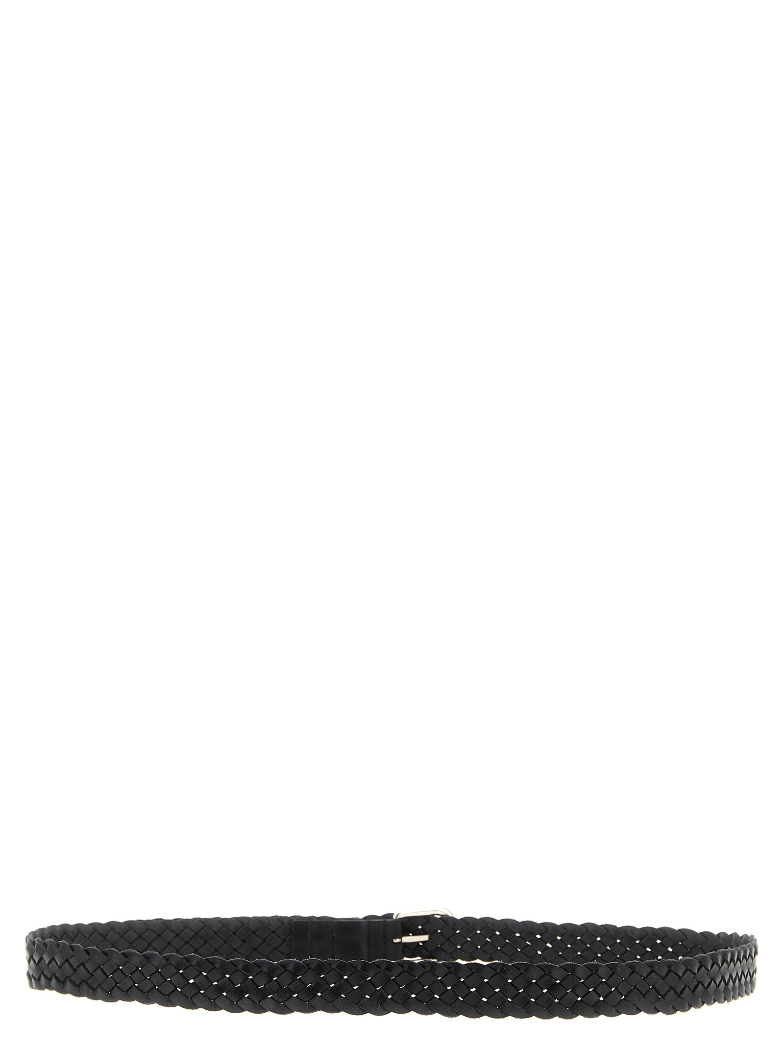 Braided vegetable-tanned leather belt, pin buckle and metal 'Cassandre' loop. There are no predefined holes, the pin buckle can be inserted anywhere in the weave for a perfect fit.