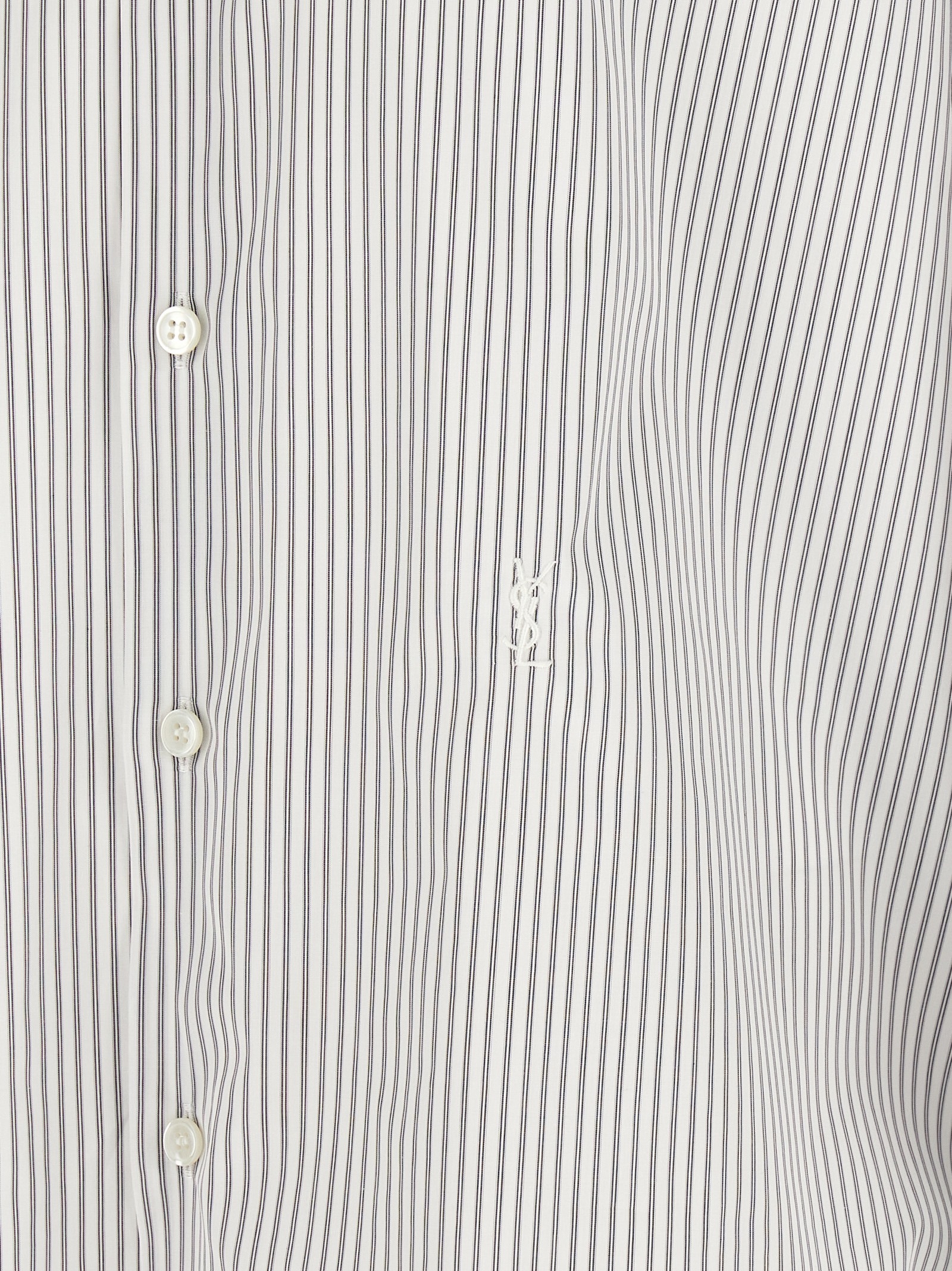 Полосатая рубашка из хлопкового поплина с вышитым логотипом «Cassandre» и застежкой на пуговицы спереди, воротником-стойкой Yves, длинными рукавами со скошенными манжетами и закругленным низом.Характеристики товара