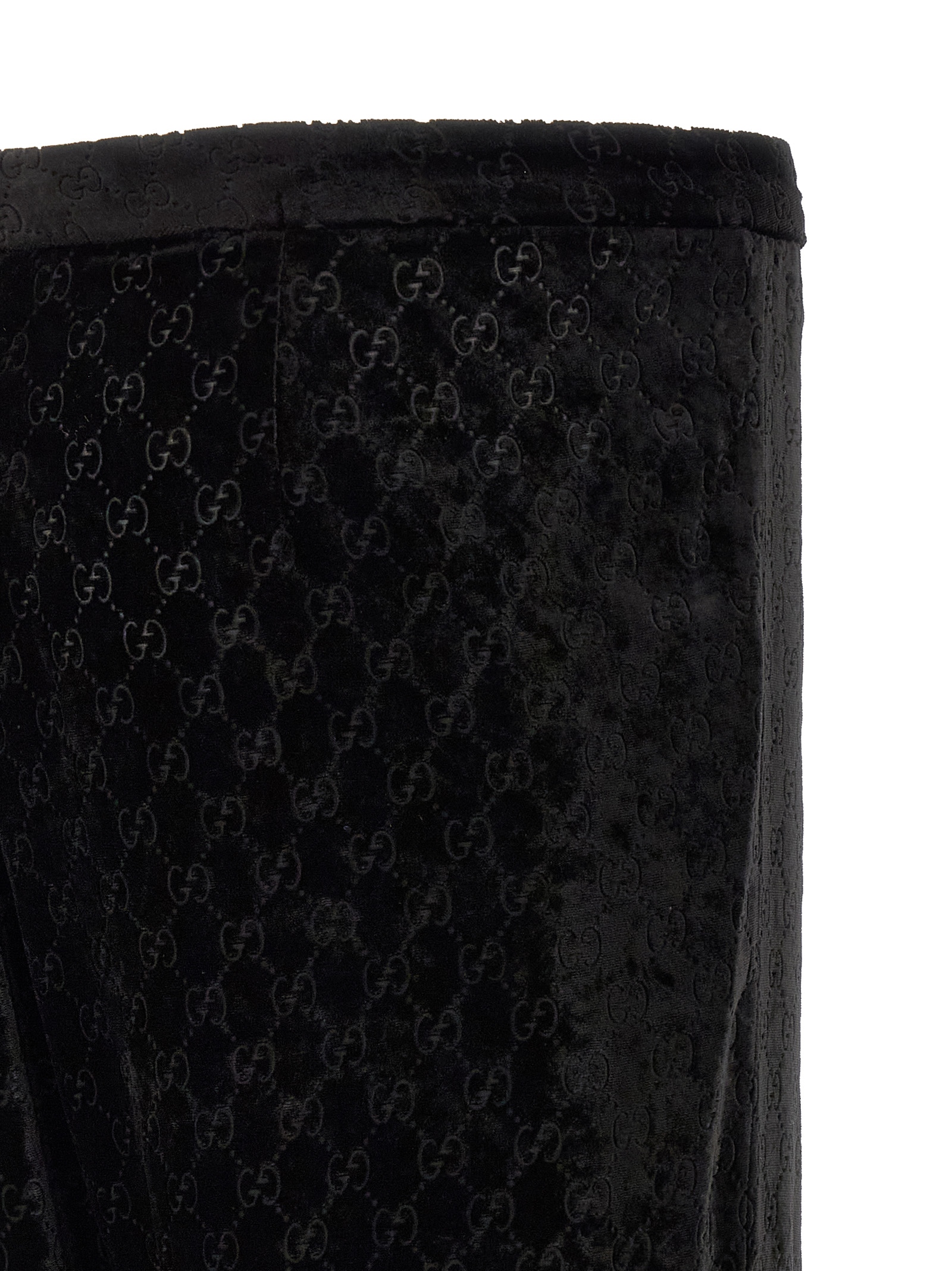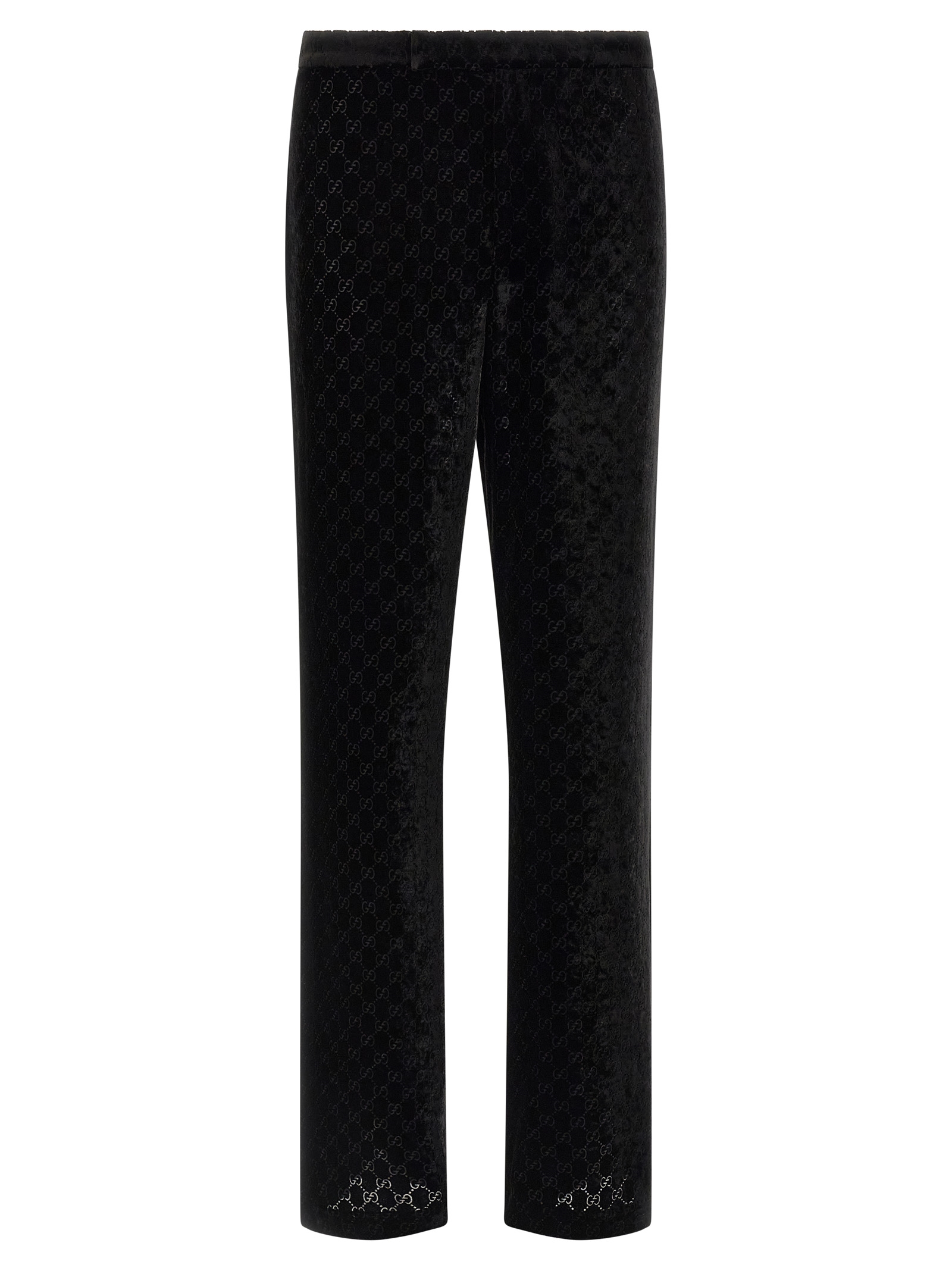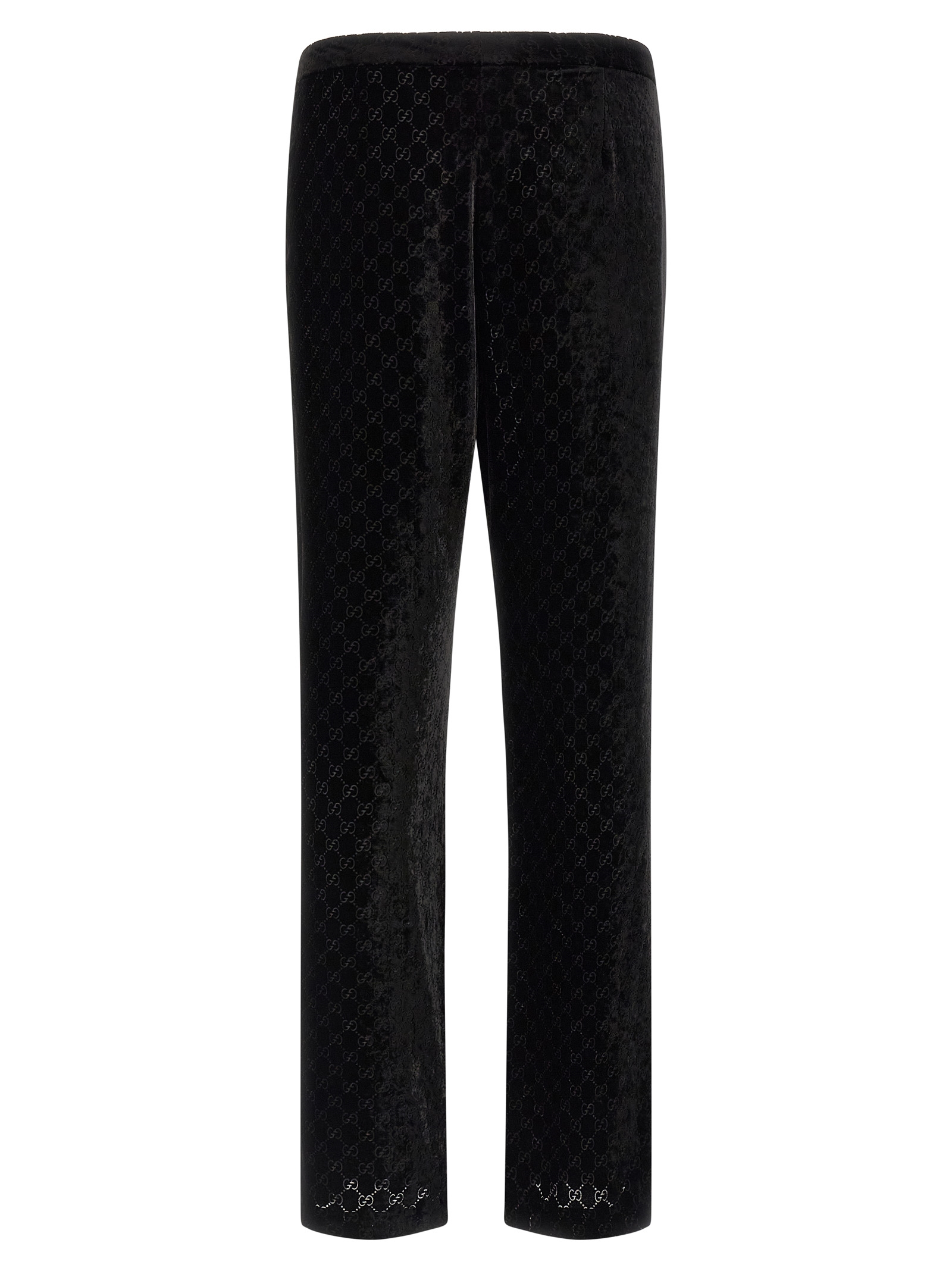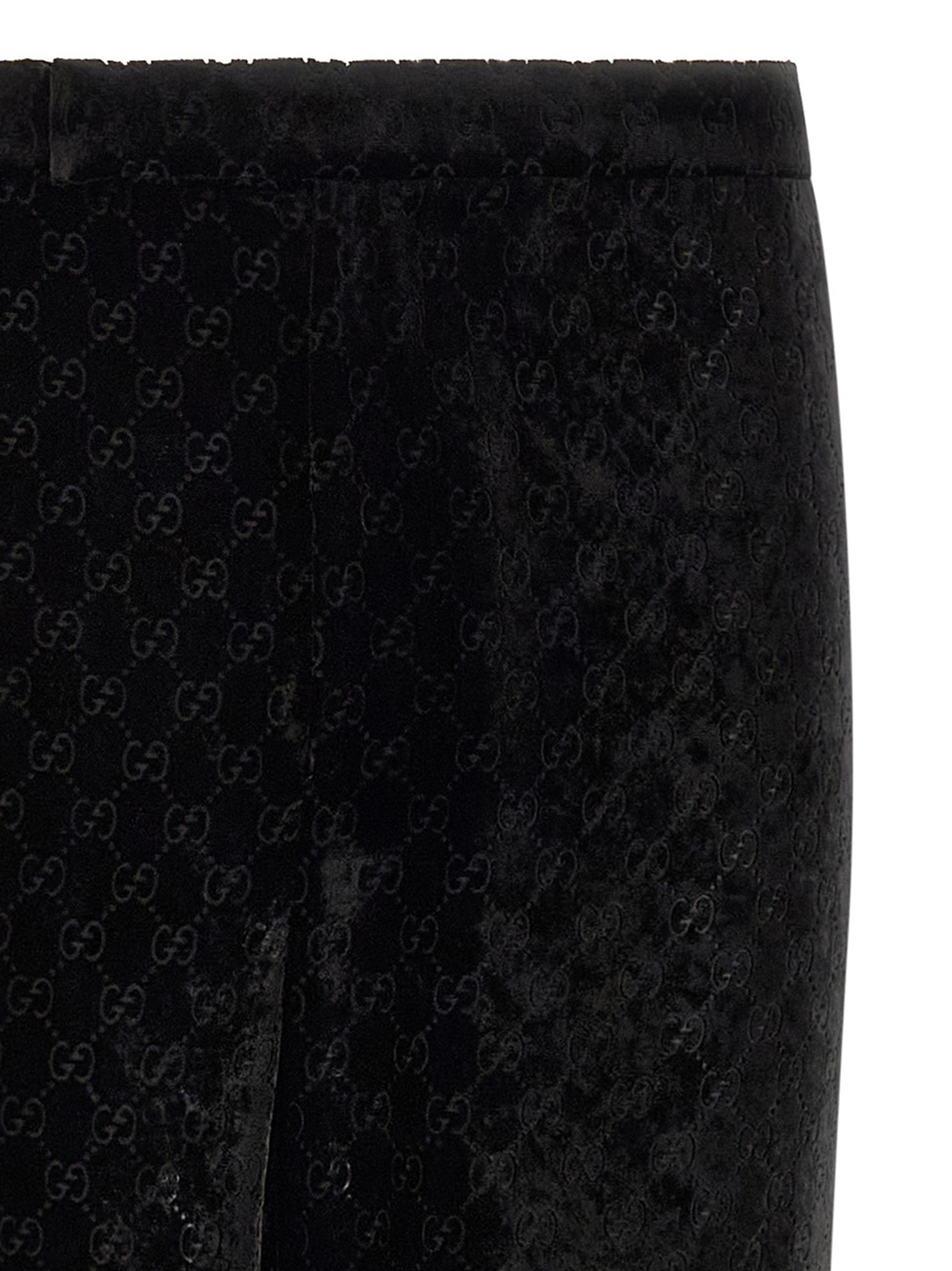 Fluid and light velvet trousers with all-over 'GG' work, central zip closure, button and hook, side pockets, straight and wide leg.
