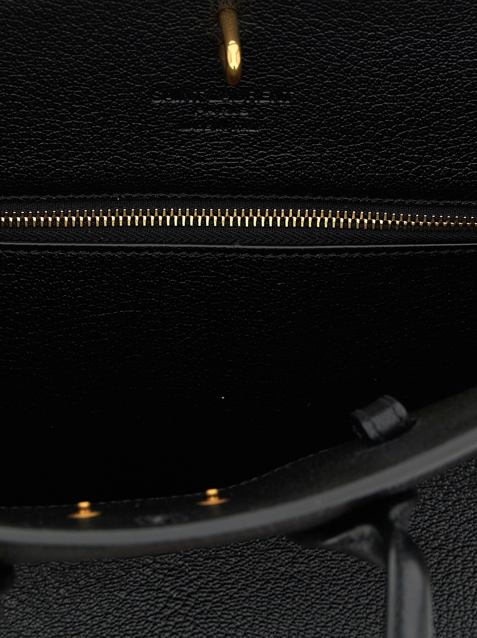 Small hammered leather 'Sac De Jour' handbag with East-West design, extendable side gussets with internal adjustable straps, double fixed tubular handle, rigid base with metal feet, removable metal 'Cassandre' padlock detail, adjustable and removable leather shoulder strap, adjustable and removable tape shoulder strap.Характеристики товара