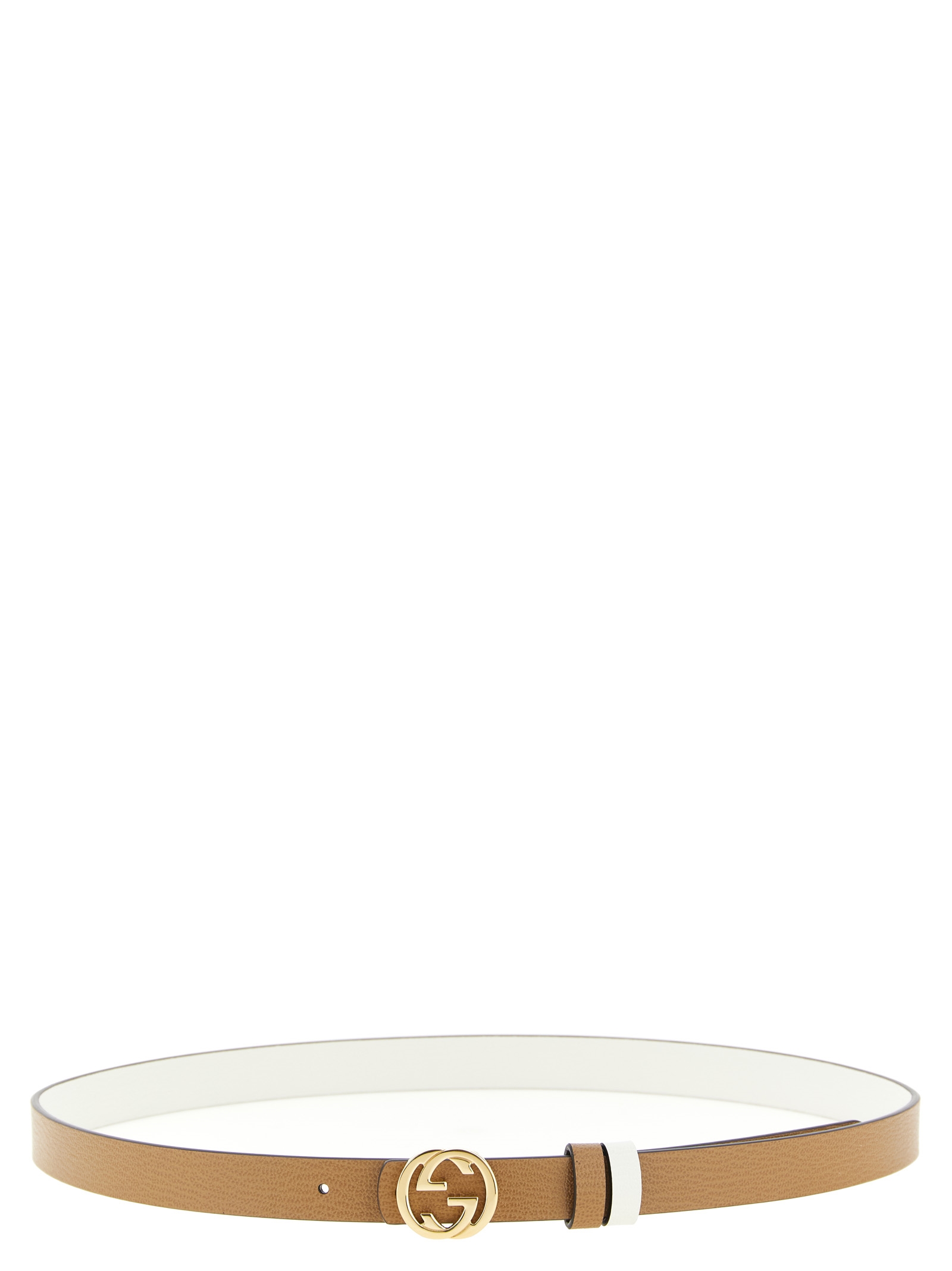 Reversible hammered leather belt with shiny natural finish, new 'Incrocio GG' metal flat buckle. Color side A: white Coloring side B: brownХарактеристики товара