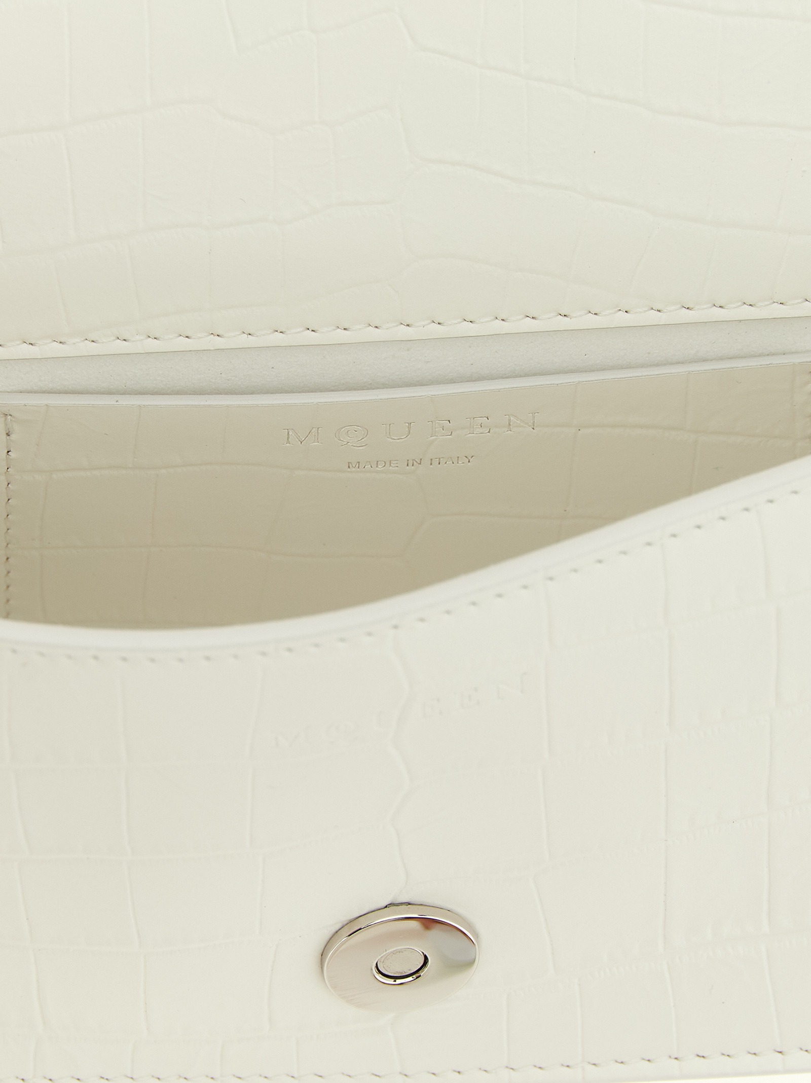 'Jewelled' mini shoulder bag in crocodile-effect embossed print calf leather with semi-matte finish, magnetic flap closure with 'Knuckle' metal detail with the iconic 'Skull' with crystals, fixed chain handle, adjustable and removable shoulder strap.
