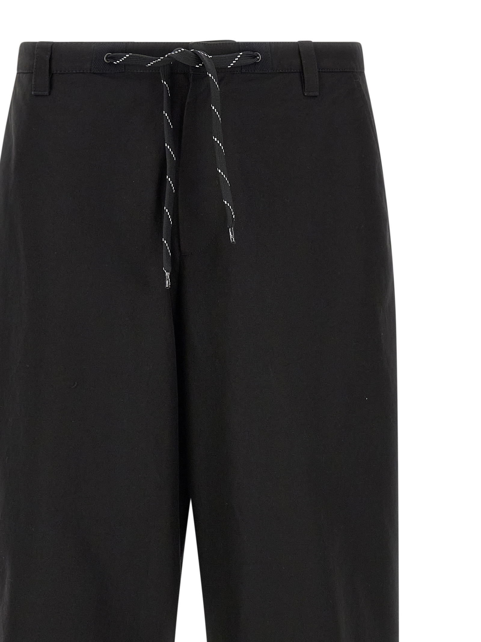 'Chino' cotton twill pants, extra wide and straight leg, drawstring at the waist, front zip and snap button closure, front American pockets, back welt pockets.