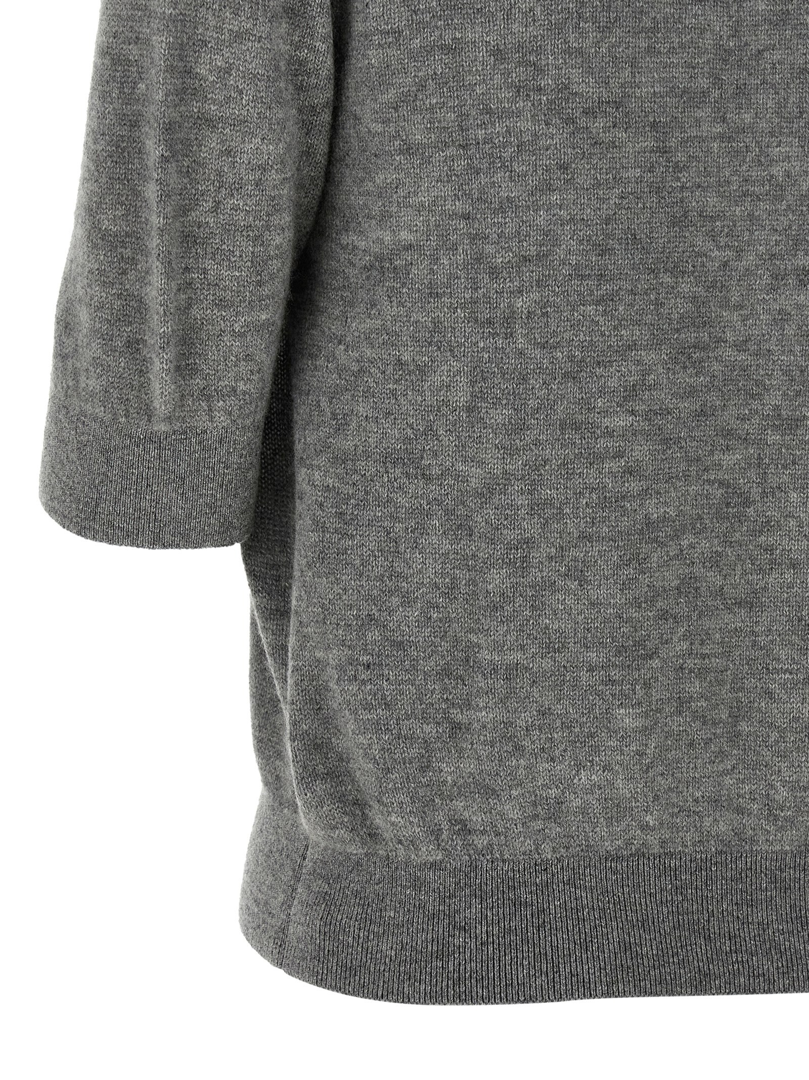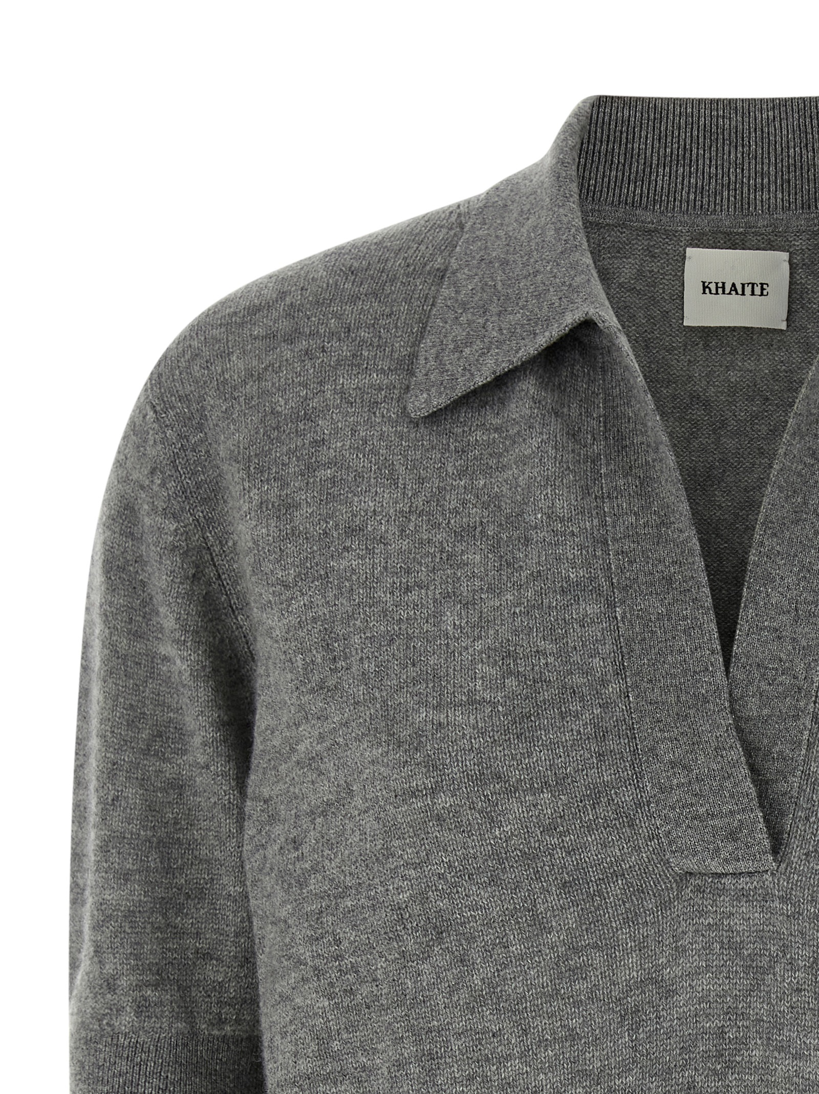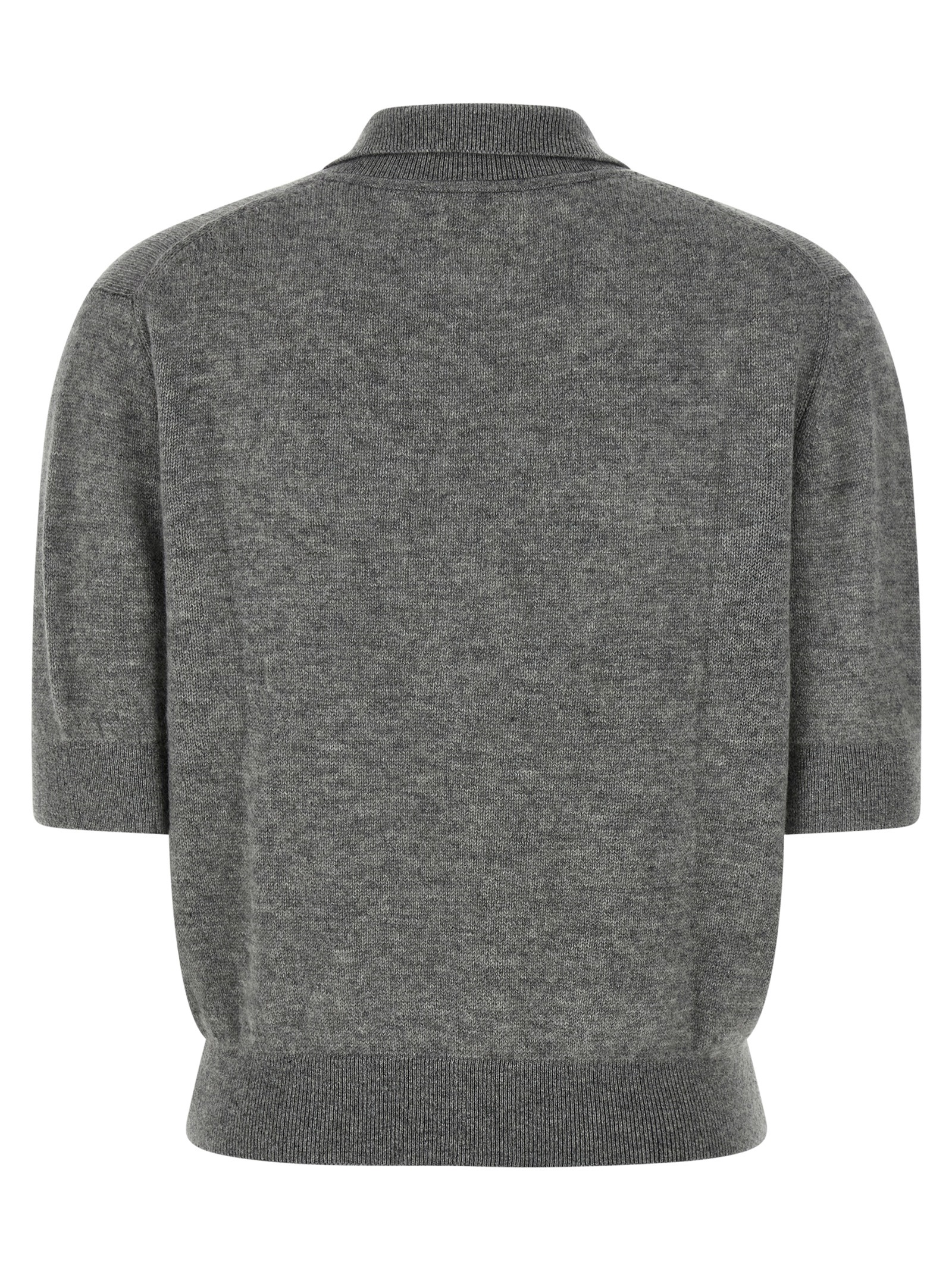 'Shrunken Jo' cashmere knit polo shirt with collared V-neck and short sleeves.