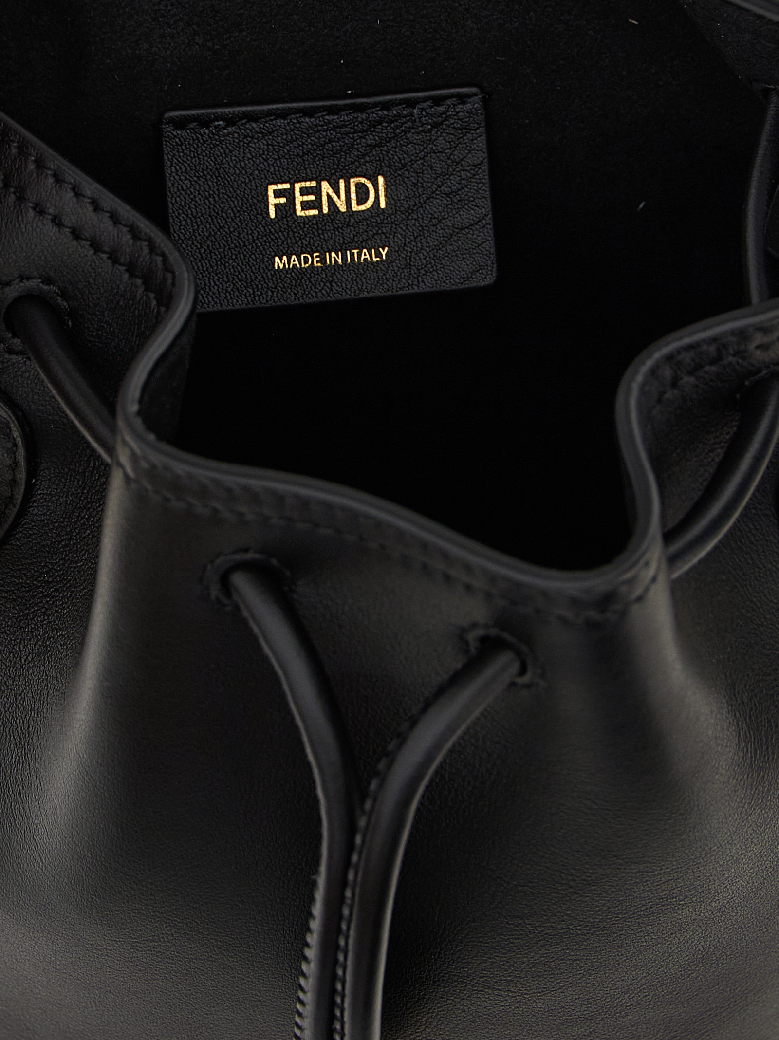 'Mon Tresor' mini bucket bag in calf leather, front lettering logo and metal details with gold finish, drawstring closure, removable handle, removable shoulder strap.Характеристики товара