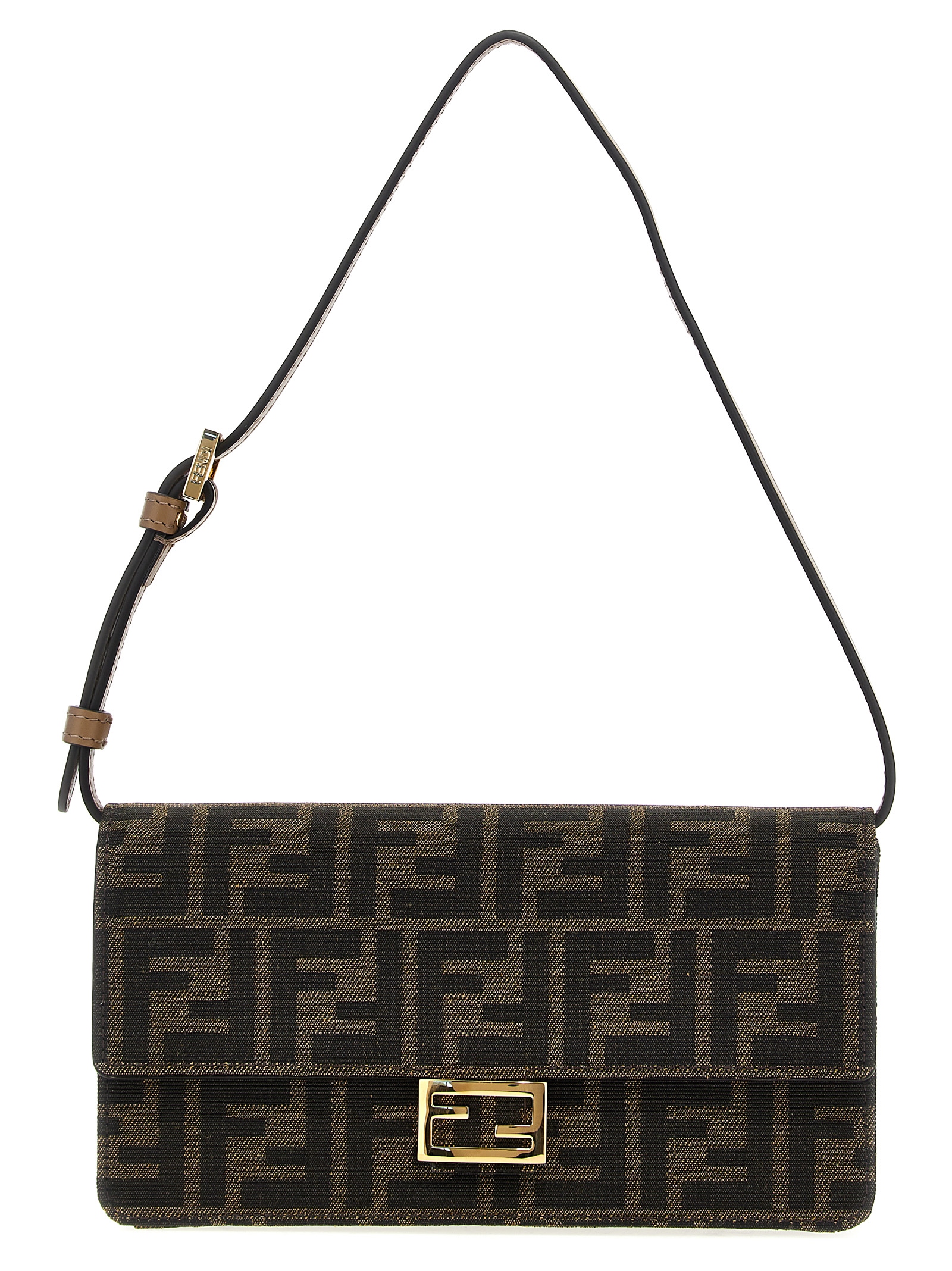 'Baguette' wallet on chain in FF jacquard fabric, flap closure with metal logo, adjustable leather shoulder strap and removable chain shoulder strap.Характеристики товара