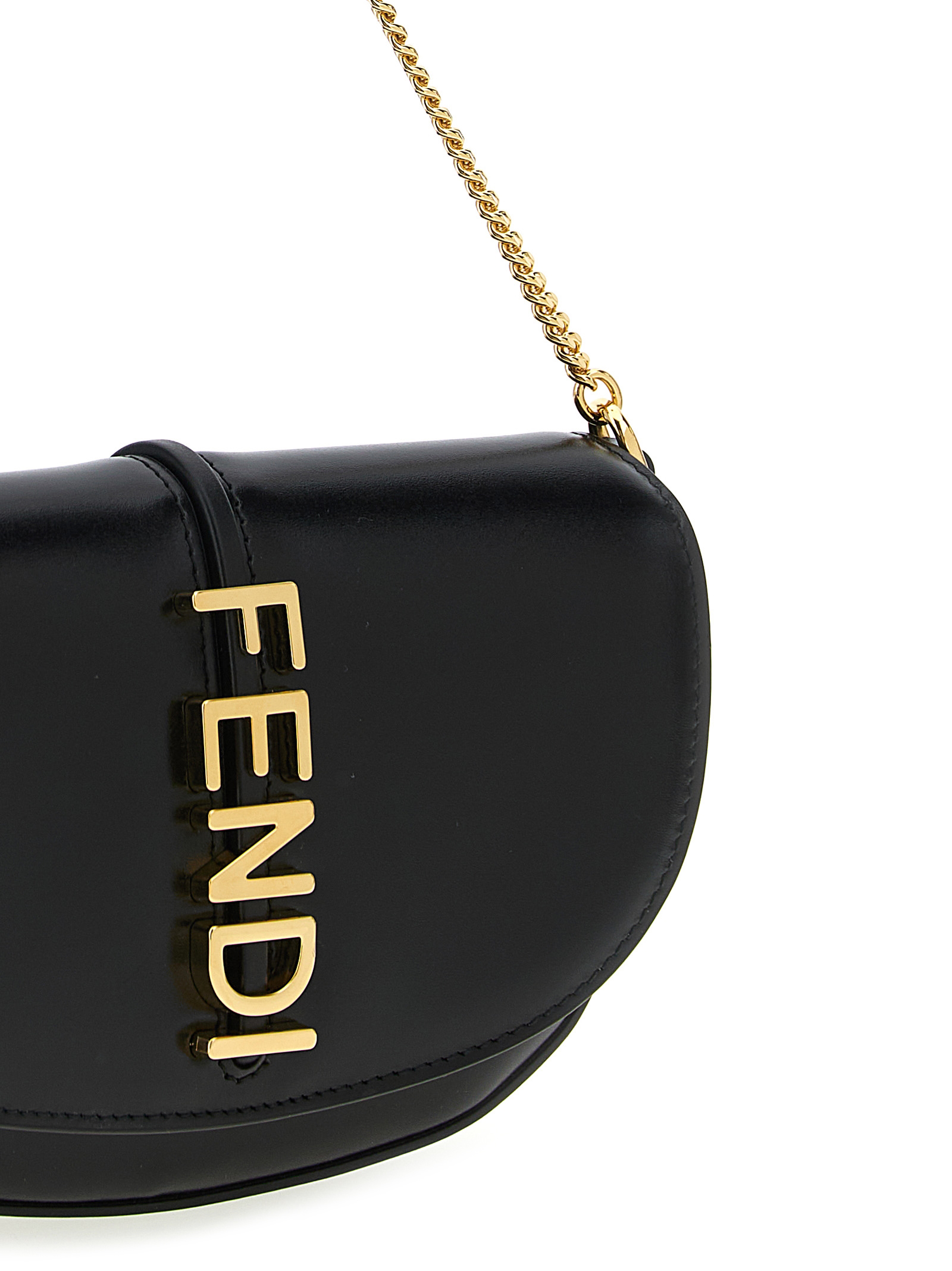 Leather 'Fendigraphy' wallet on chain, flap closure with snap button and front metal lettering logo, short removable thin chain shoulder strap, long leather shoulder strap and removable chain.Характеристики товара