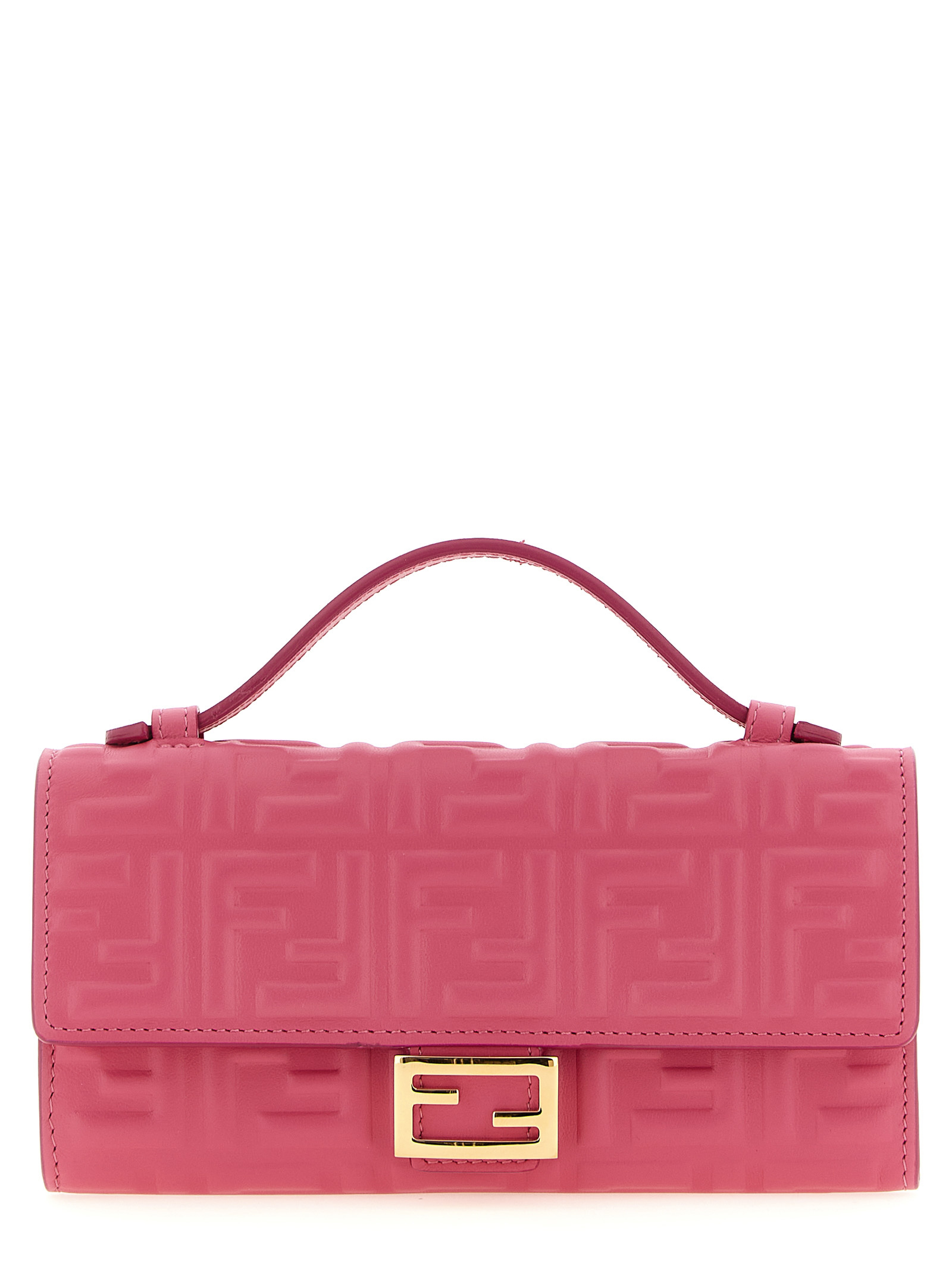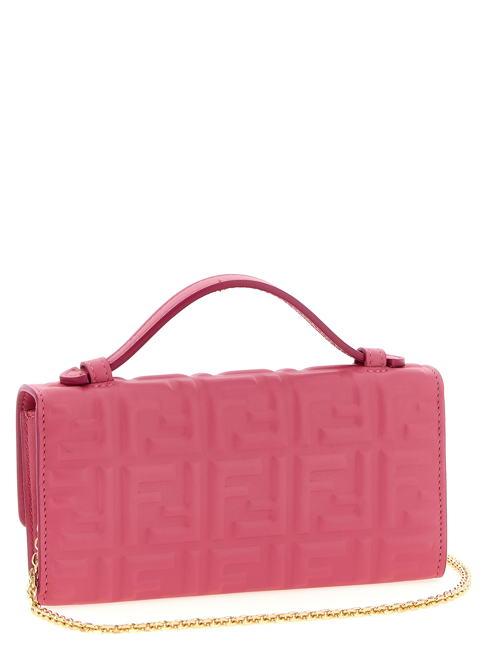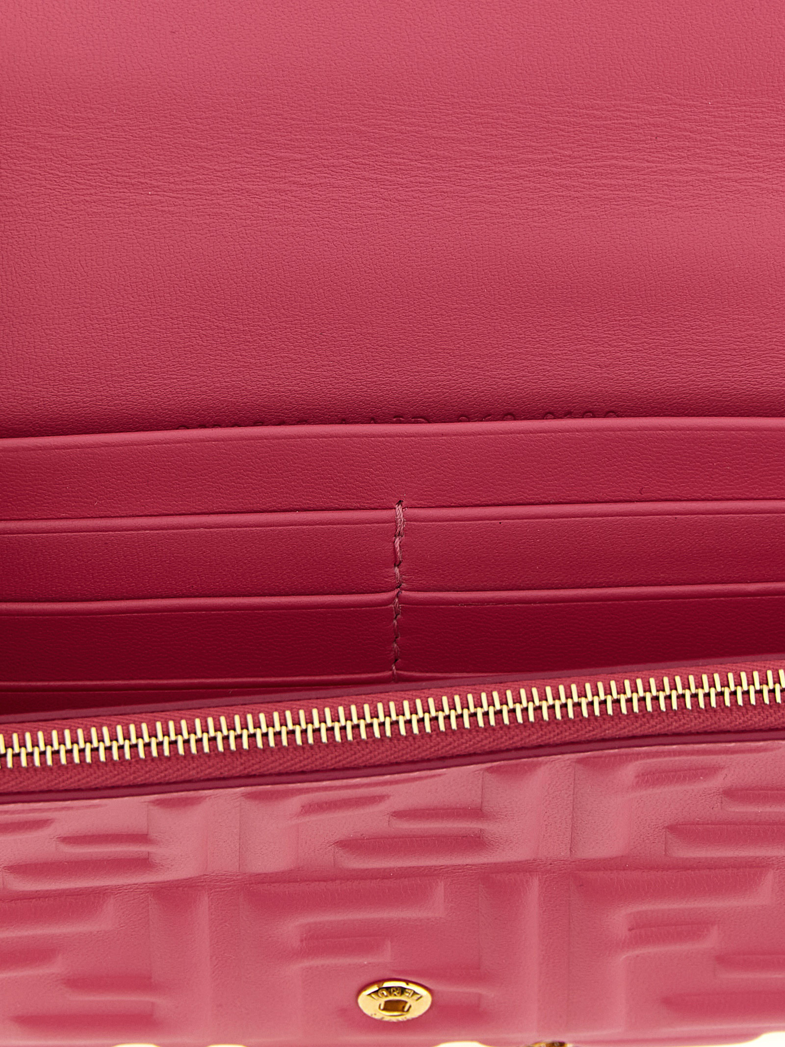 'Continental Baguette' nappa wallet on chain with iconic embossed FF pattern with a three-dimensional effect, fixed top handle, flap closure with snap button and metal 'Baguette' logo on the front, removable chain shoulder strap.