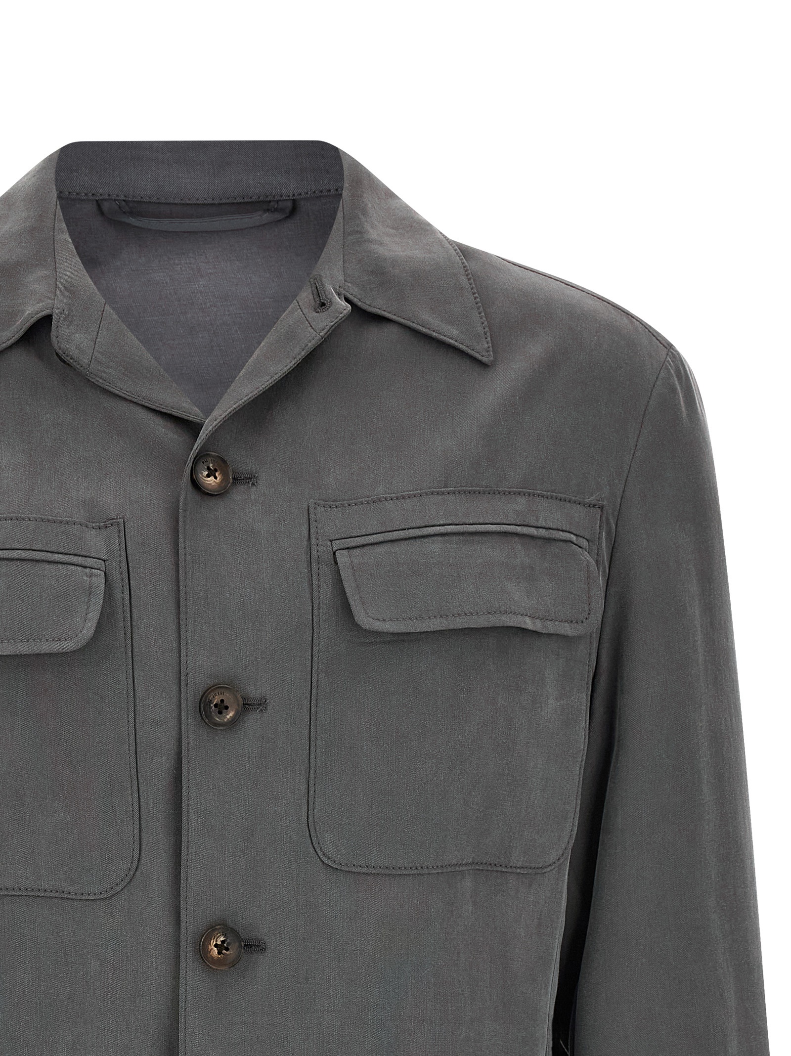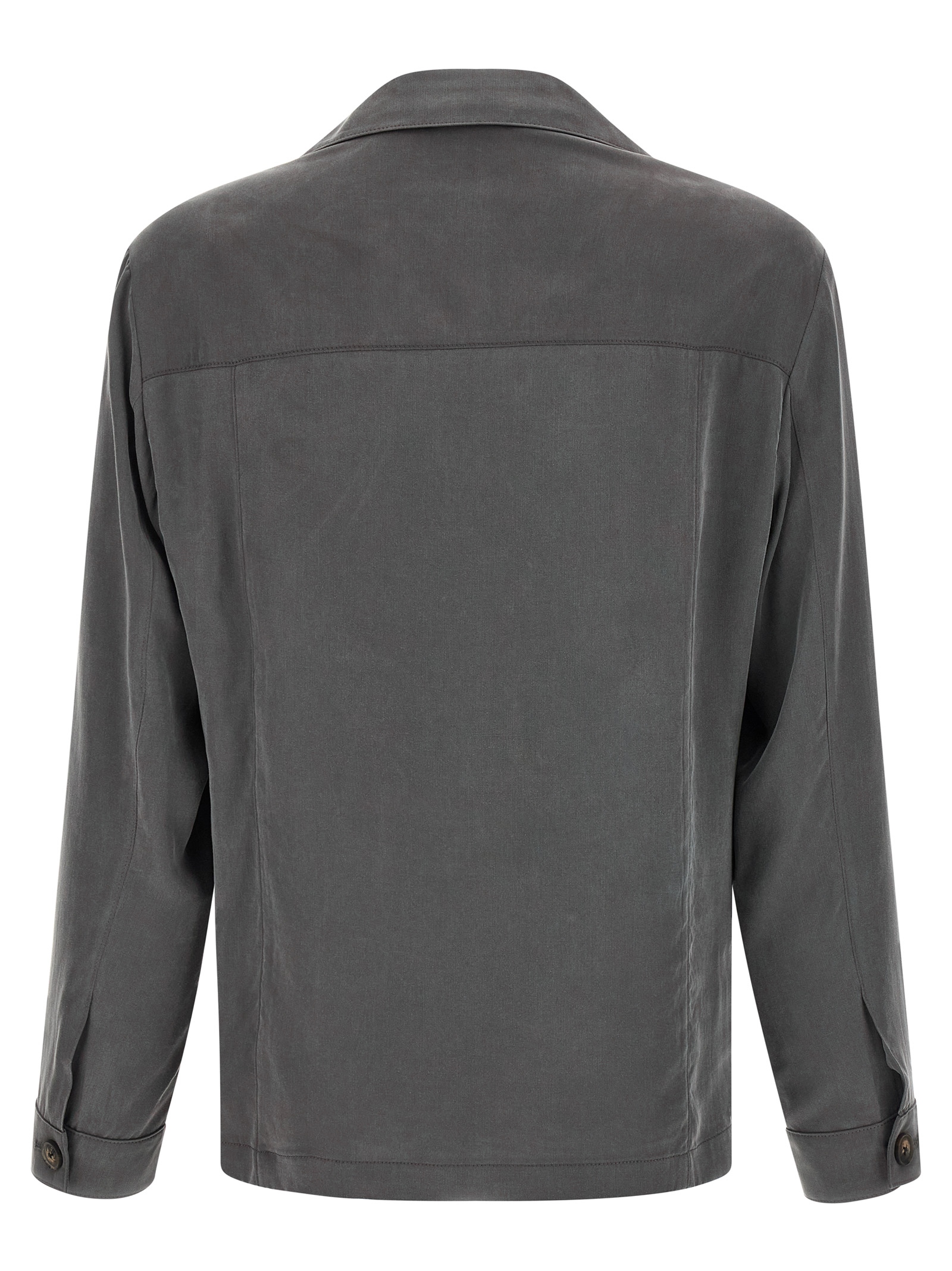 'Effortless' lyocell capsule overshirt with shirt collar, front horn button closure, pockets and side pockets, long cuffed sleeves, unlined. SUSTAINABLE: Product made with organic fabric.