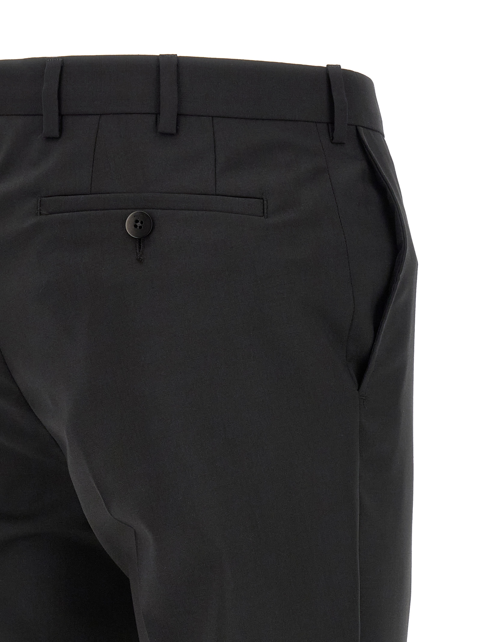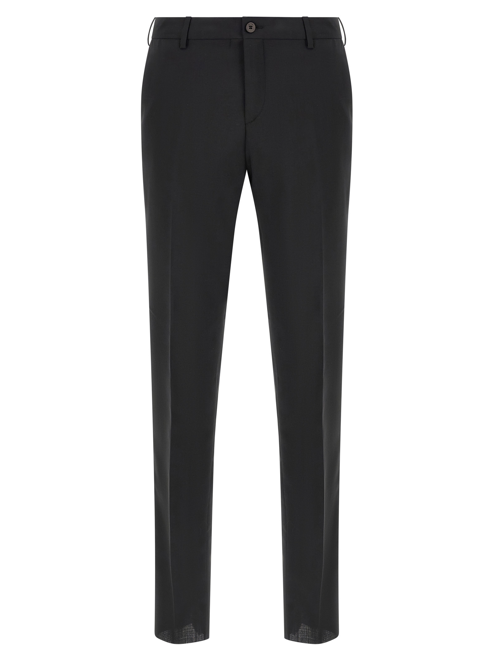 'Lord' wool dress consisting of single-breasted blazer with front button closure, mirror lapels with removable metal brooch, chest pocket, flap pockets, cupro lining, two inner pockets, structured shoulder strap, cuffs with opening buttonholes, back slits and trousers with stretched crease, front 'americane pockets', back welt pockets, front zip and button closure, viscose lining.