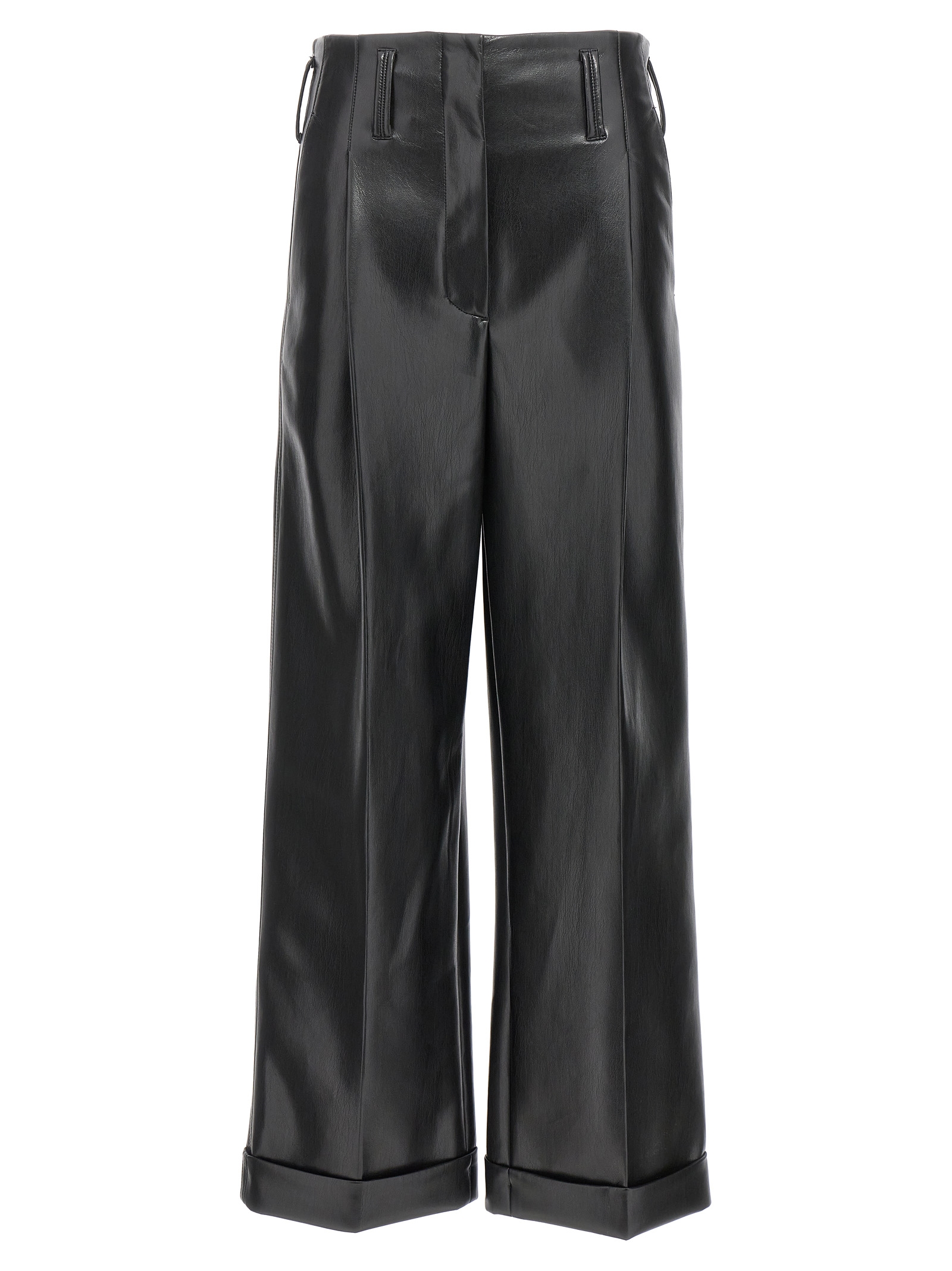 Faux leather trousers with straight leg with turn-up and central crease, high waist with zip and hook closure.Характеристики товара