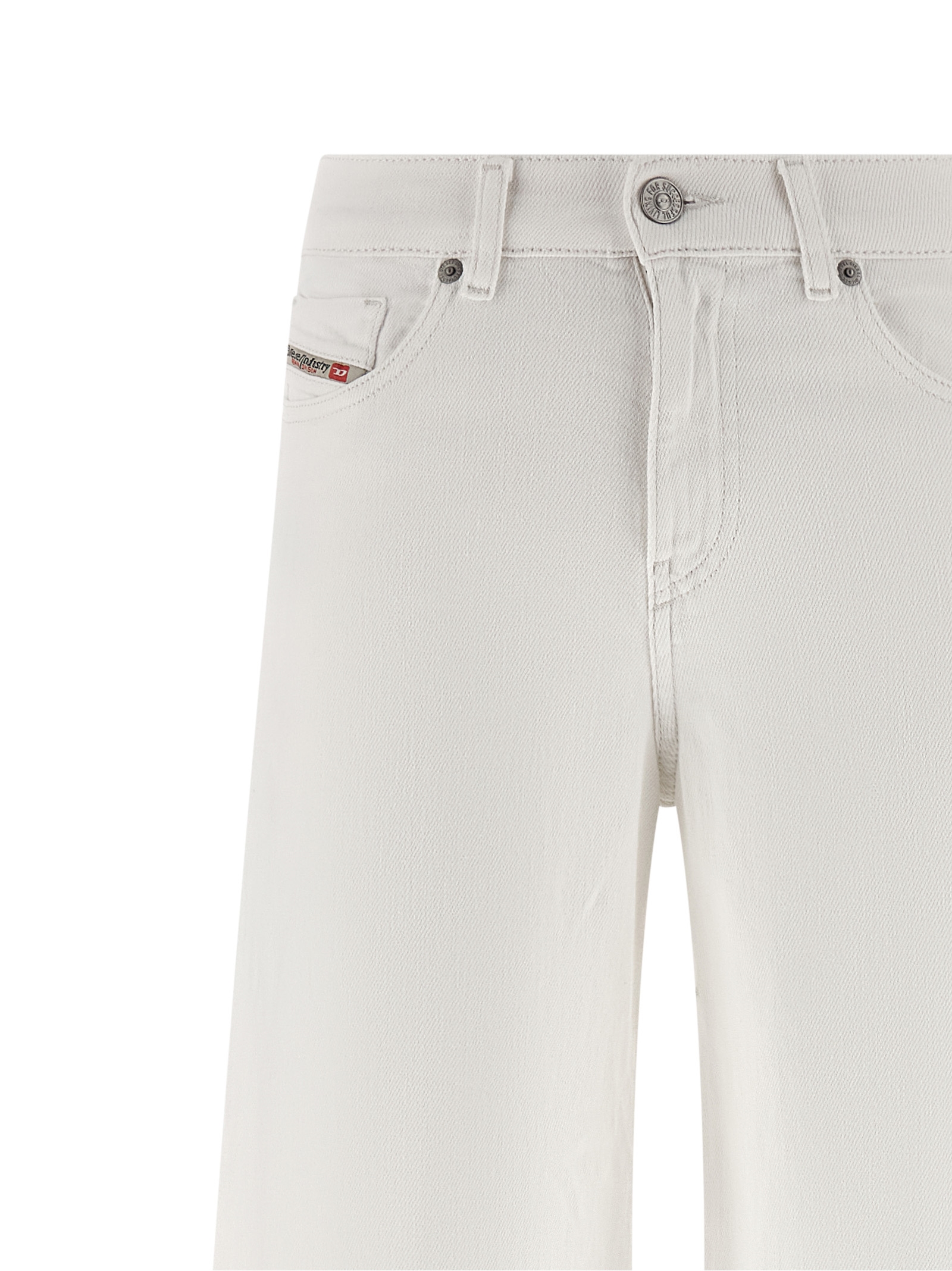 1978 D-Akemi' jeans in garment-dyed cotton denim with mid waist, flared wide leg, front zip and button closure, five pockets, logo tag and embroidered logo on the back.