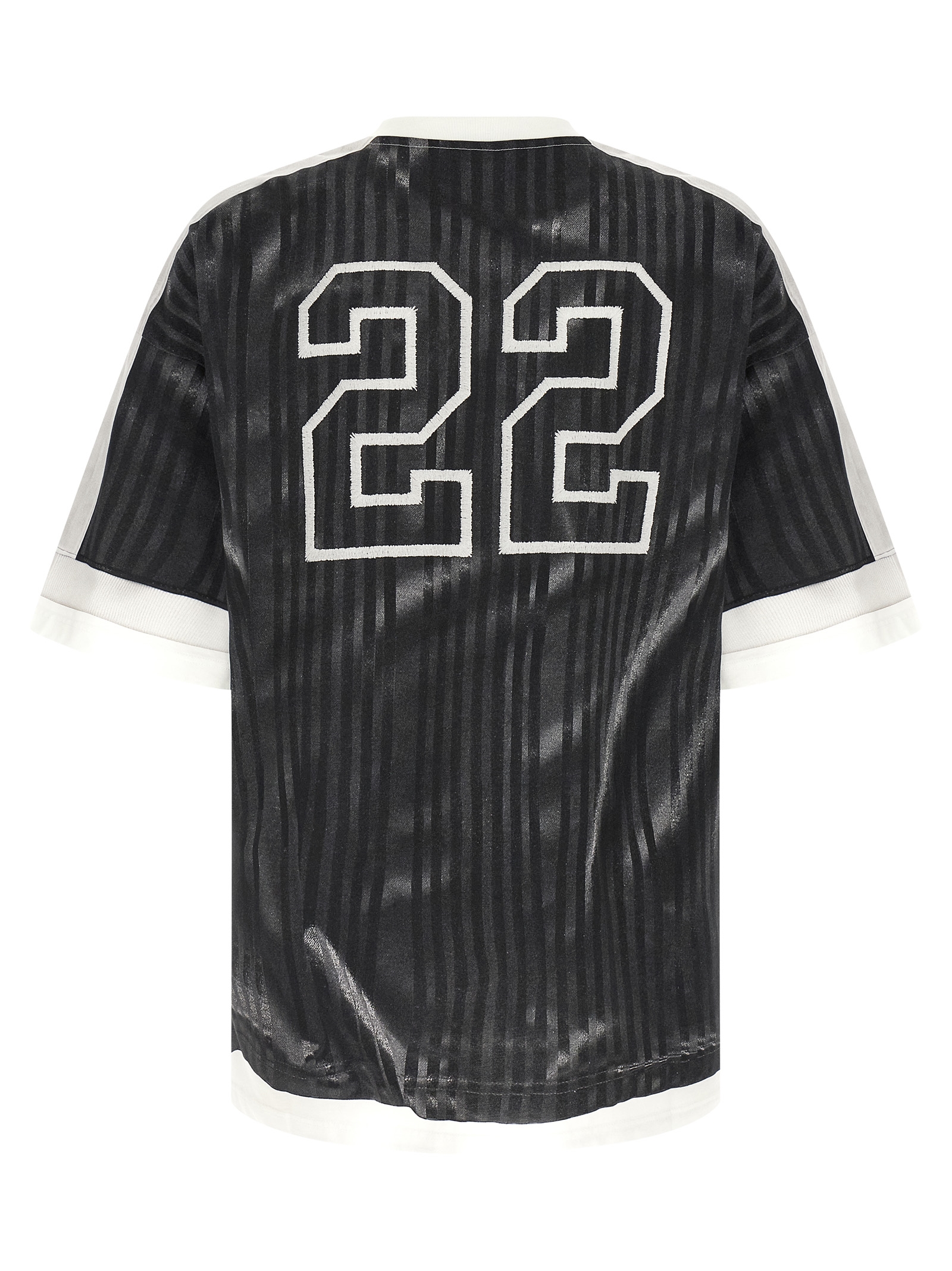 Cotton t-shirt, with all-over trompe-l'œil effect football t-shirt print, crew neck, short sleeves with dropped shoulders. SUSTAINABLE: This product is made of organic cotton.