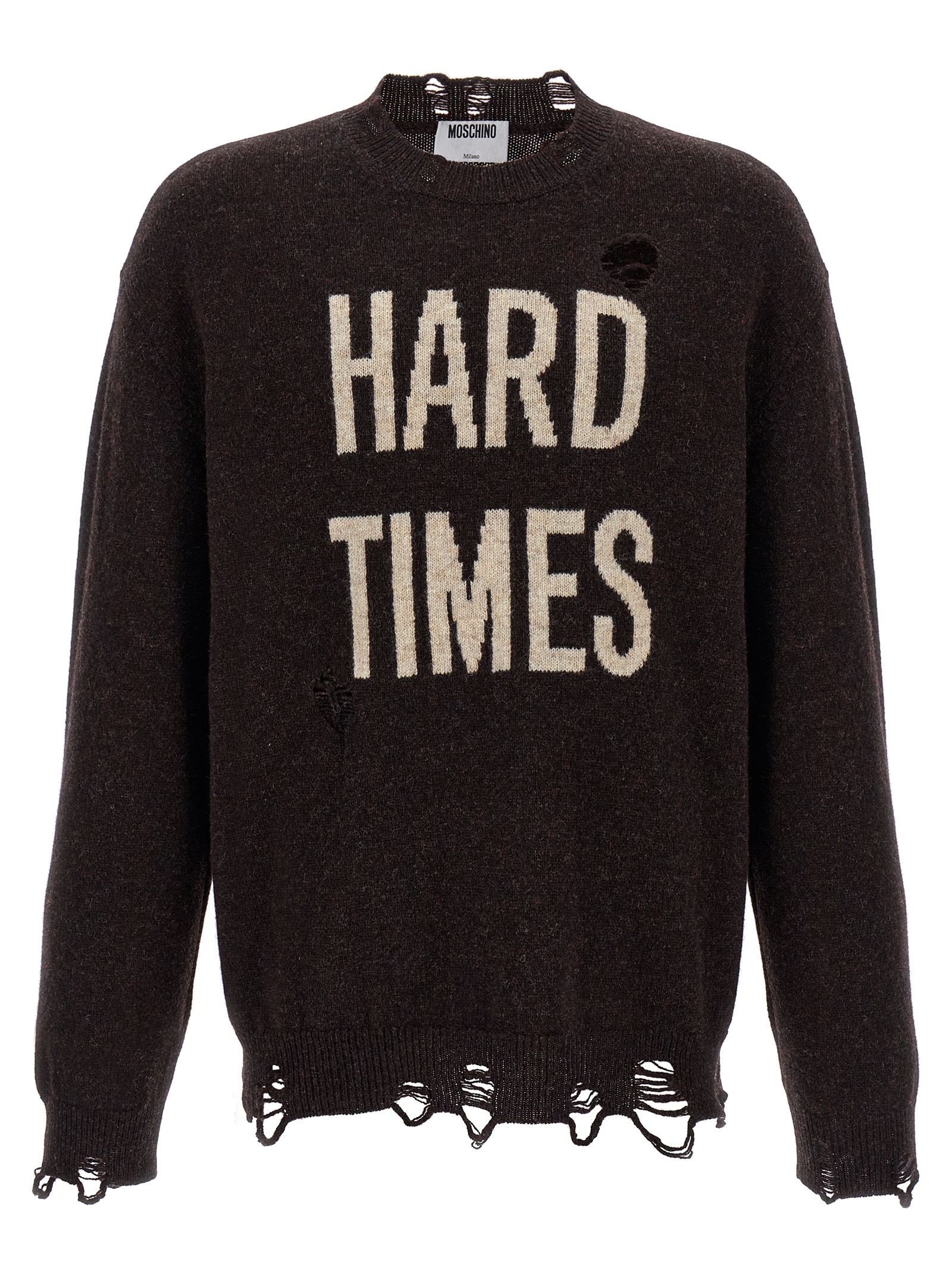 Shetland wool sweater with front 'Hard Times' intarsia and used-effect details, crew neck, long cuffed sleeves and dropped shoulders.Характеристики товара