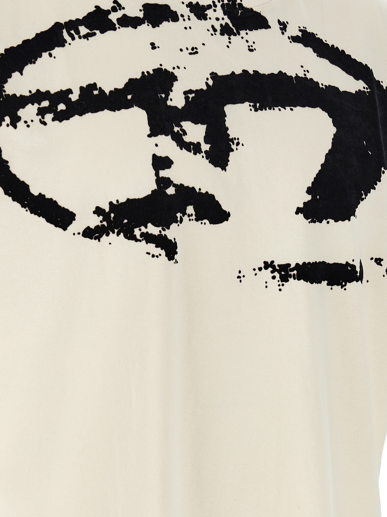 'T-Boxt-N14' cotton jersey t-shirt with a slightly rough used-effect texture, distressed 'Oval D' flocked print at the front, crew neck, short sleeves with dropped shoulders.